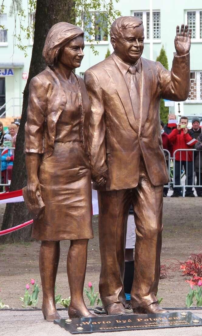 Ponad dwumetrowy odlany z brązu pomnik Lecha i Marii Kaczyńskich stanął w zrewitalizowanym skwerze przy placu Wojska Polskiego. Wizerunek spacerującej i uśmiechniętej pary prezydenckiej wykonał Stanisław Milewski, artysta rzeźbiarz z Gdańska. Pomnik został odsłonięty w maju 2017 roku przez prezesa PiS Jarosława Kaczyńskiego.
