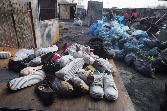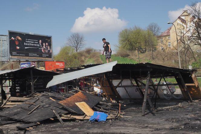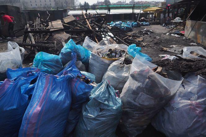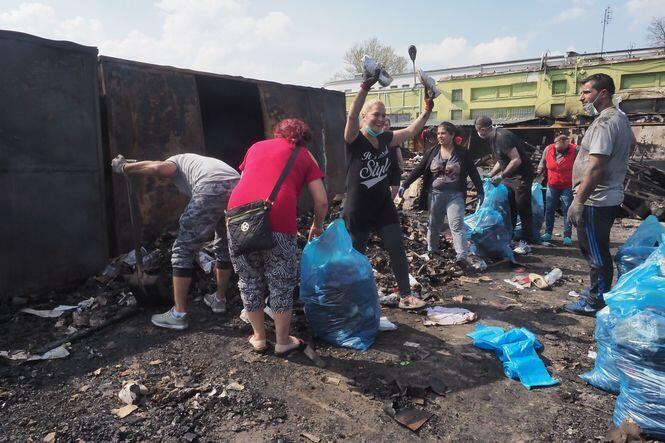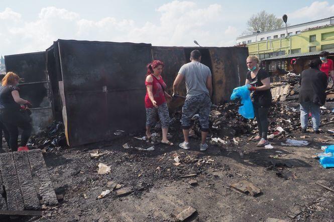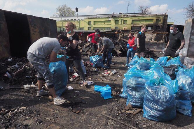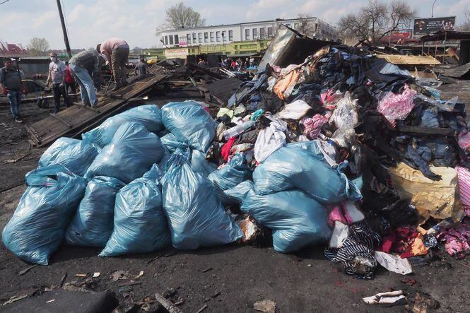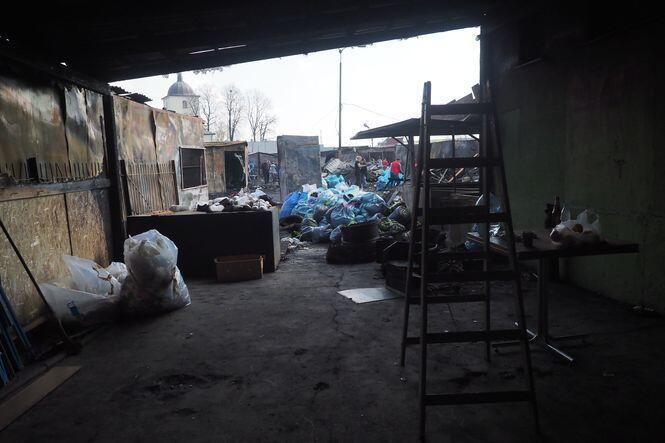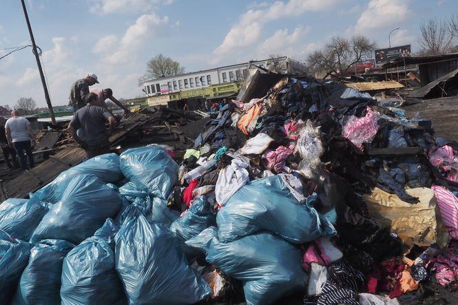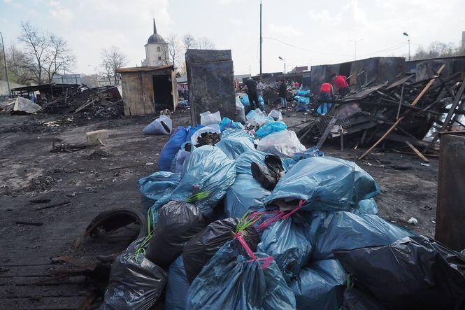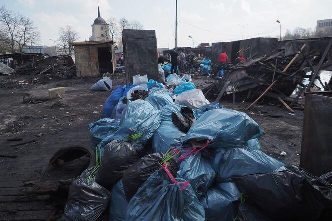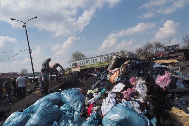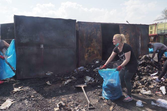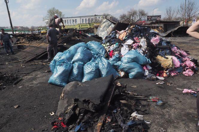Sprzątanie po pożarze na targu przy ul. Ruskiej