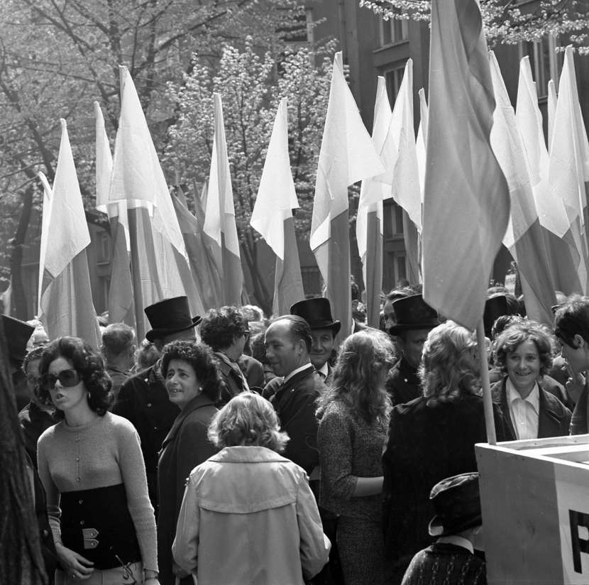 1 Maja na ogół przebiegał spokojnie, mimo tłumów rzadko dochodziło do incydentów czy awantur. Nad bezpieczeństwem czuwali nie tylko milicjanci, funkcjonariusze bezpieki, strażacy i ormowcy, ale również partyjni aktywiści. Wieczorem w telewizji pokazywano obrazki z pochodów z głównych miast Polski. Podkreślano rekordową frekwencję, podniosłą atmosferę uroczystości oraz przeprowadzano wywiady z przodownikami pracy, który podejmowali czasami karkołomne zobowiązania przekroczenia jakiejś normy o 500 proc.