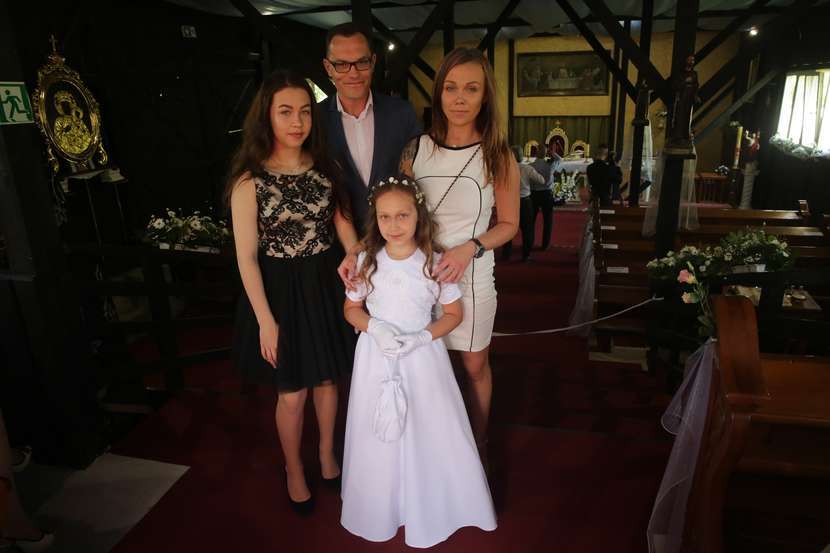 Magdalena i Rafał Kasperkowie z córkami – Gabrysią i Mają, która miała komunię w parafii w Dysie