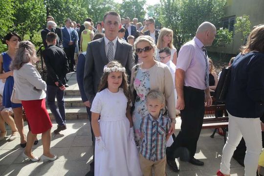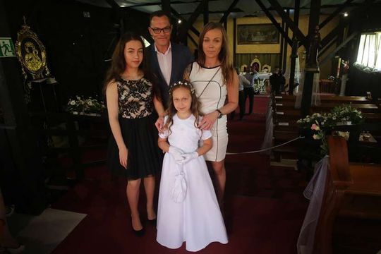 Dorota i Wojciech Sowińscy z córkami. Ich młodsza córka Maja przystąpiła w czwartek do Pierwszej Komunii Świętej