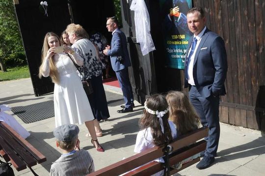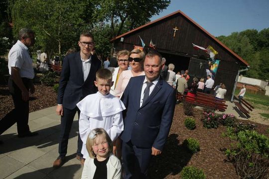 Agnieszka i Tomasz Błaszczykowie z dziećmi i rodziną. Do I Komunii Świętej przystępował syn Państwa Błaszczyków – Krzysztof