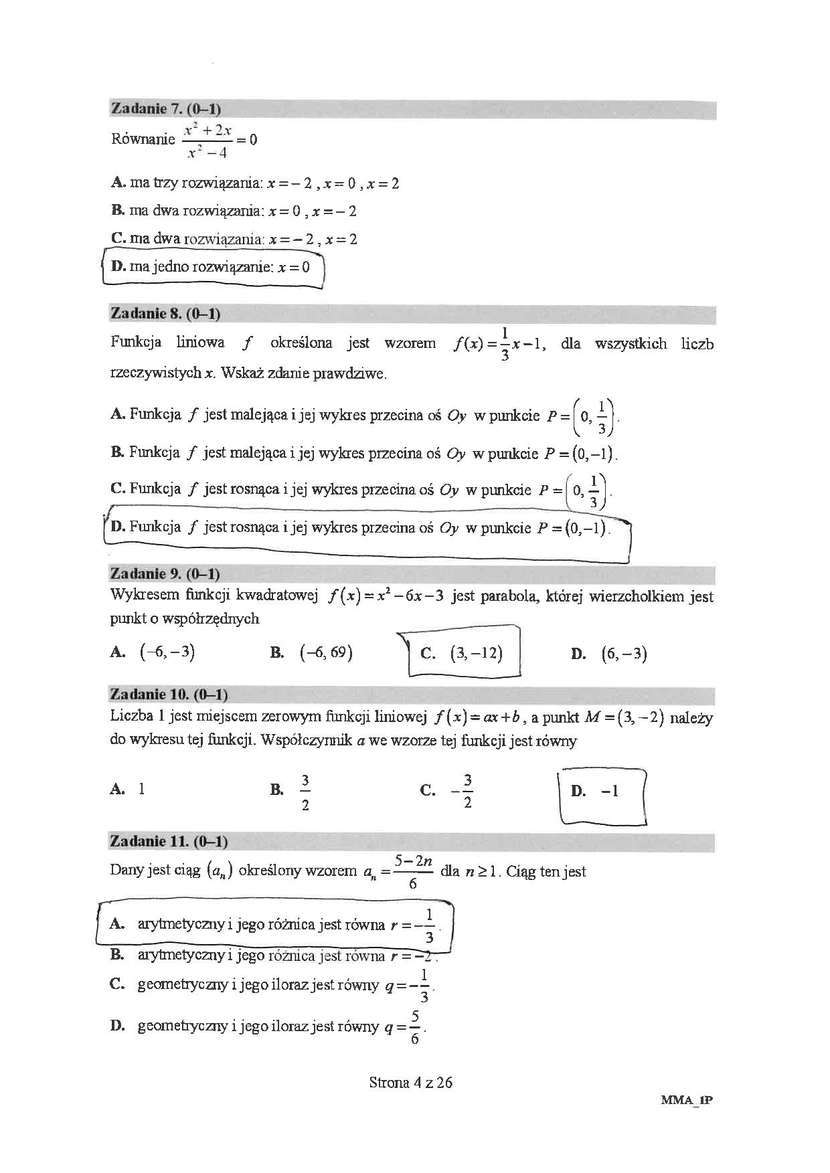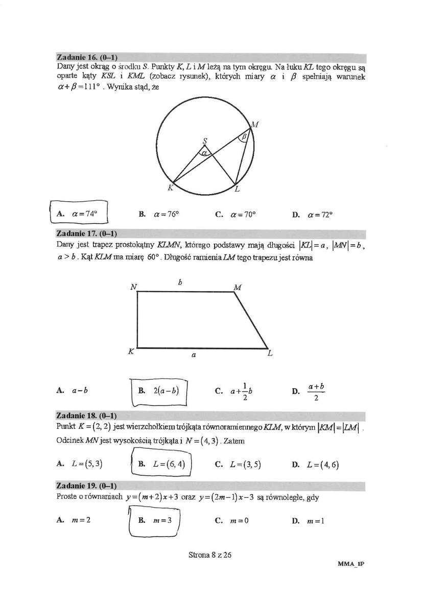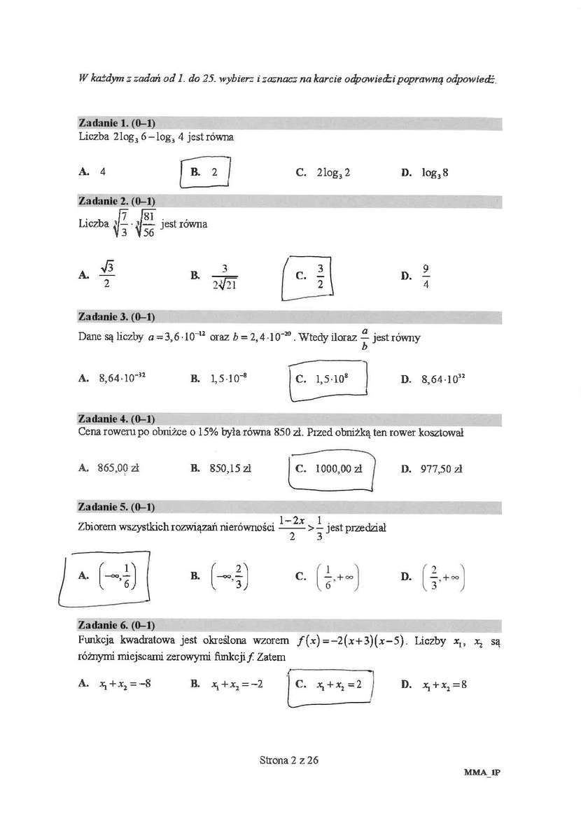 Matura 2018 matematyka. Sugerowane rozwiązania zadań zamkniętych