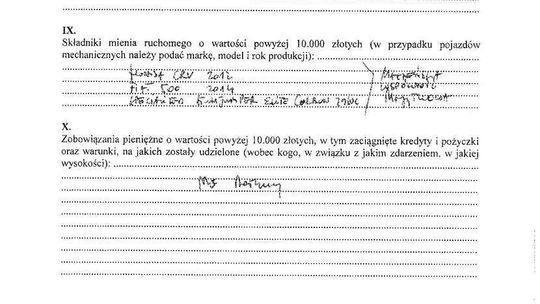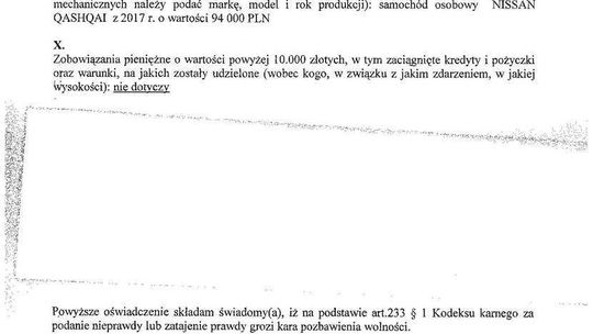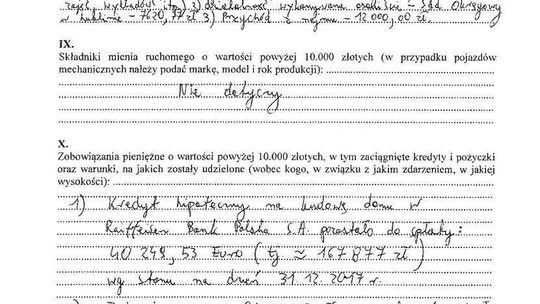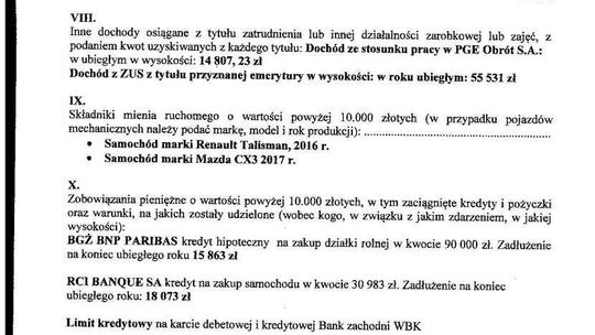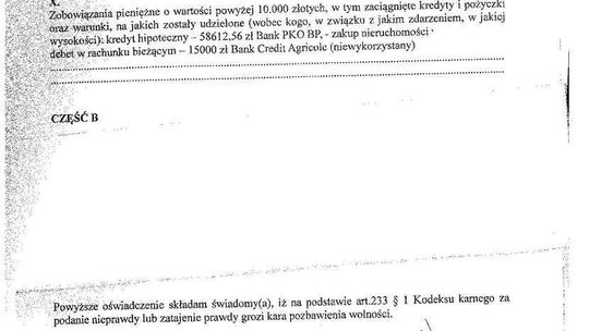 Zobowiązania: kredyt gotówkowy na działkę letniskową (pozostało 39 tys. zł), kredyt samochodowy na mitsubishi (zostało 34 tys. zł)