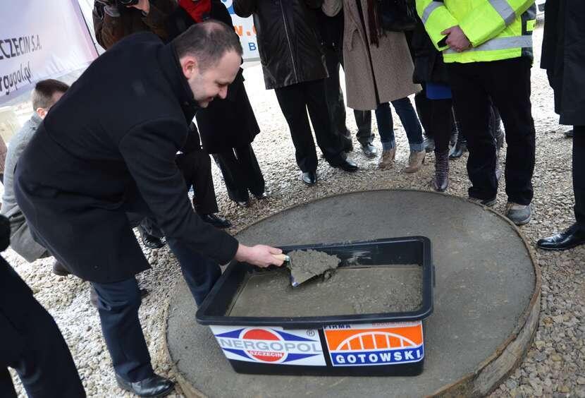 Wmurowanie kamienia węgielnego - Krzysztof Hetman, ówczesny marszałek województwa lubelskiego, wmurowuje kamień węgielny