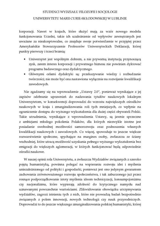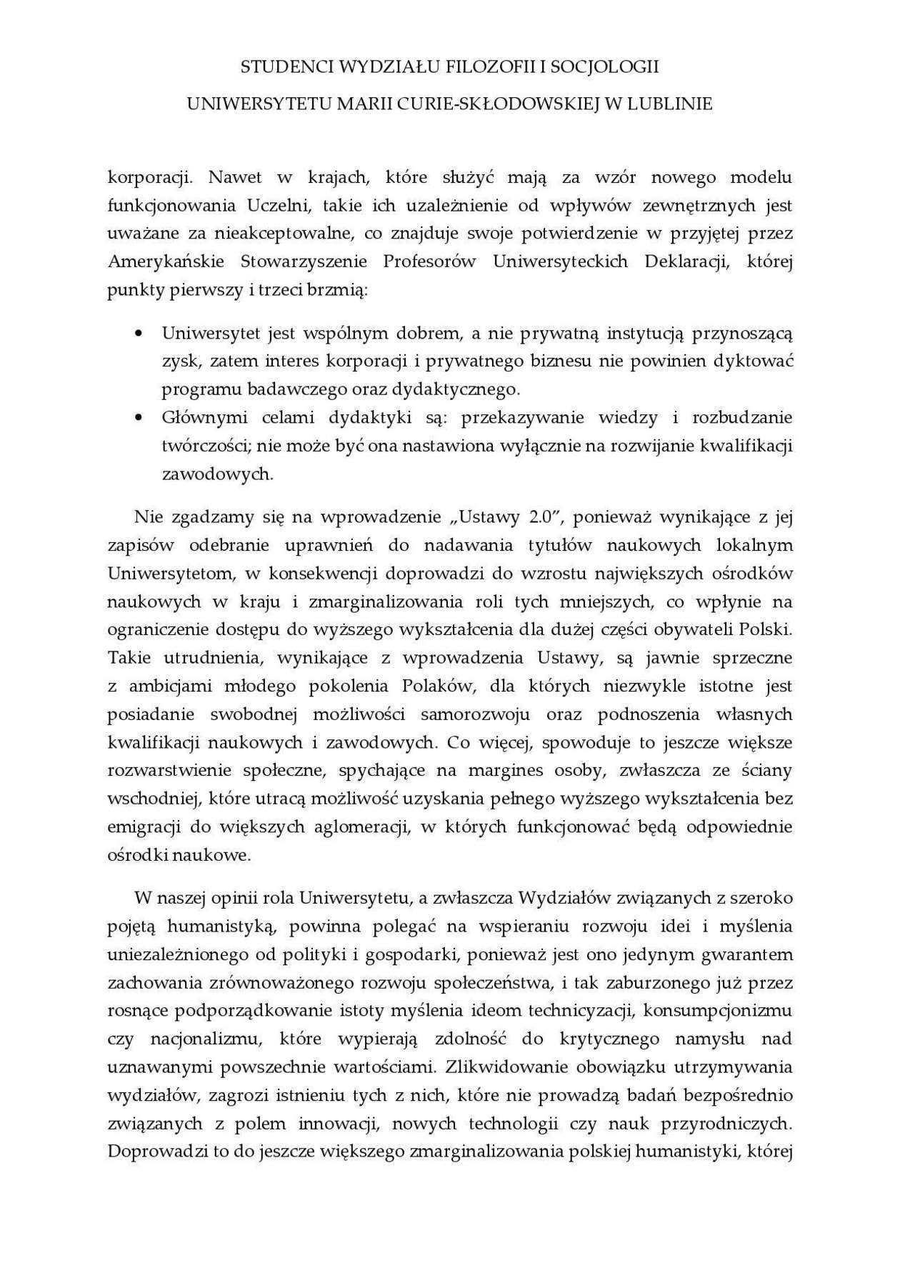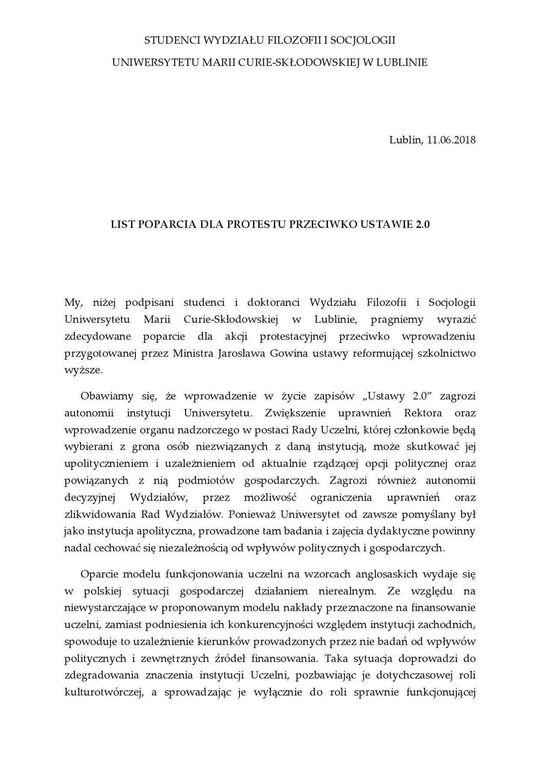Protest w Lublinie zainicjowali studenci Wydziału Filozofii i Socjologii UMCS