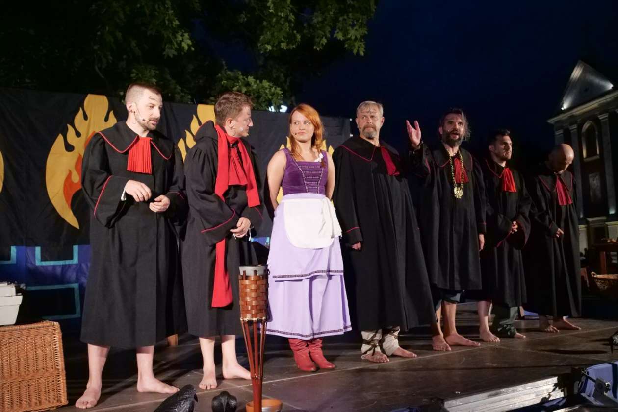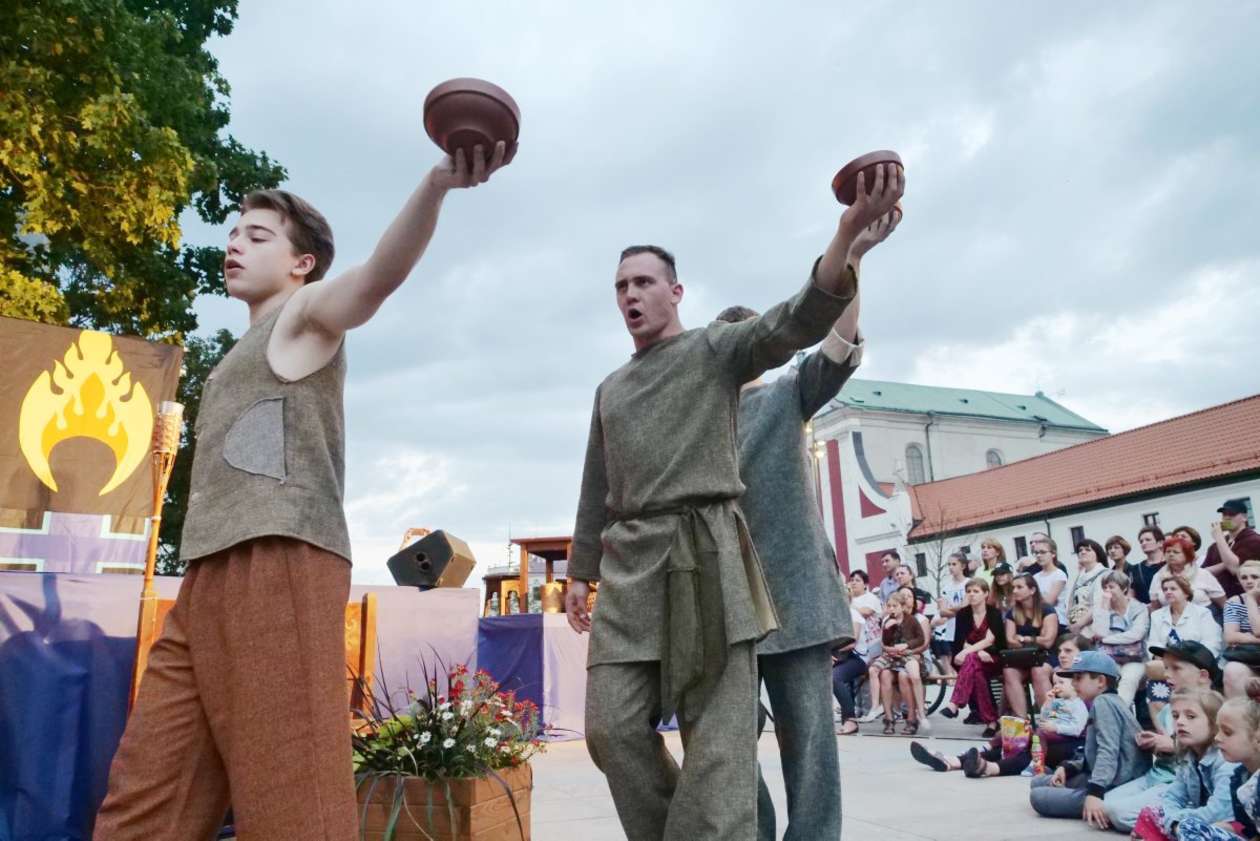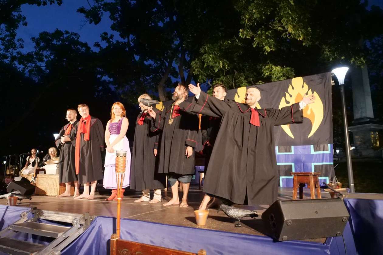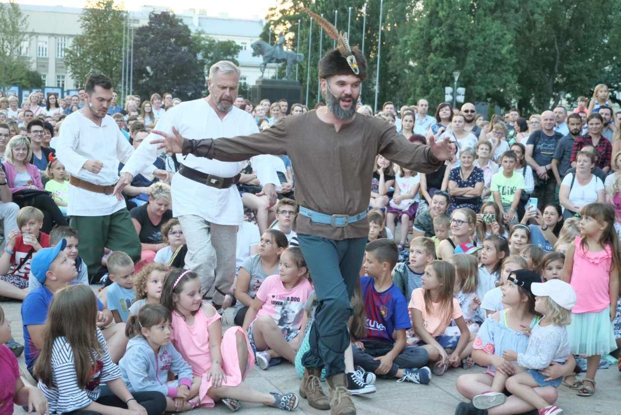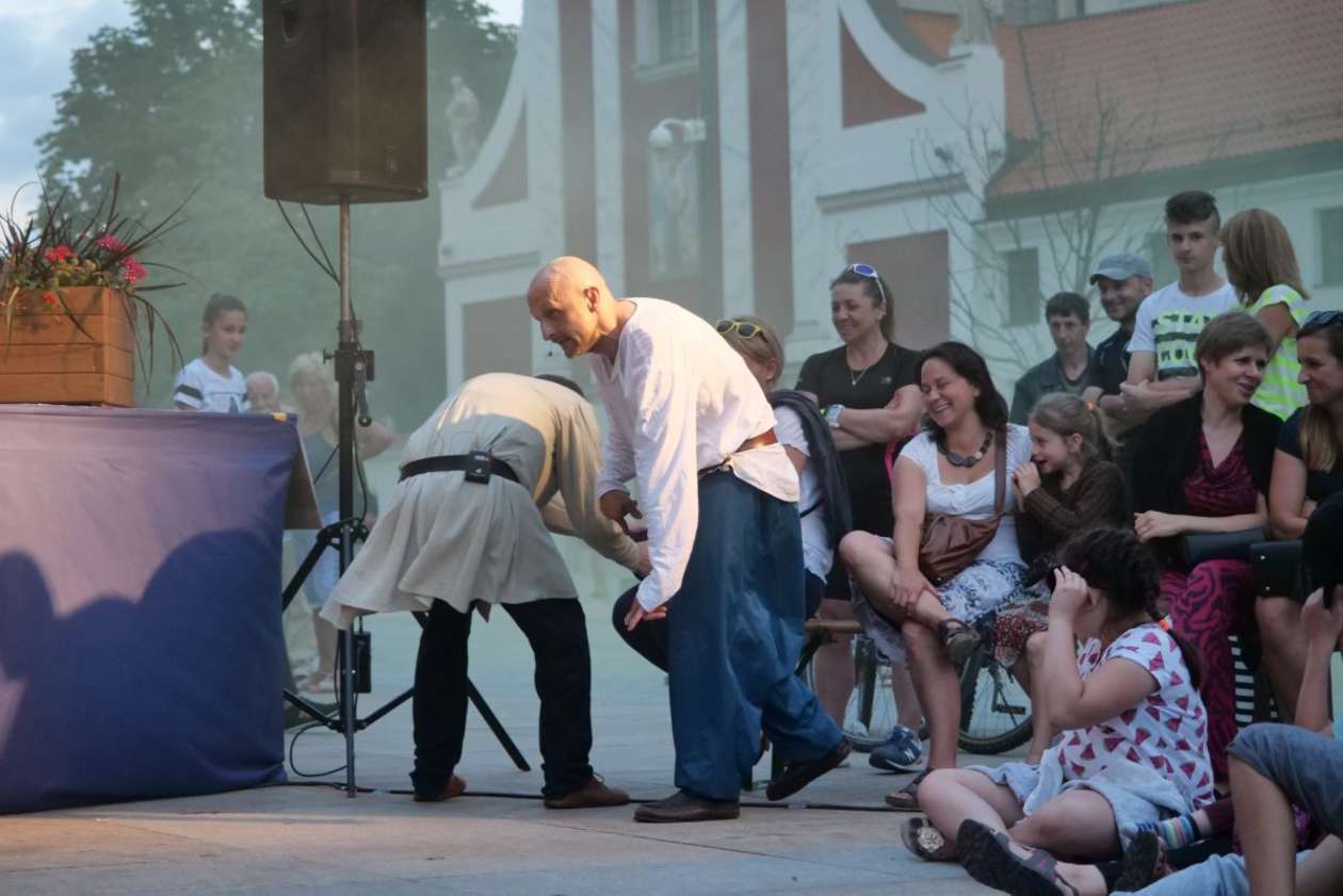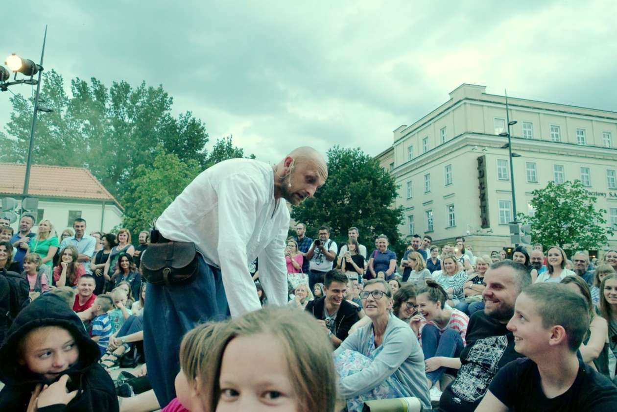 W ramach Lata na placu Litewskim przy pomniku Unii Lubelskiej zaprezentowany został spektakl pt "Legenda o Czarciej Łapie" w wykonaniu grupy Poławiacze Pereł. Fot. Maciej Kaczanowski