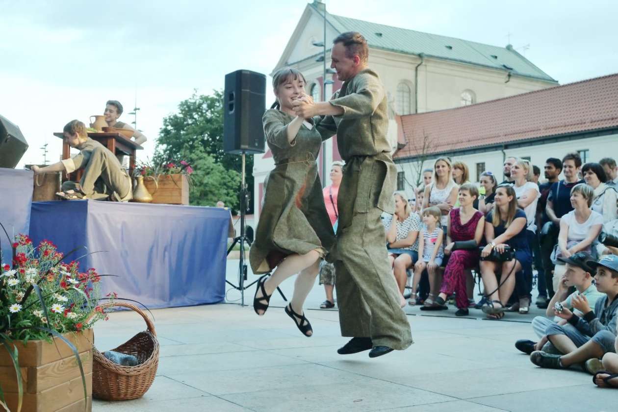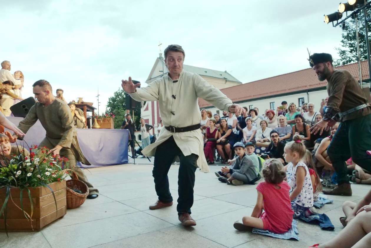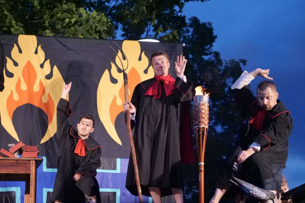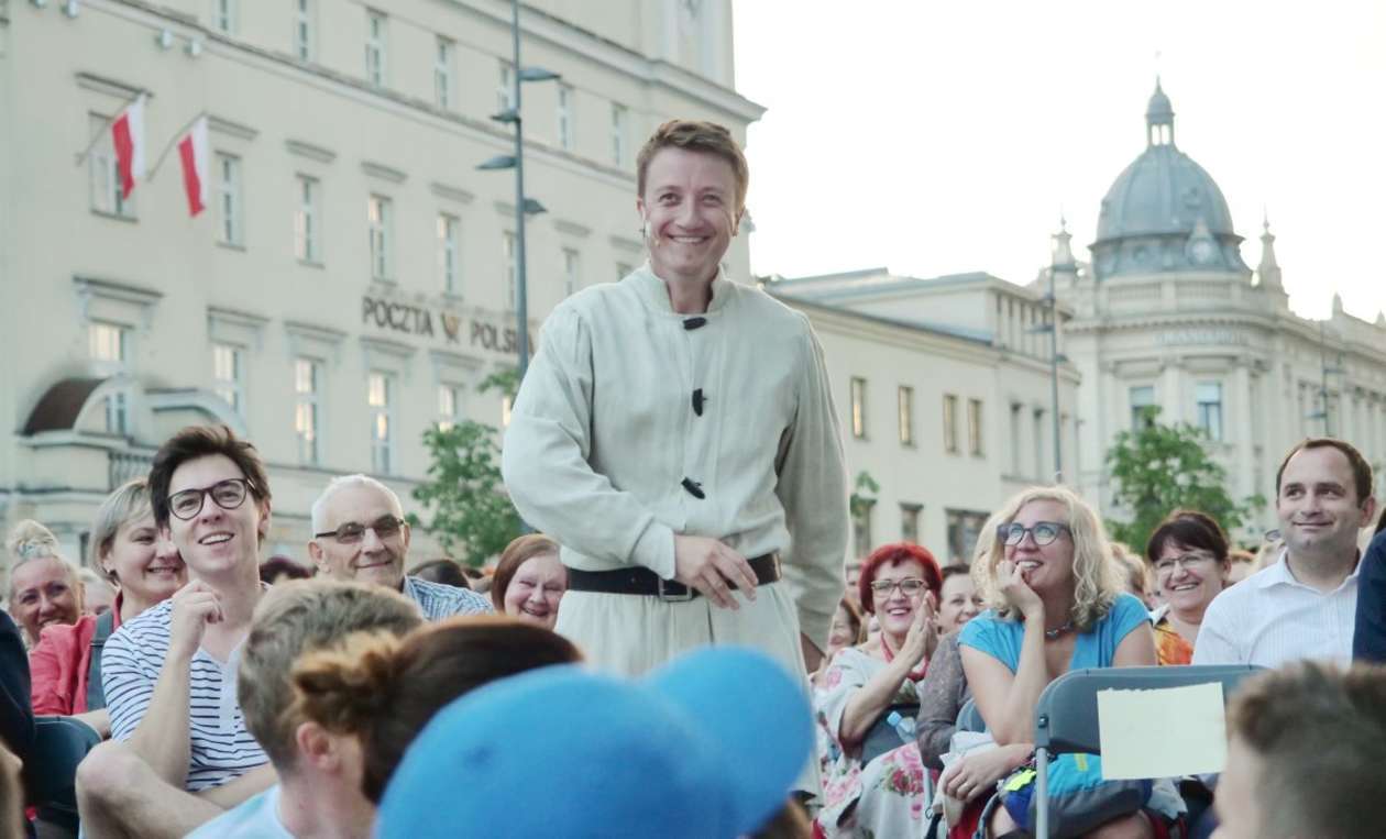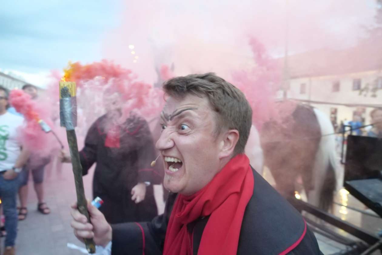 W ramach Lata na placu Litewskim przy pomniku Unii Lubelskiej zaprezentowany został spektakl pt "Legenda o Czarciej Łapie" w wykonaniu grupy Poławiacze Pereł. Fot. Maciej Kaczanowski