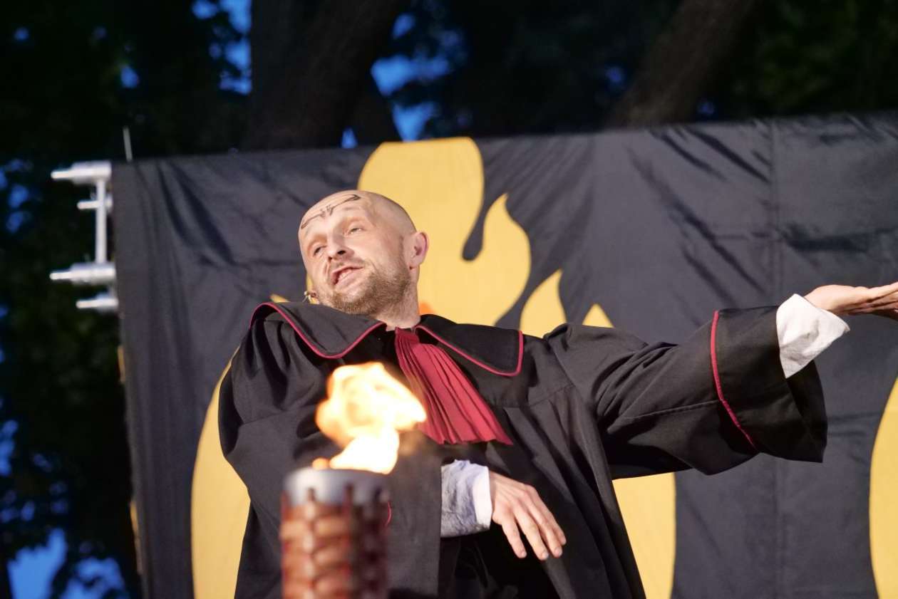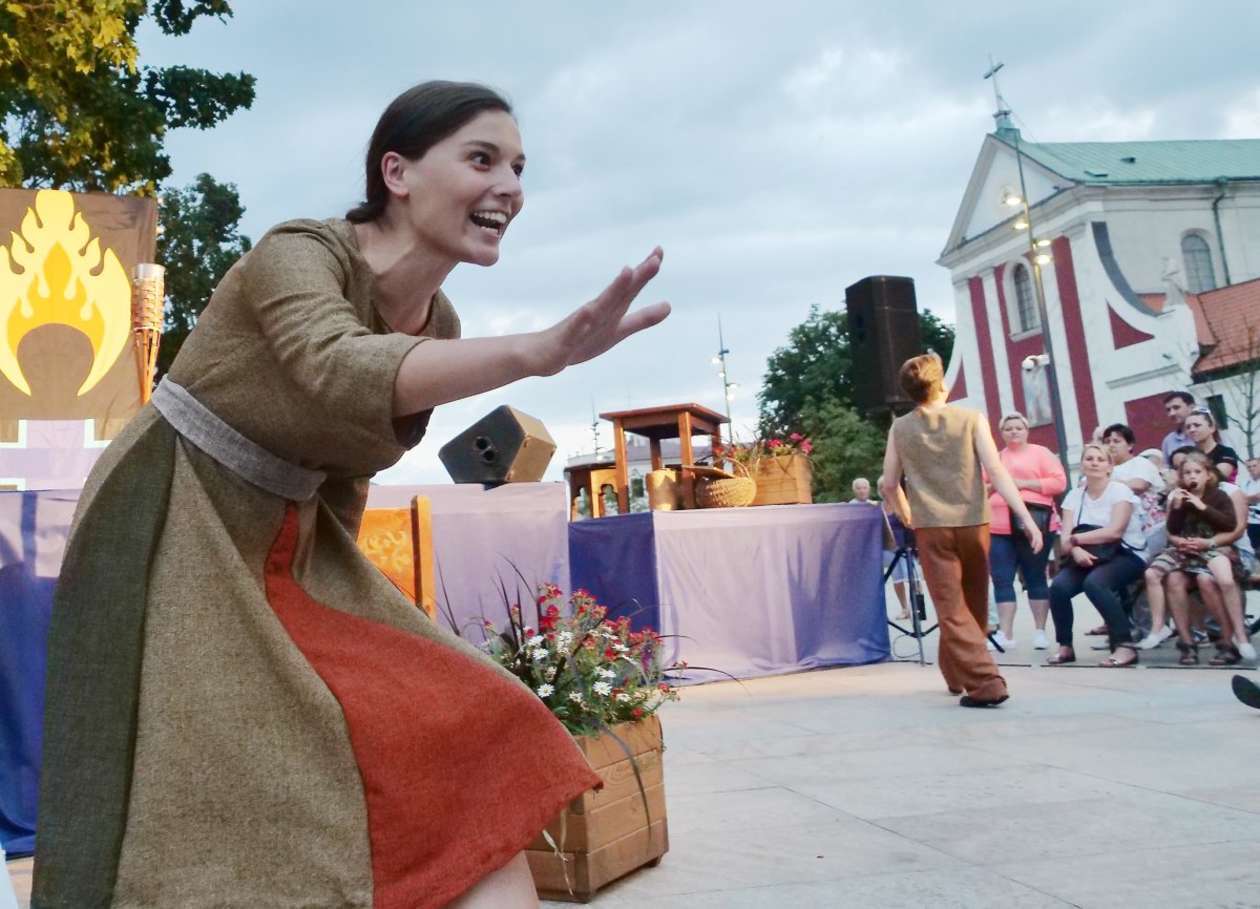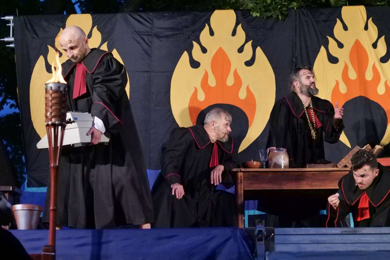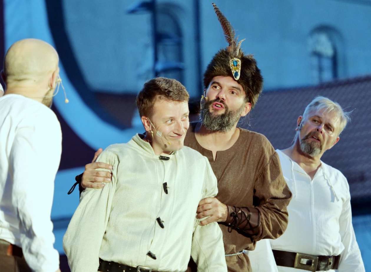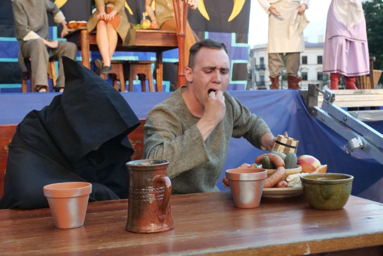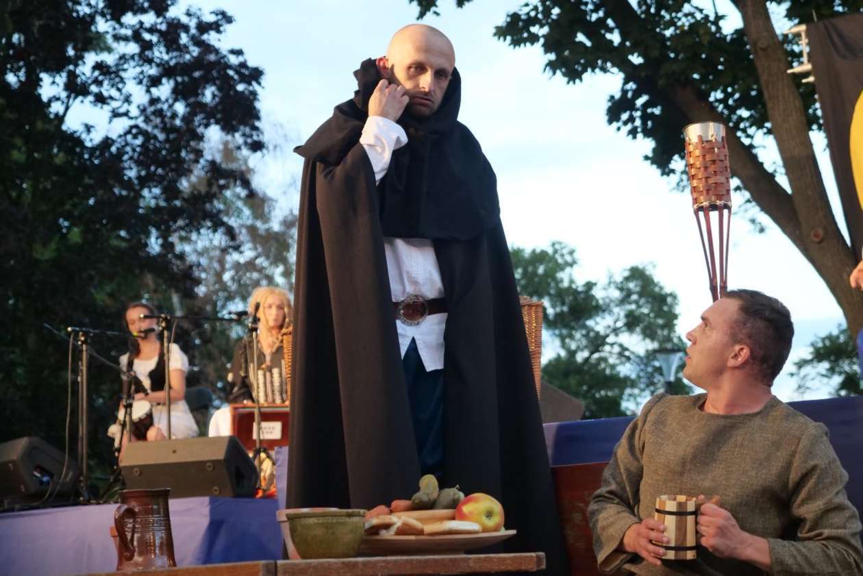 W ramach Lata na placu Litewskim przy pomniku Unii Lubelskiej zaprezentowany został spektakl pt "Legenda o Czarciej Łapie" w wykonaniu grupy Poławiacze Pereł. Fot. Maciej Kaczanowski