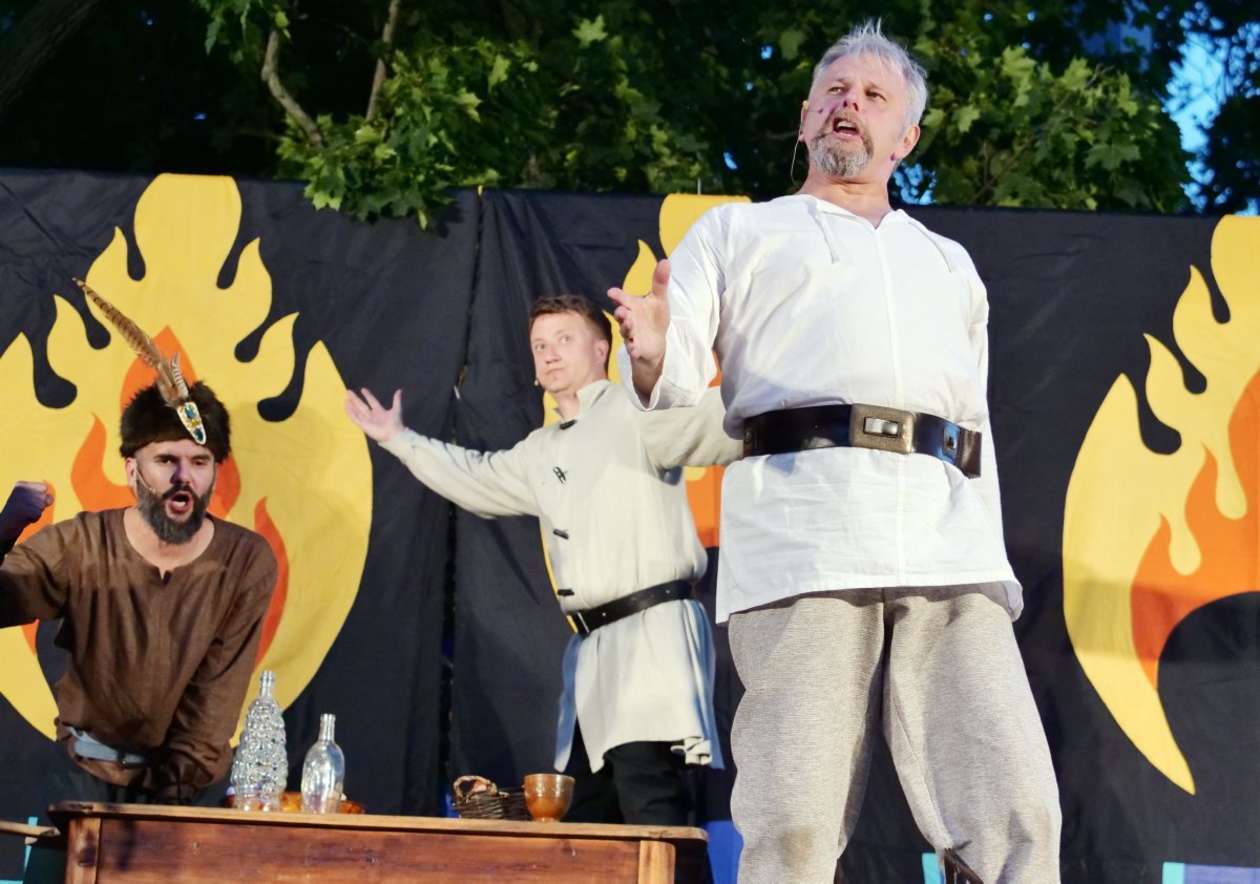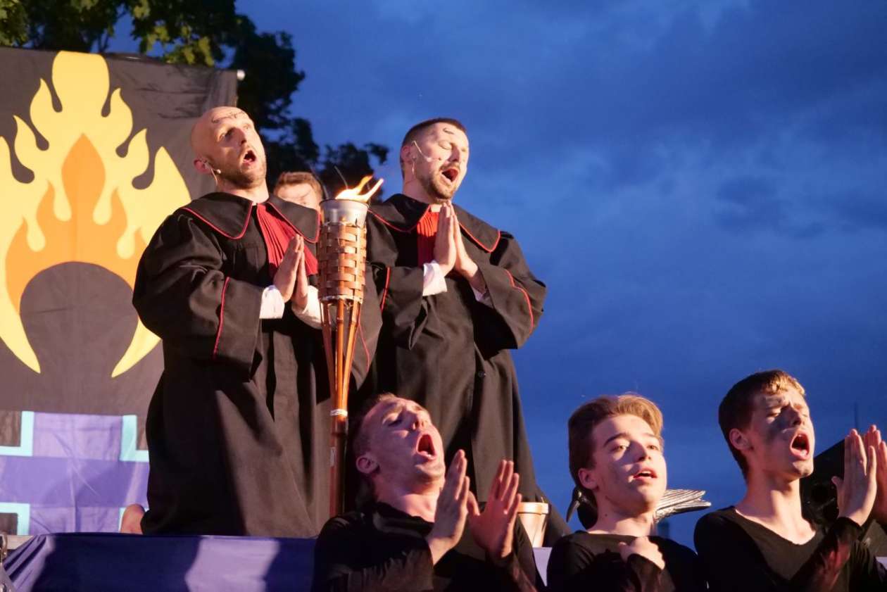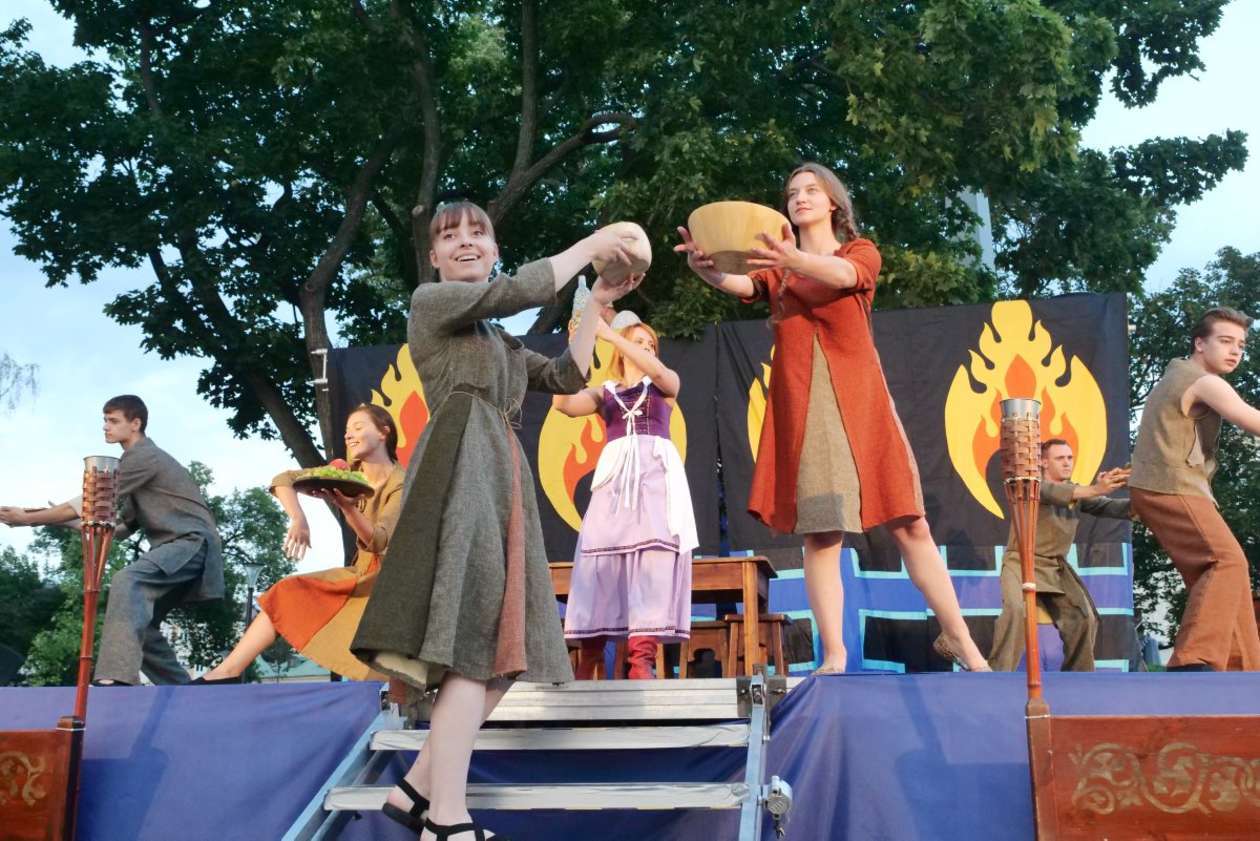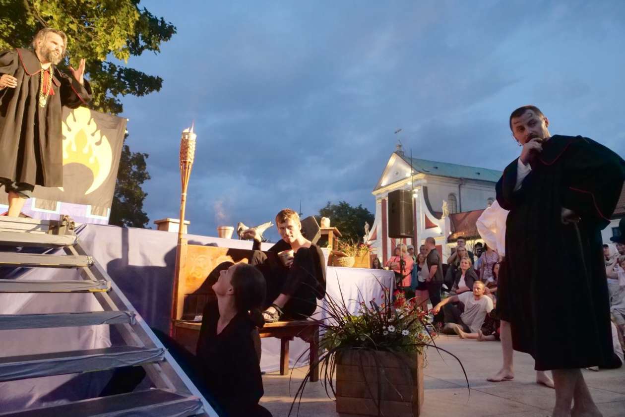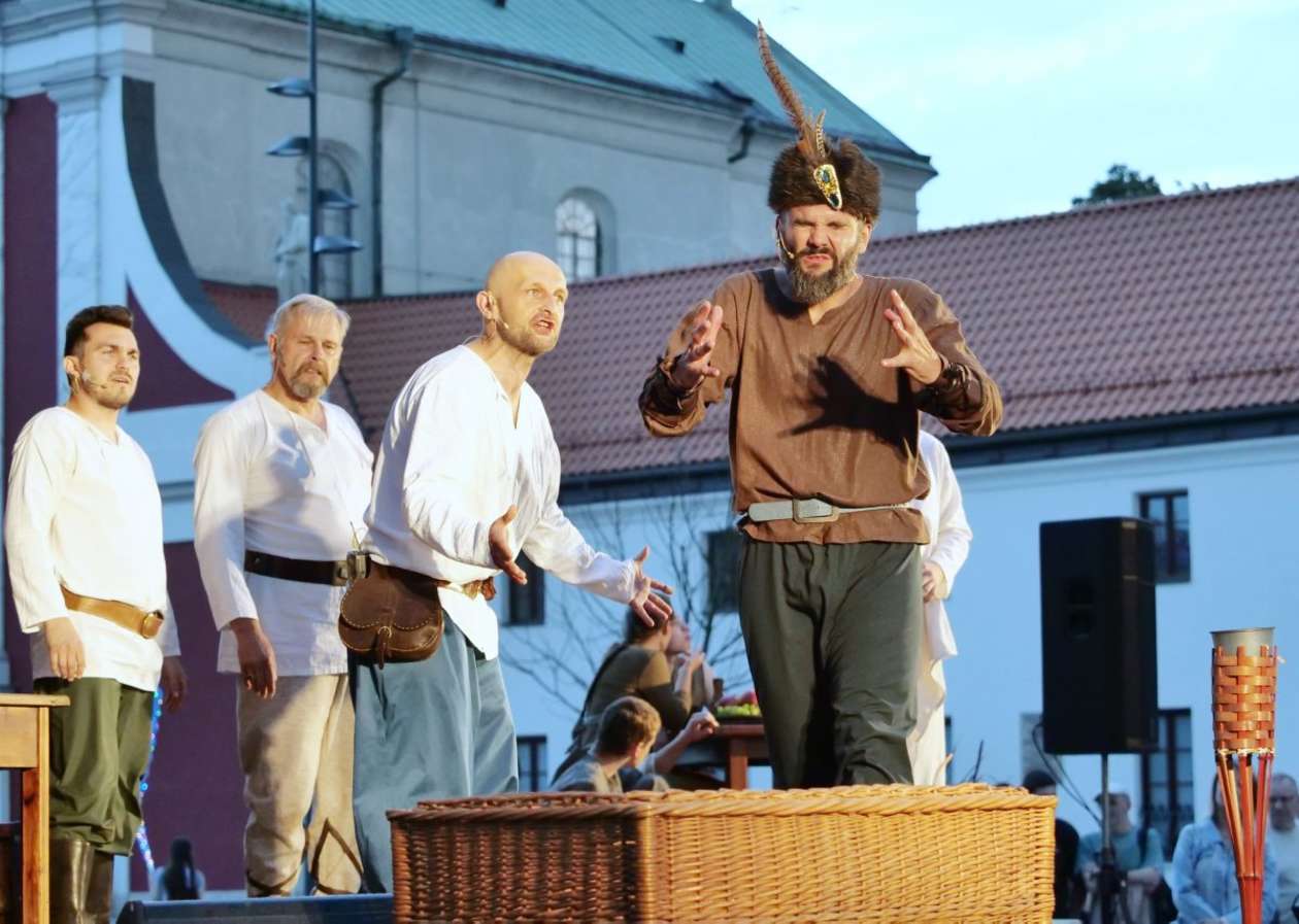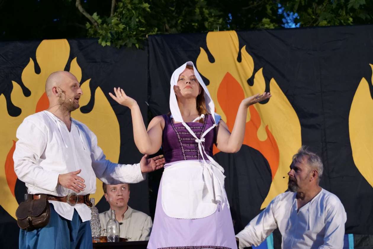 W ramach Lata na placu Litewskim przy pomniku Unii Lubelskiej zaprezentowany został spektakl pt "Legenda o Czarciej Łapie" w wykonaniu grupy Poławiacze Pereł. Fot. Maciej Kaczanowski