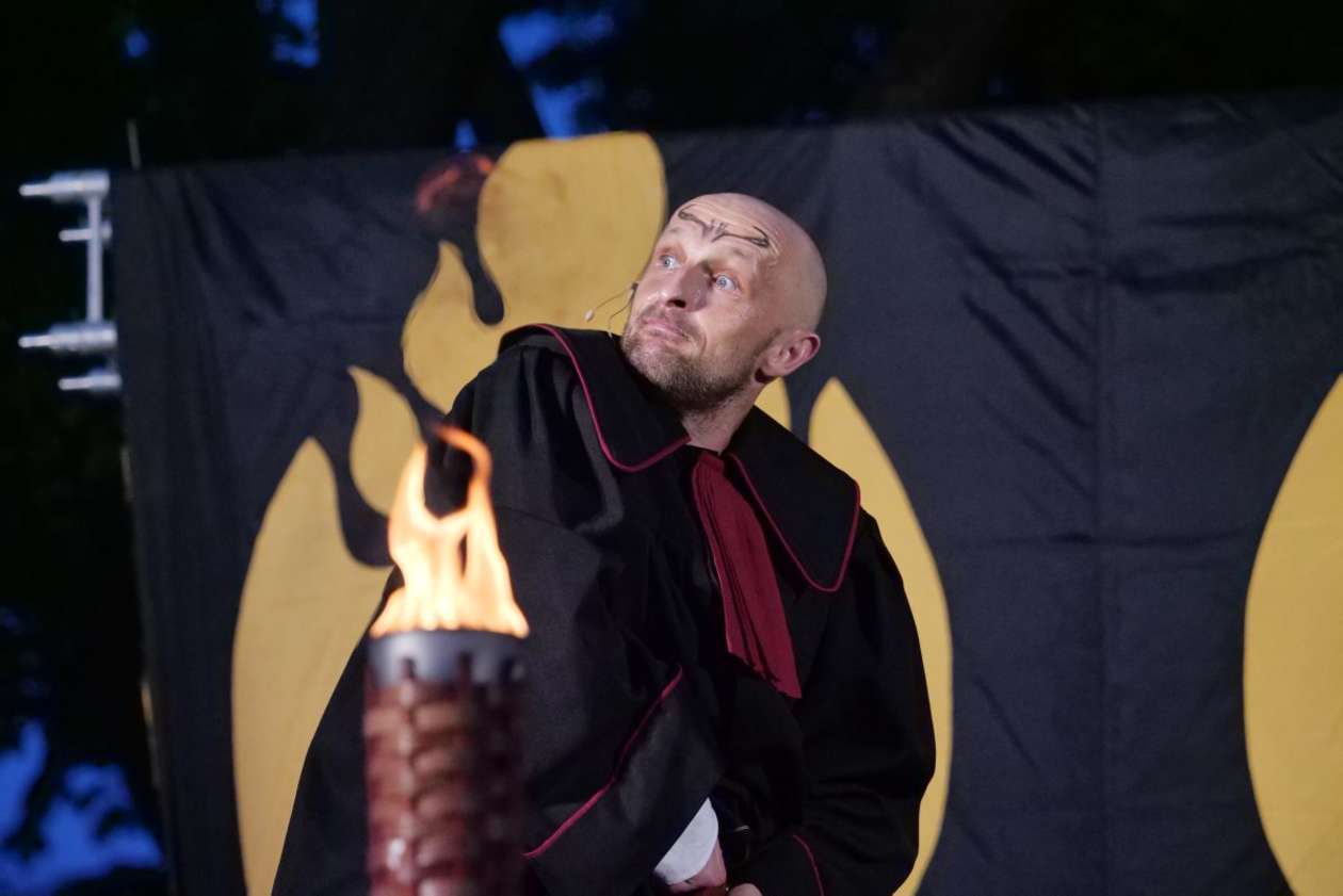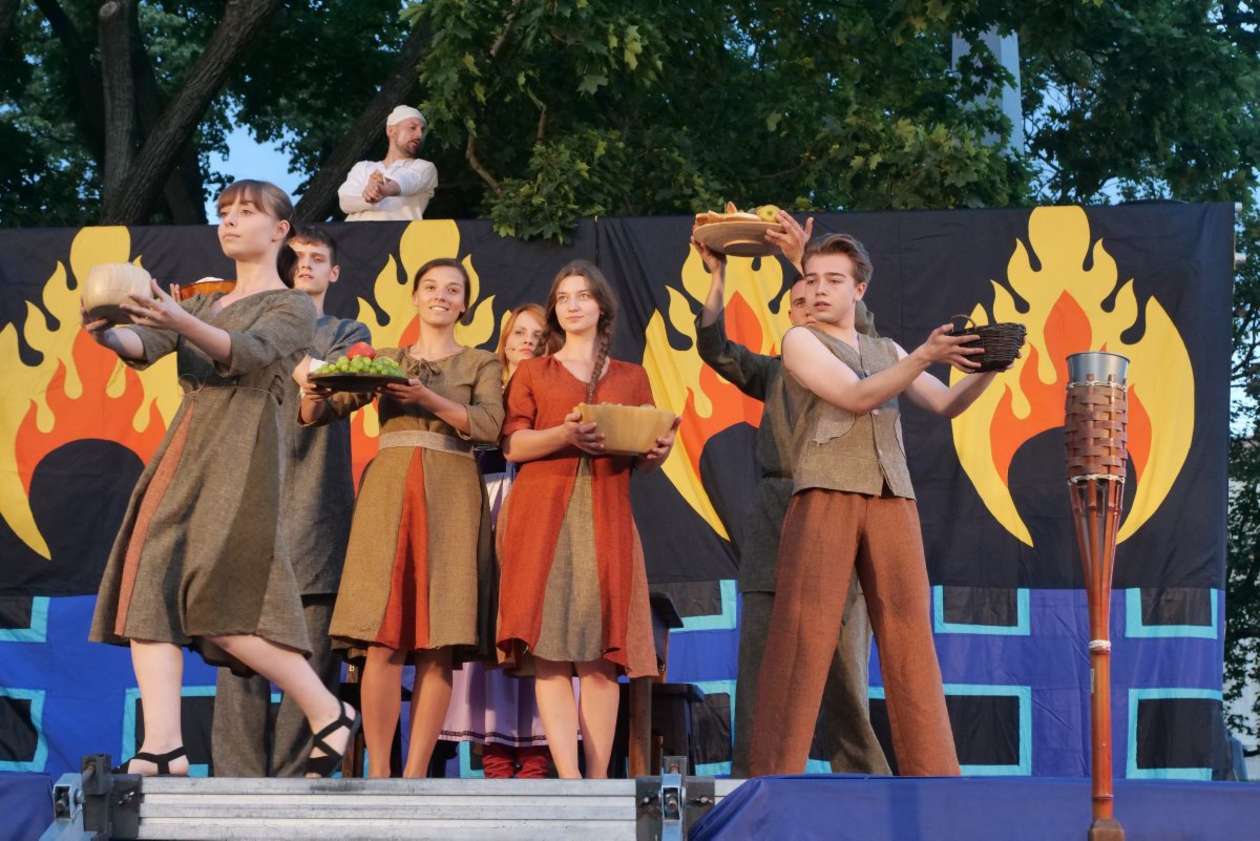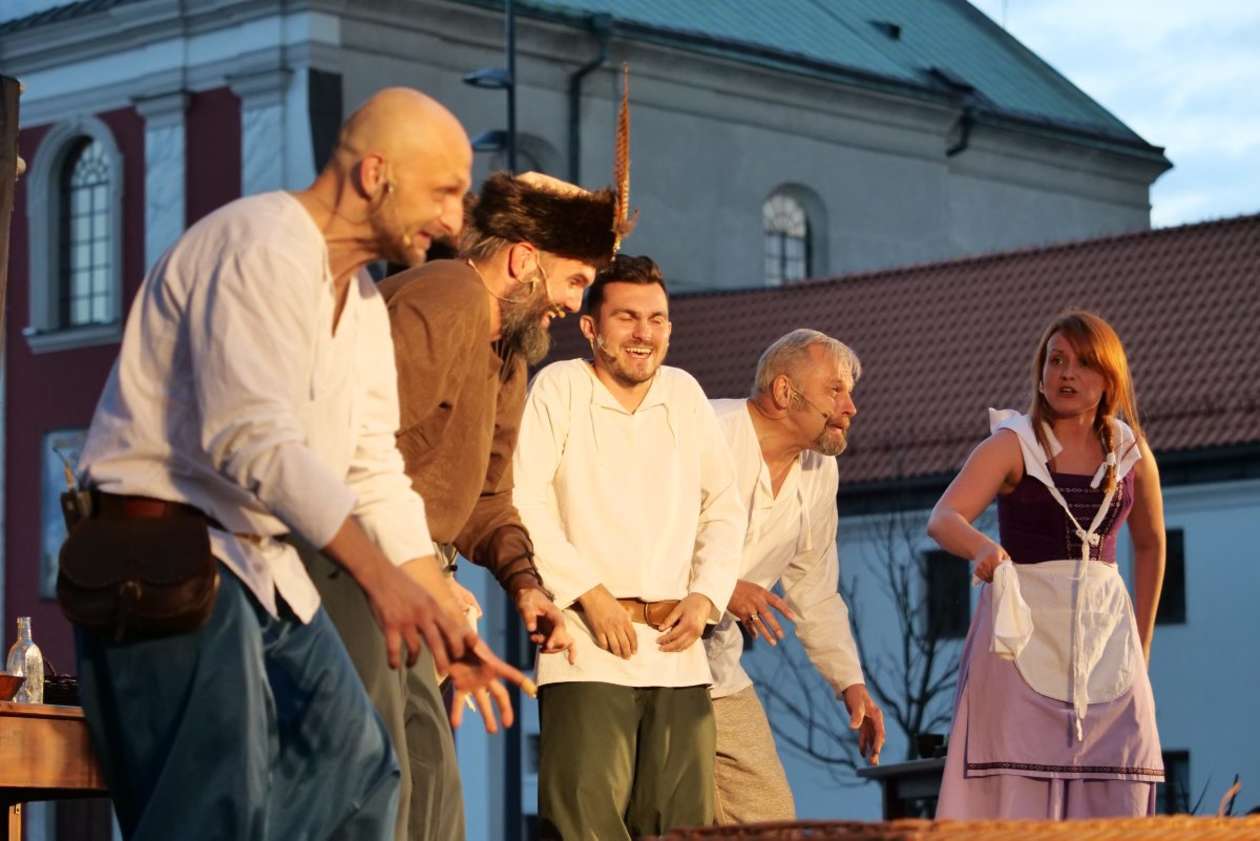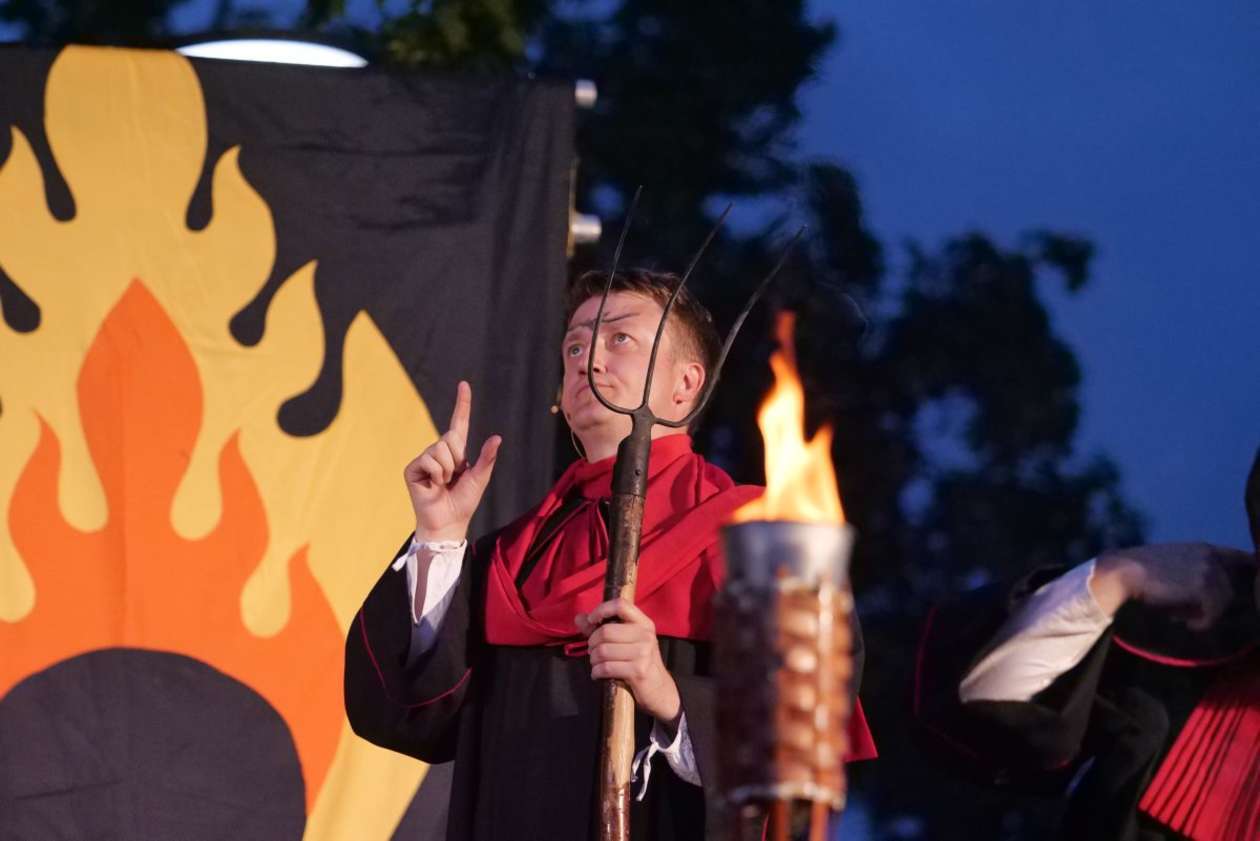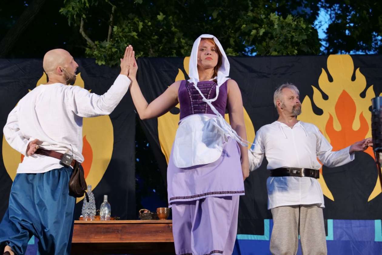 W ramach Lata na placu Litewskim przy pomniku Unii Lubelskiej zaprezentowany został spektakl pt "Legenda o Czarciej Łapie" w wykonaniu grupy Poławiacze Pereł. Fot. Maciej Kaczanowski