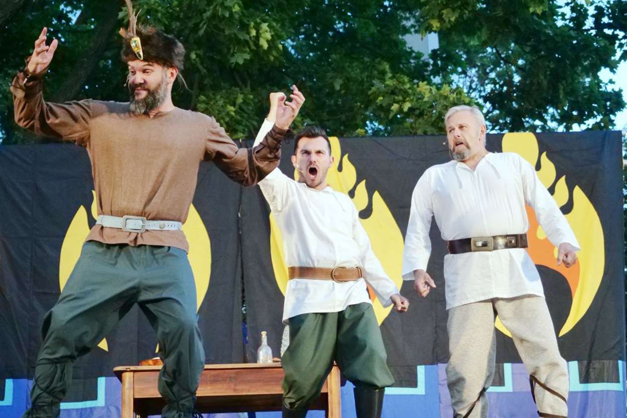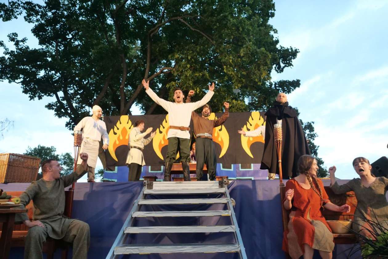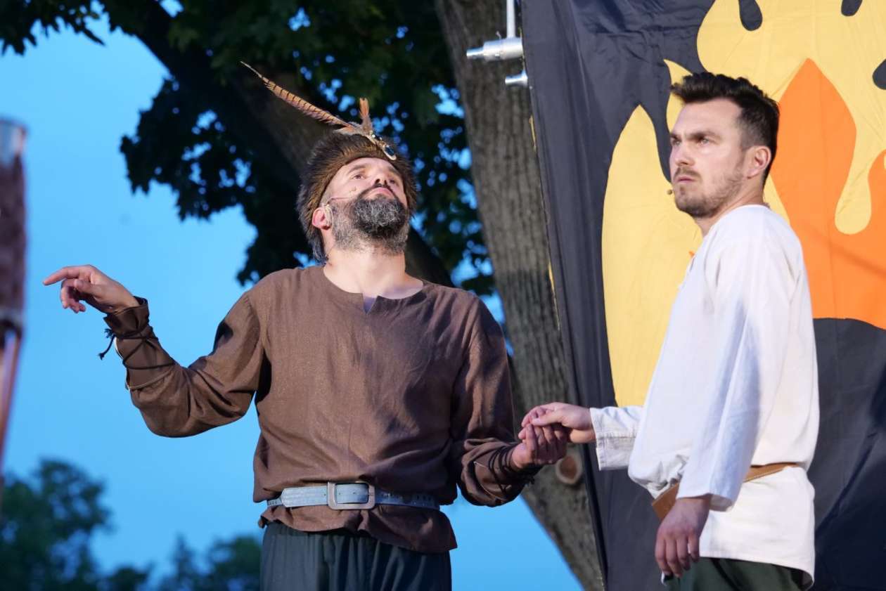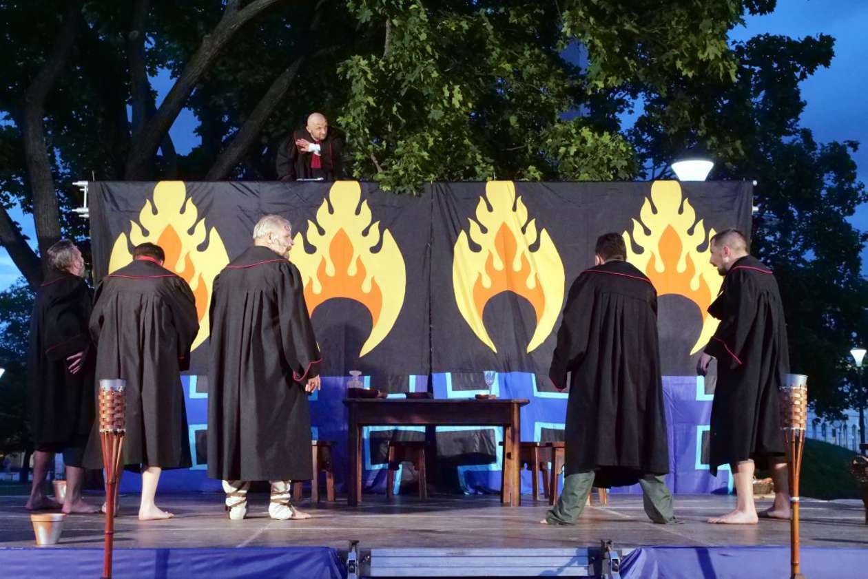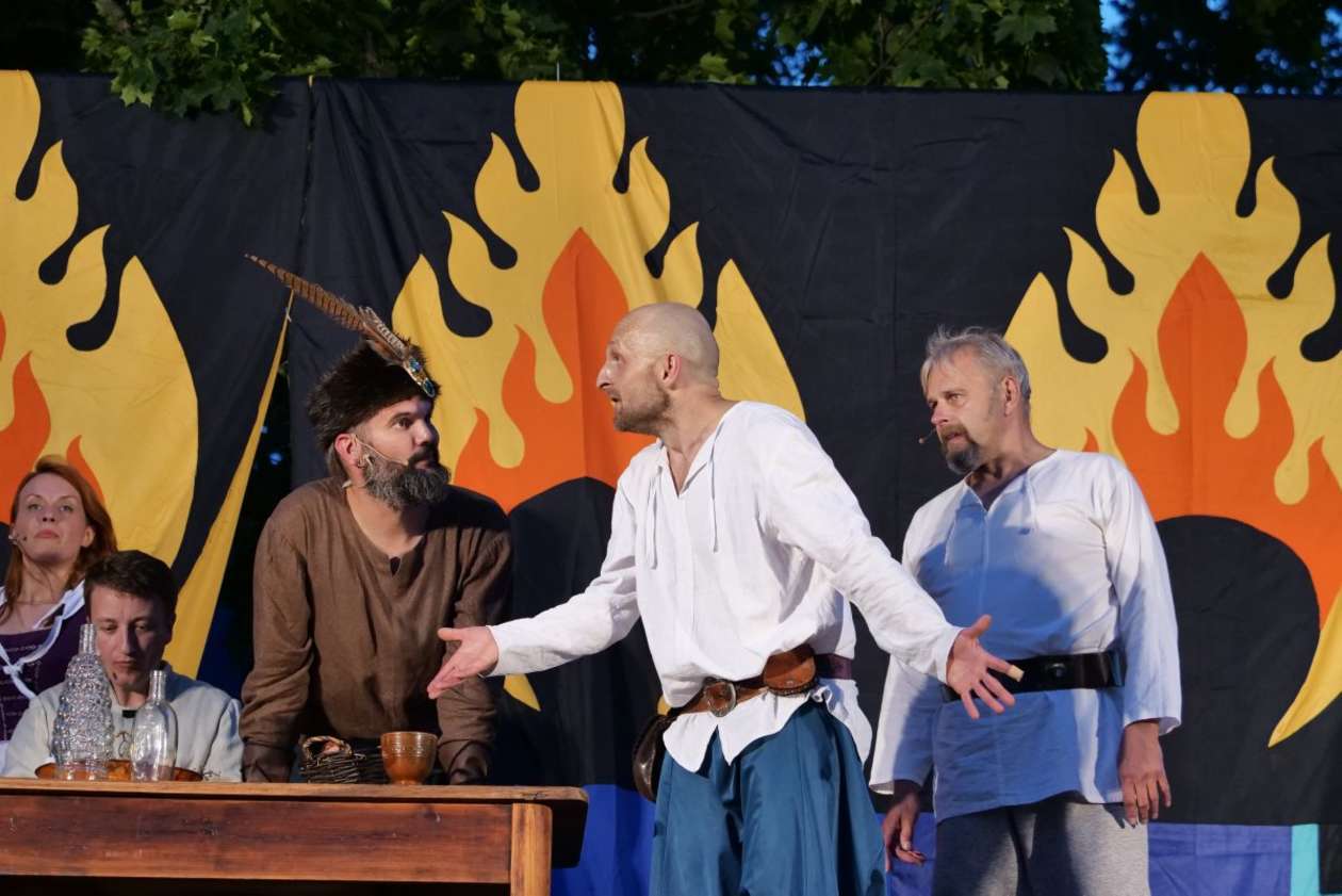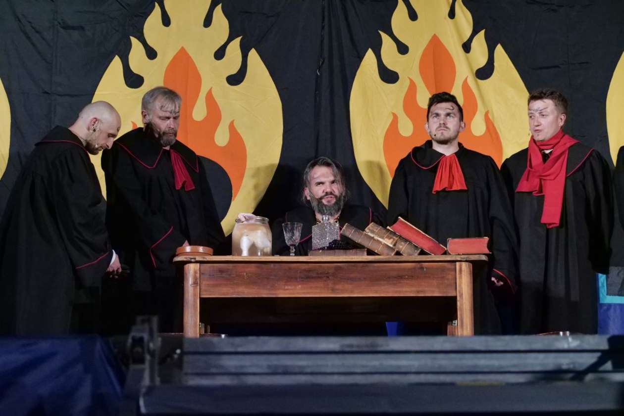 W ramach Lata na placu Litewskim przy pomniku Unii Lubelskiej zaprezentowany został spektakl pt "Legenda o Czarciej Łapie" w wykonaniu grupy Poławiacze Pereł. Fot. Maciej Kaczanowski