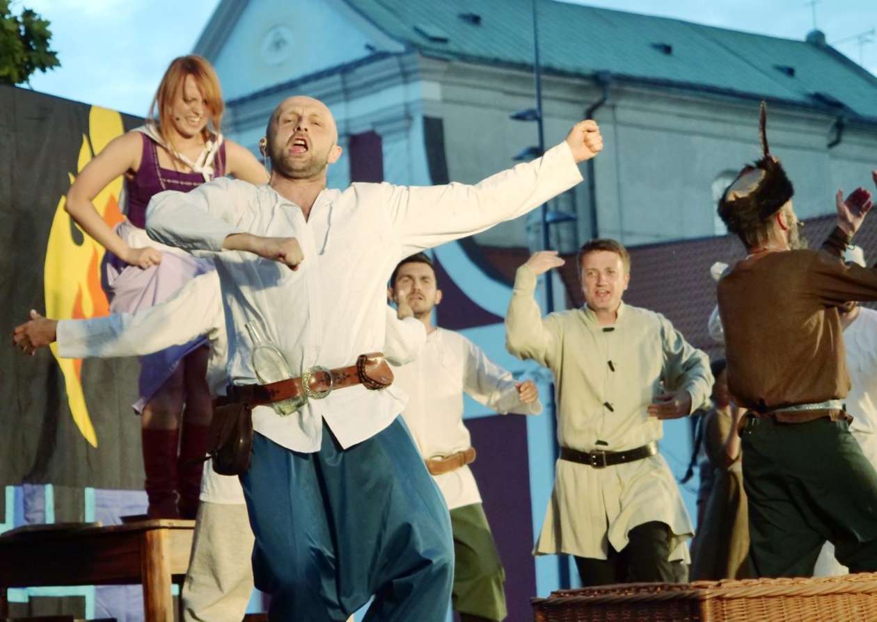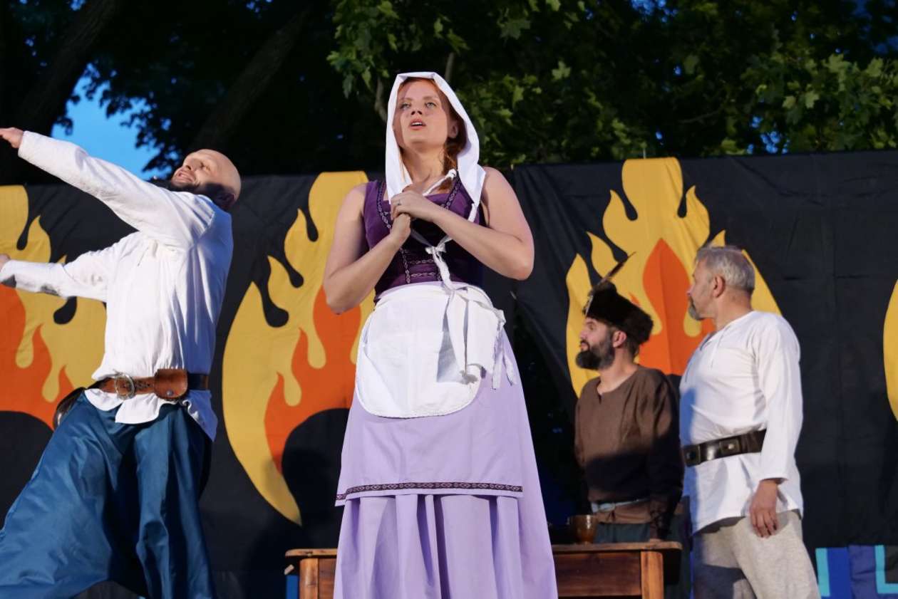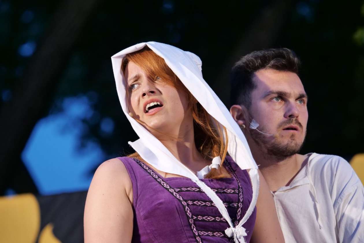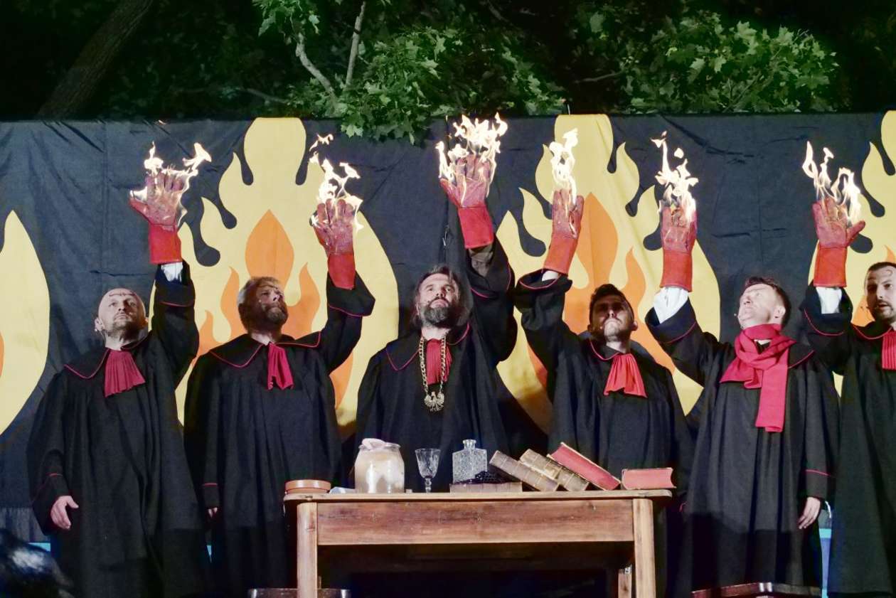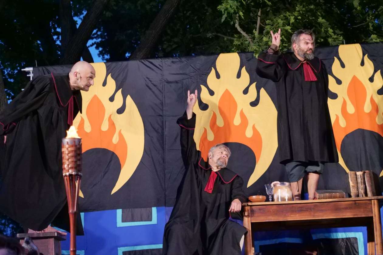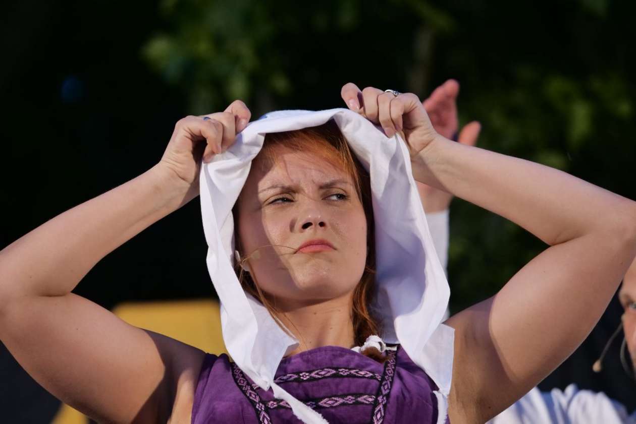 W ramach Lata na placu Litewskim przy pomniku Unii Lubelskiej zaprezentowany został spektakl pt "Legenda o Czarciej Łapie" w wykonaniu grupy Poławiacze Pereł. Fot. Maciej Kaczanowski