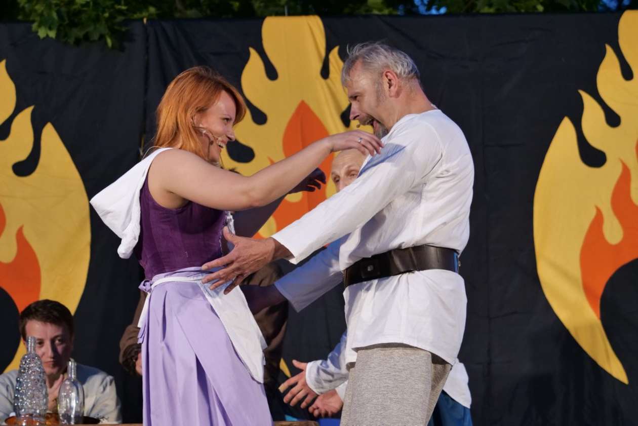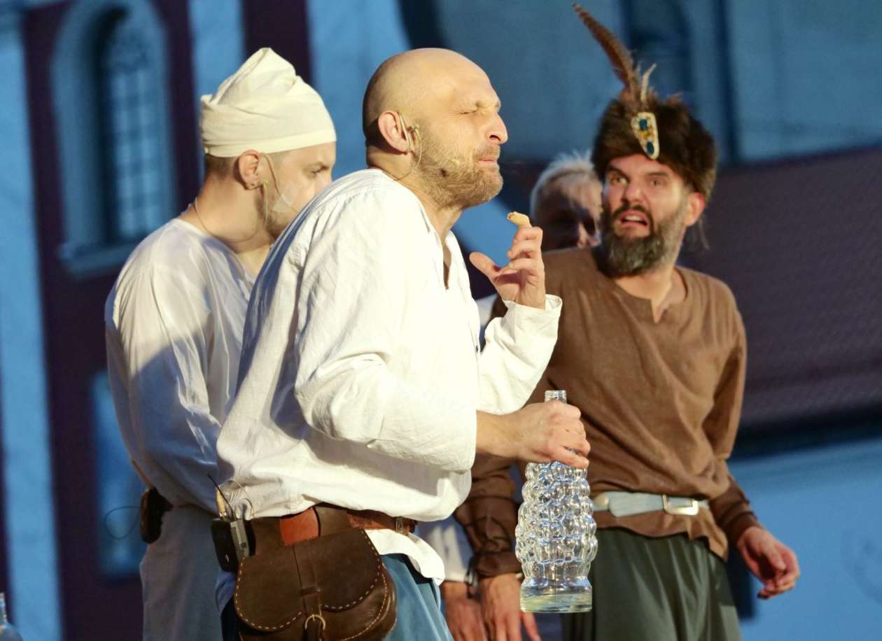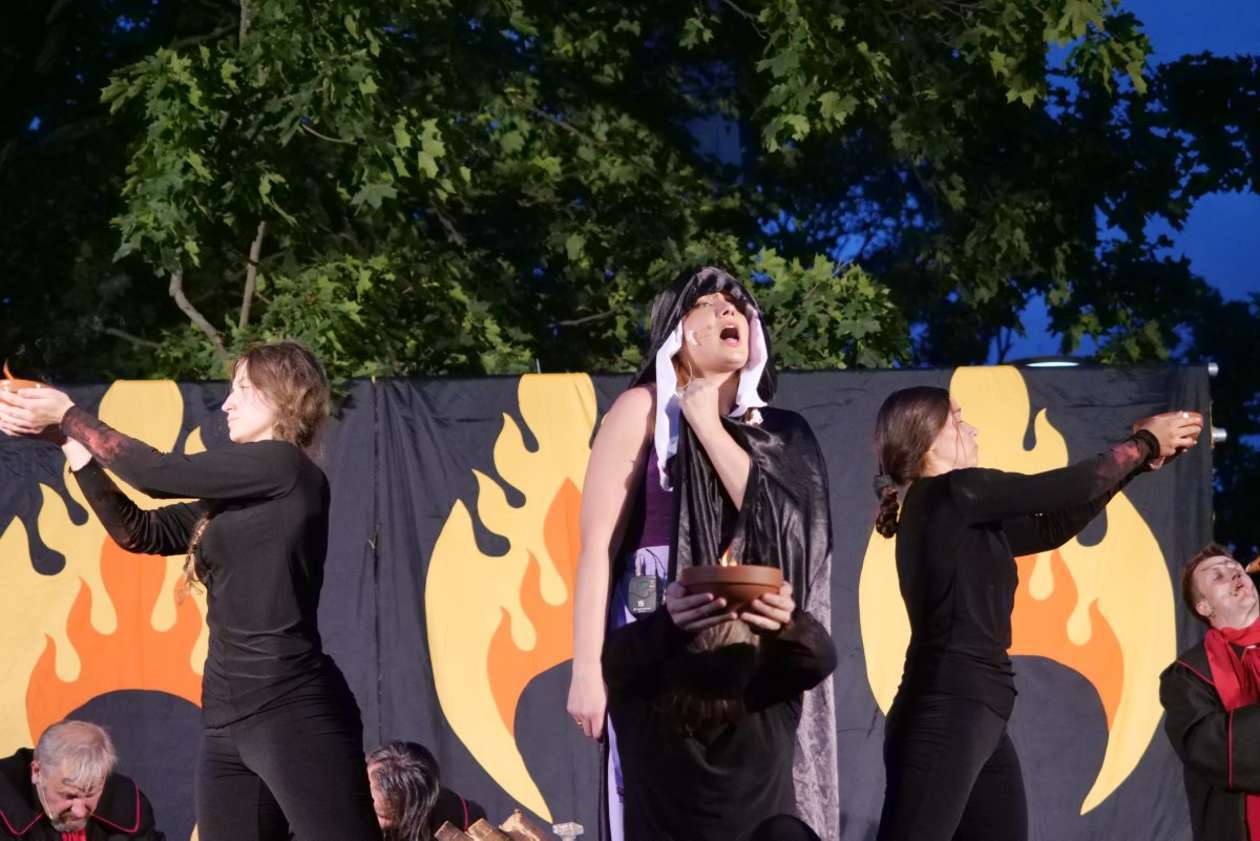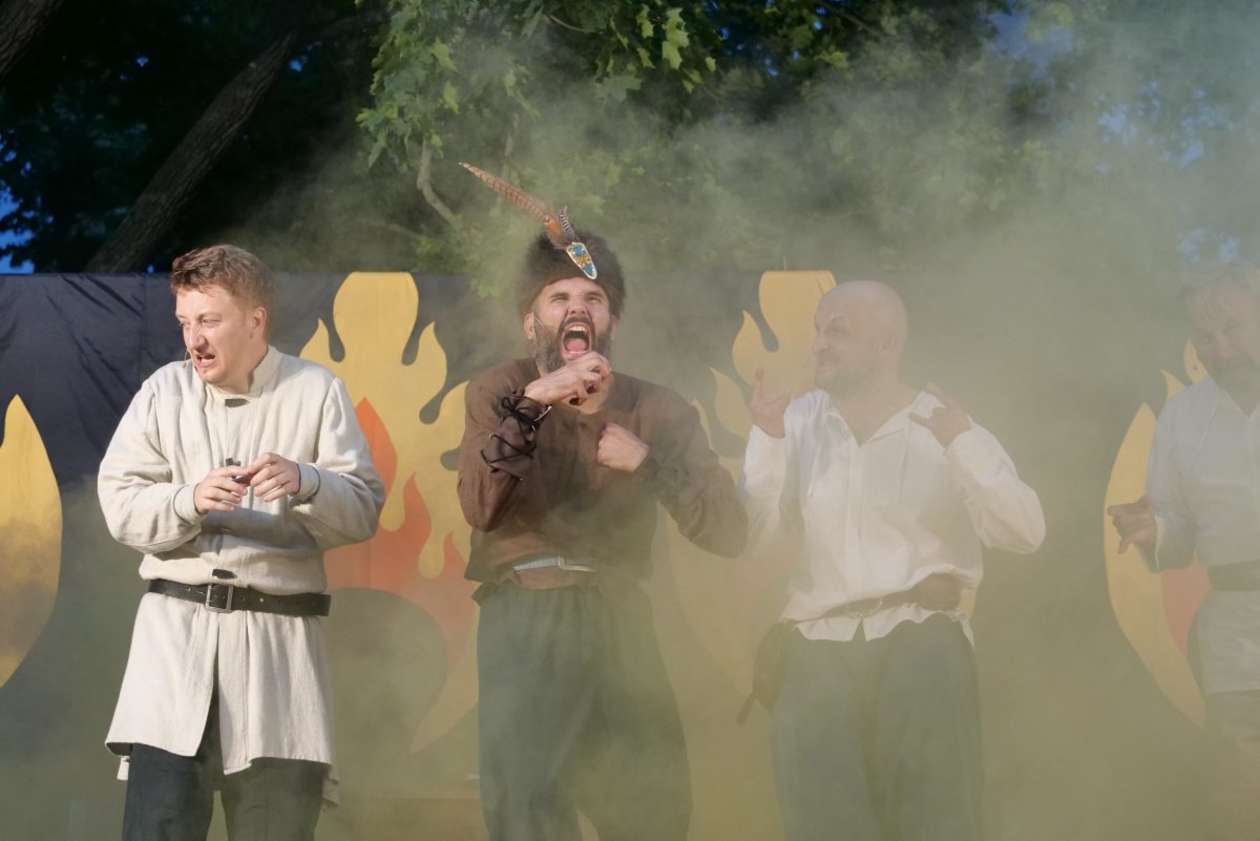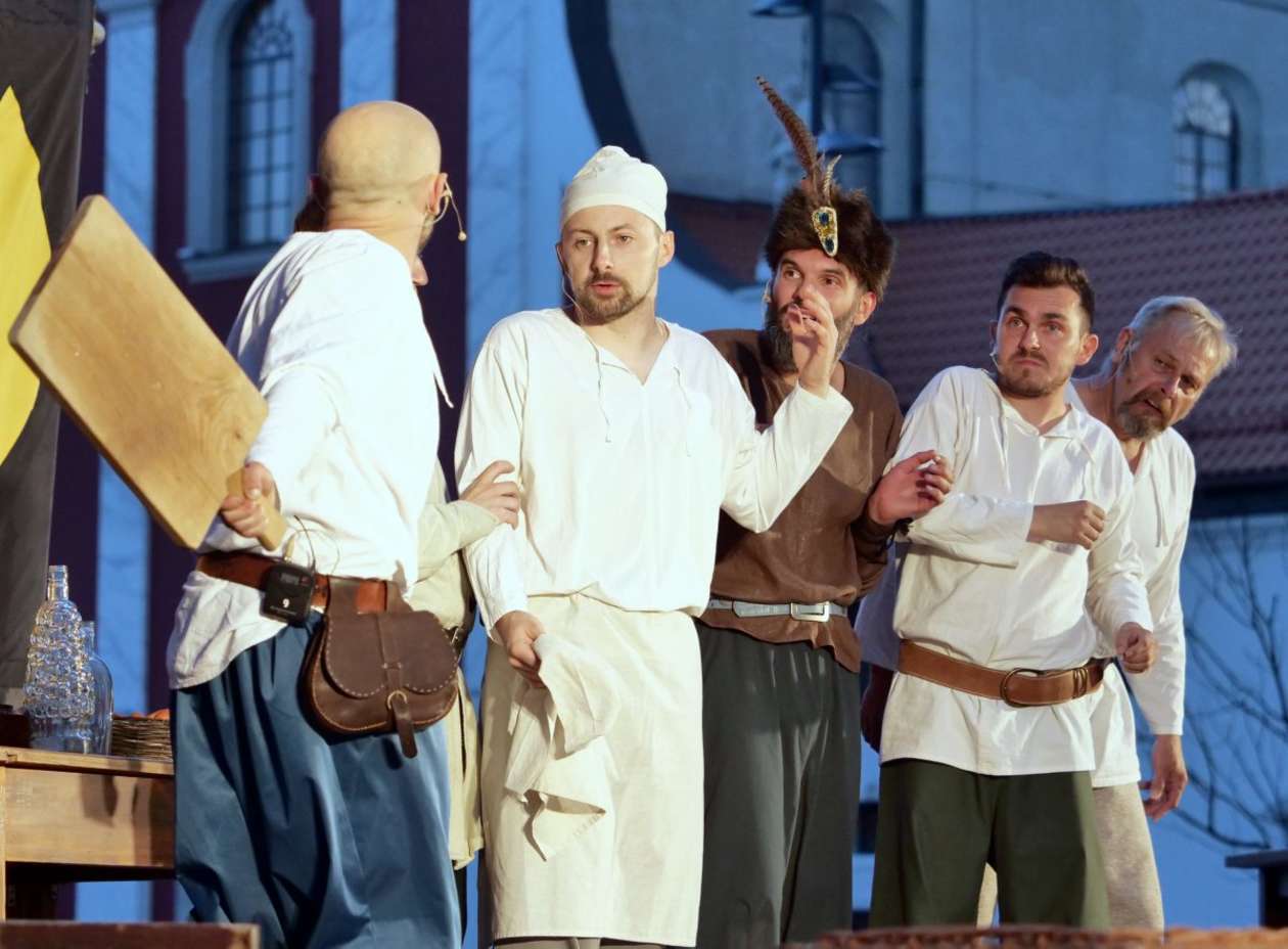 W ramach Lata na placu Litewskim przy pomniku Unii Lubelskiej zaprezentowany został spektakl pt "Legenda o Czarciej Łapie" w wykonaniu grupy Poławiacze Pereł. Fot. Maciej Kaczanowski