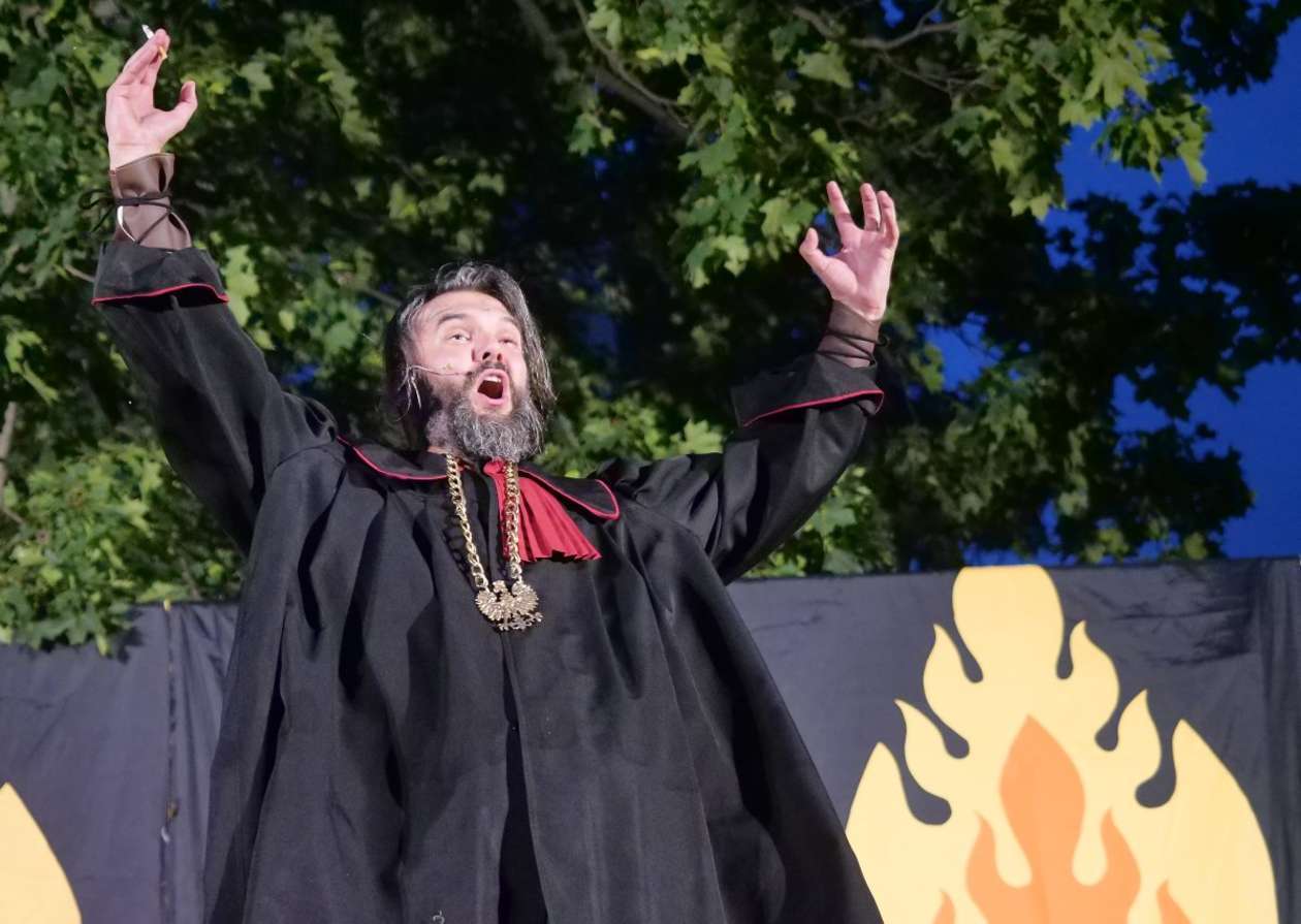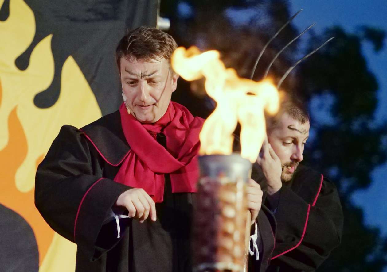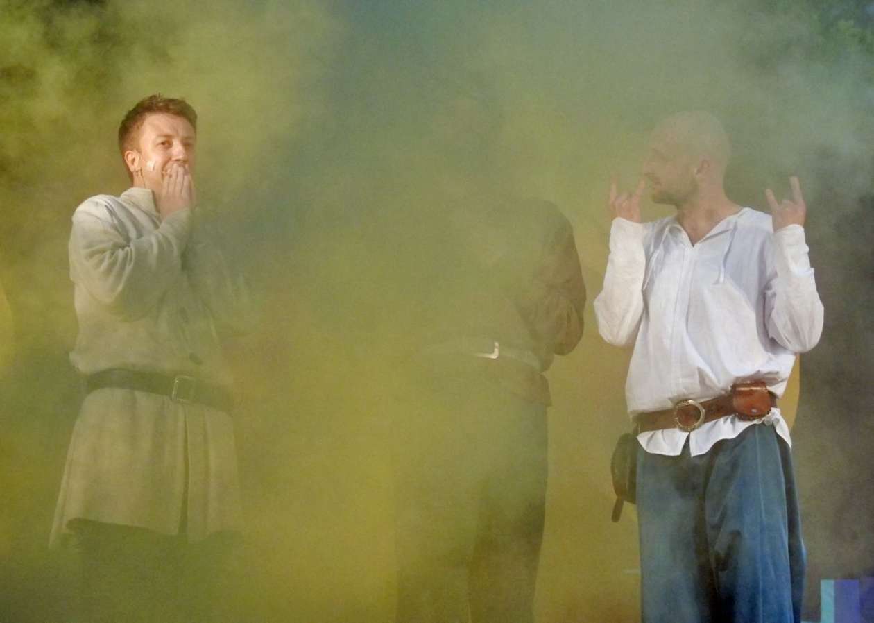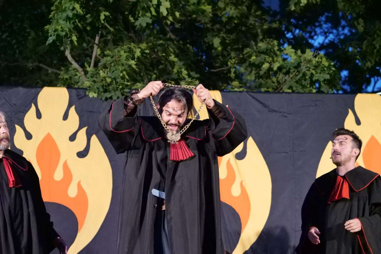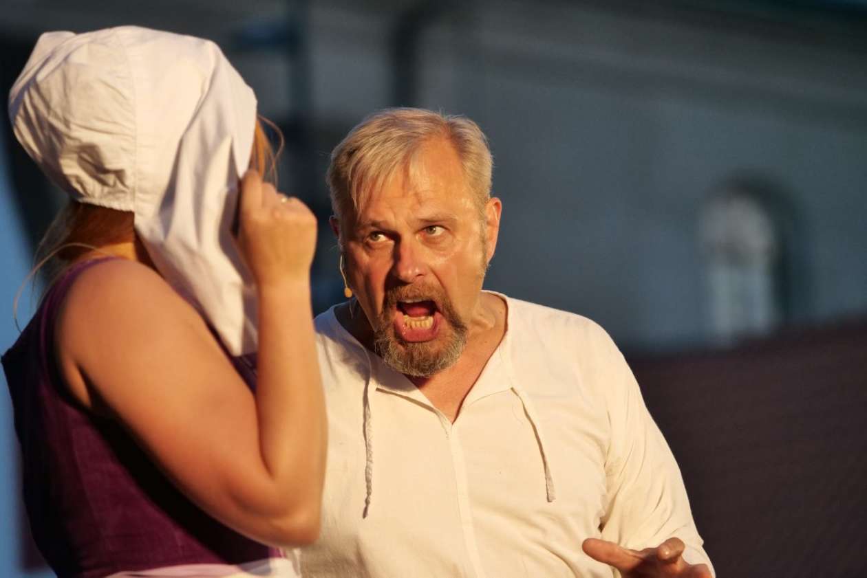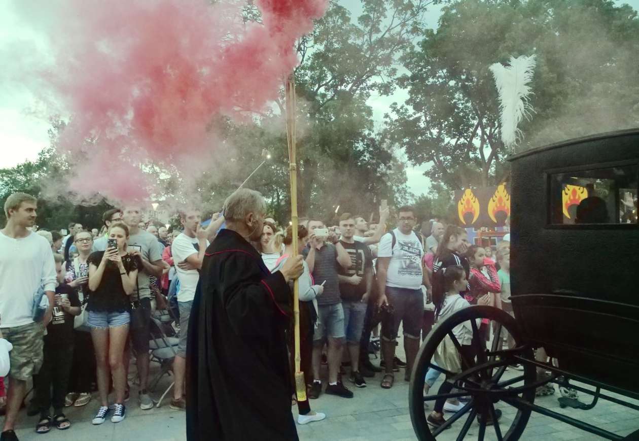 W ramach Lata na placu Litewskim przy pomniku Unii Lubelskiej zaprezentowany został spektakl pt "Legenda o Czarciej Łapie" w wykonaniu grupy Poławiacze Pereł. Fot. Maciej Kaczanowski