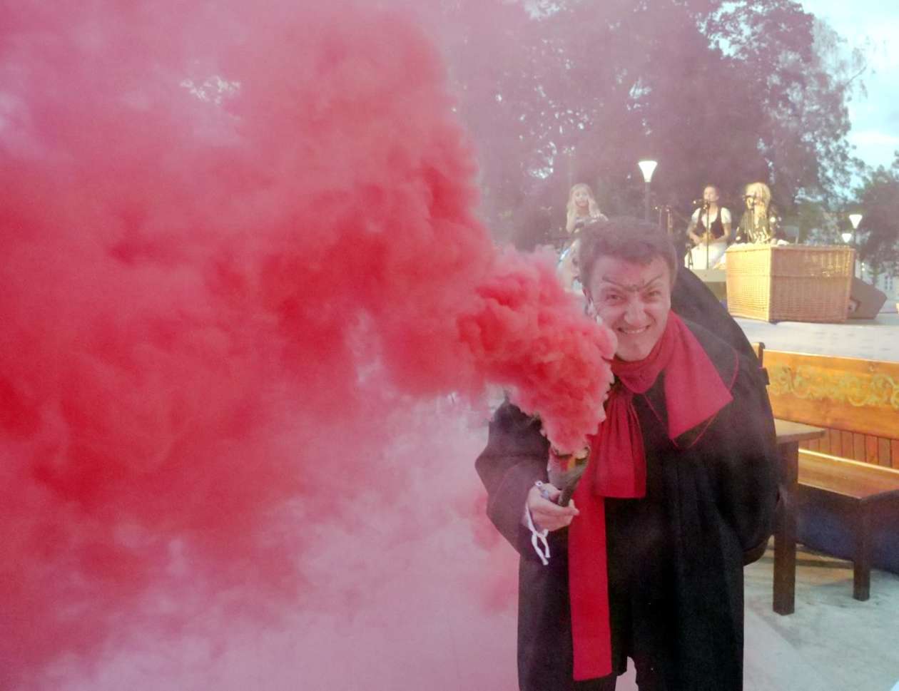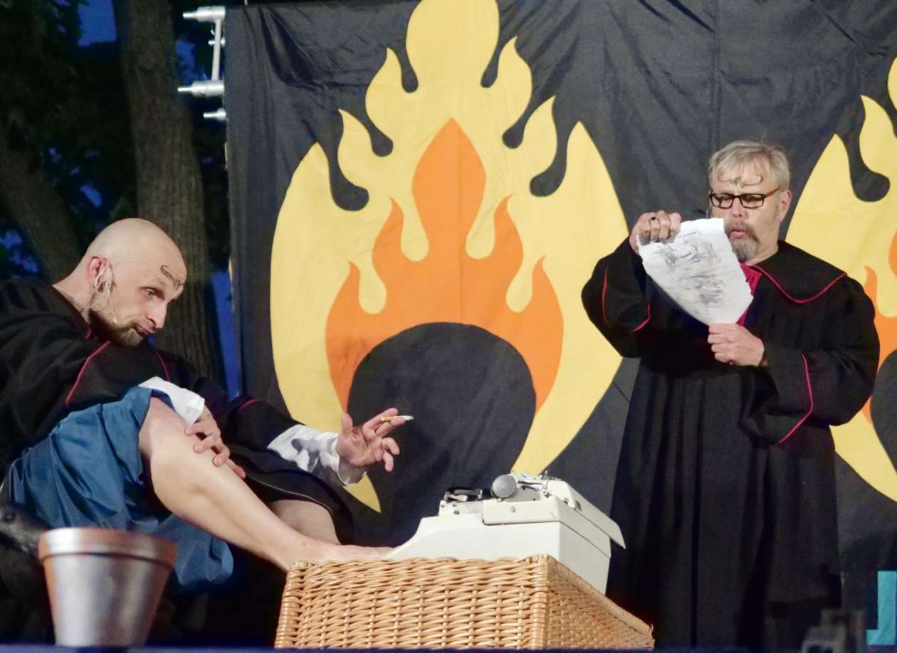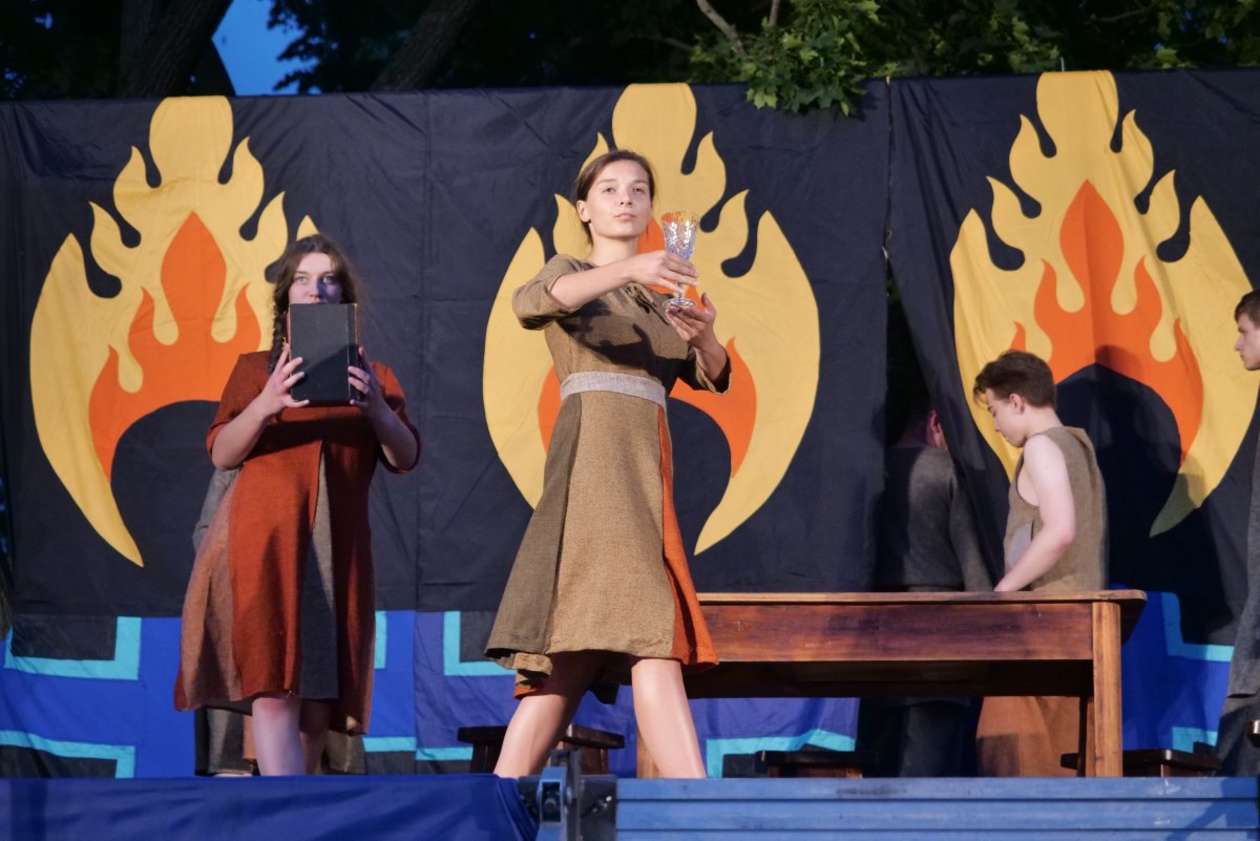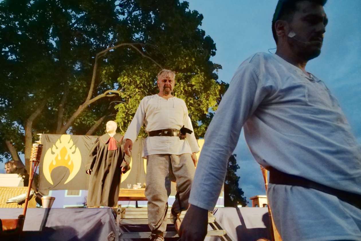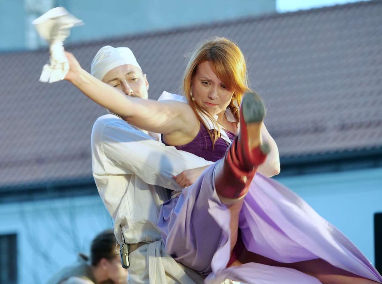 W ramach Lata na placu Litewskim przy pomniku Unii Lubelskiej zaprezentowany został spektakl pt "Legenda o Czarciej Łapie" w wykonaniu grupy Poławiacze Pereł. Fot. Maciej Kaczanowski