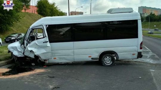 Wypadek na al. Witosa w Lublinie. Bus zderzył się z samochodem osobowym