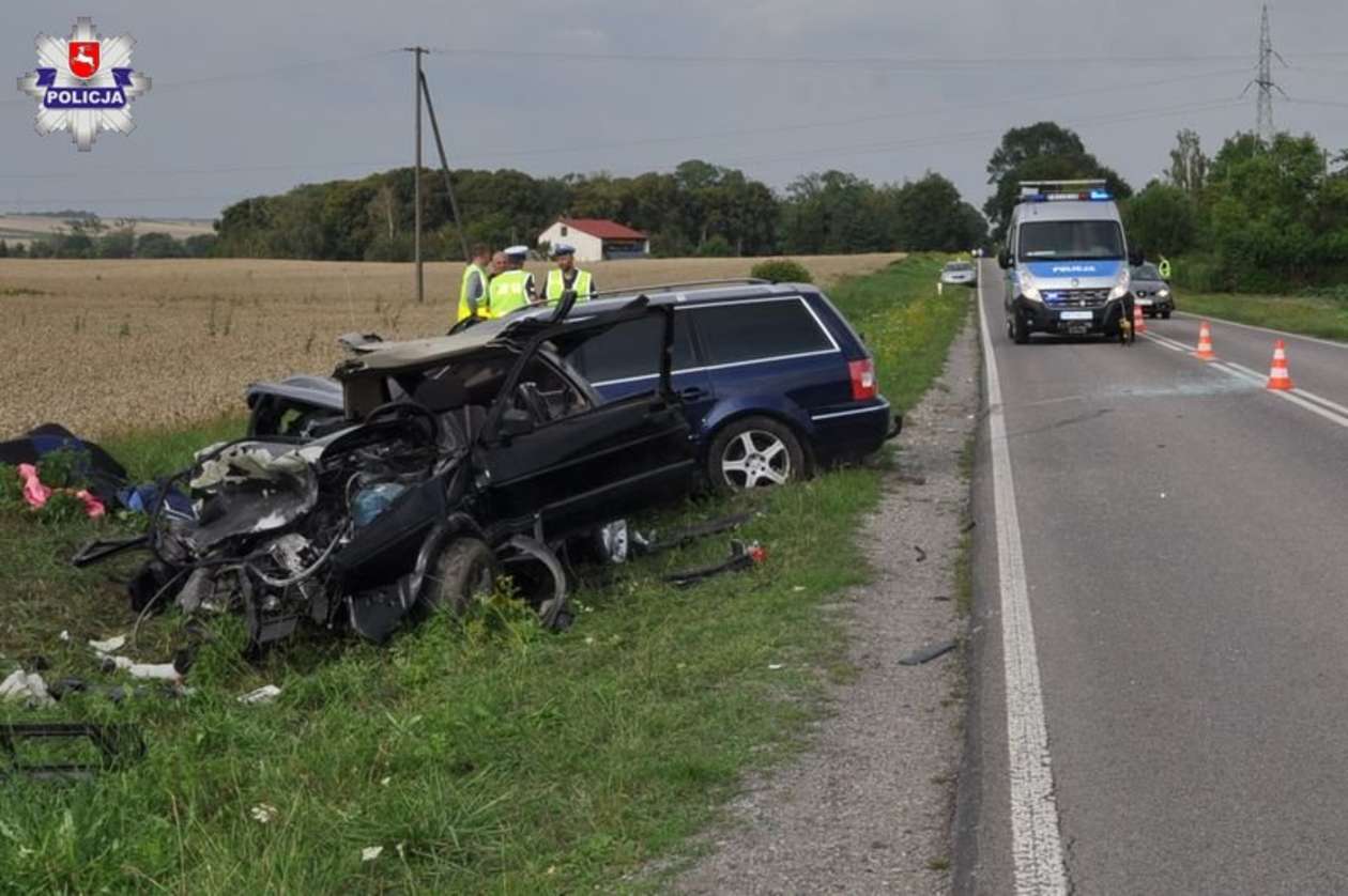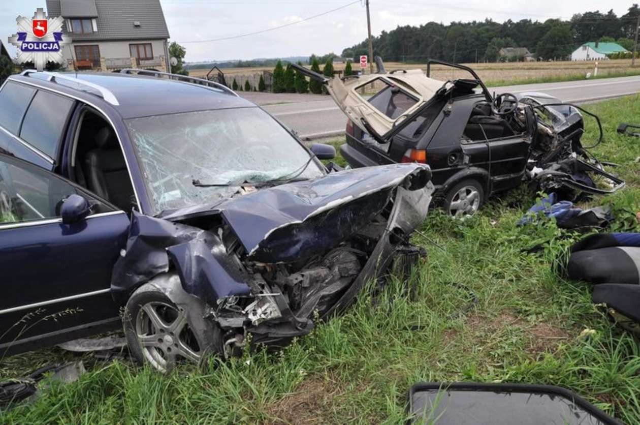 Czołowe zderzenie aut w Krupem