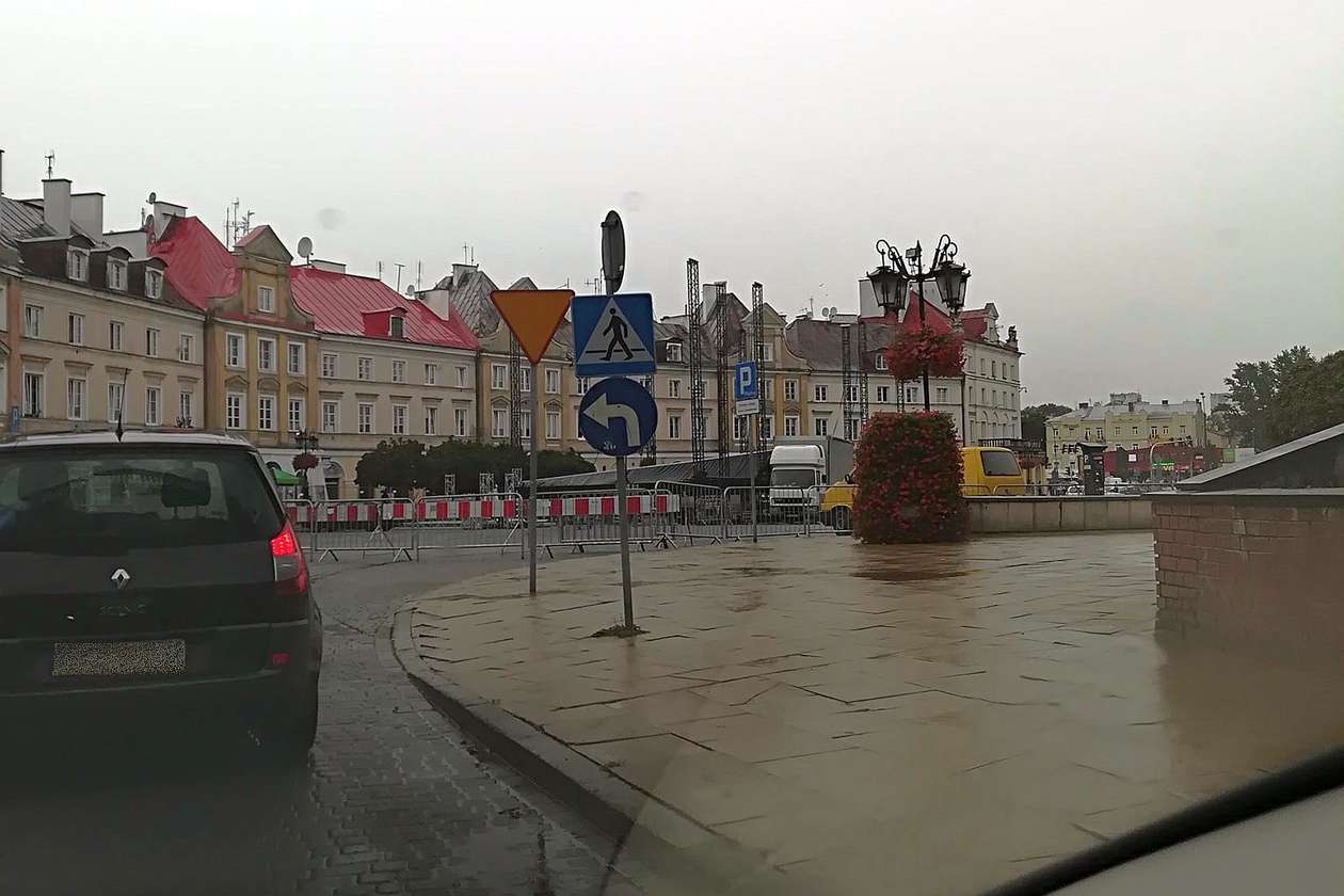 Korki w okolicach zamkniętego placu Zamkowego w Lublinie