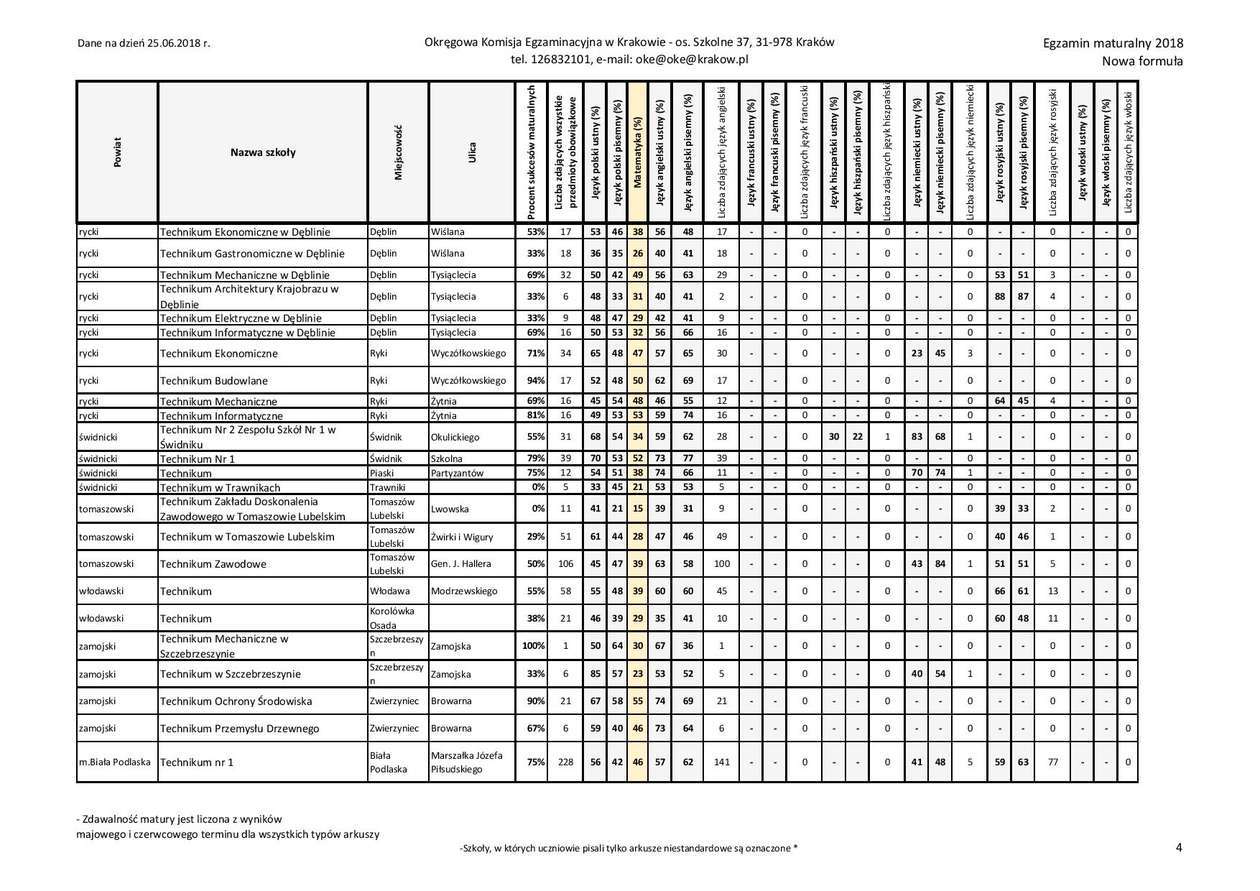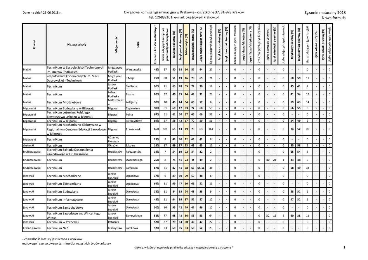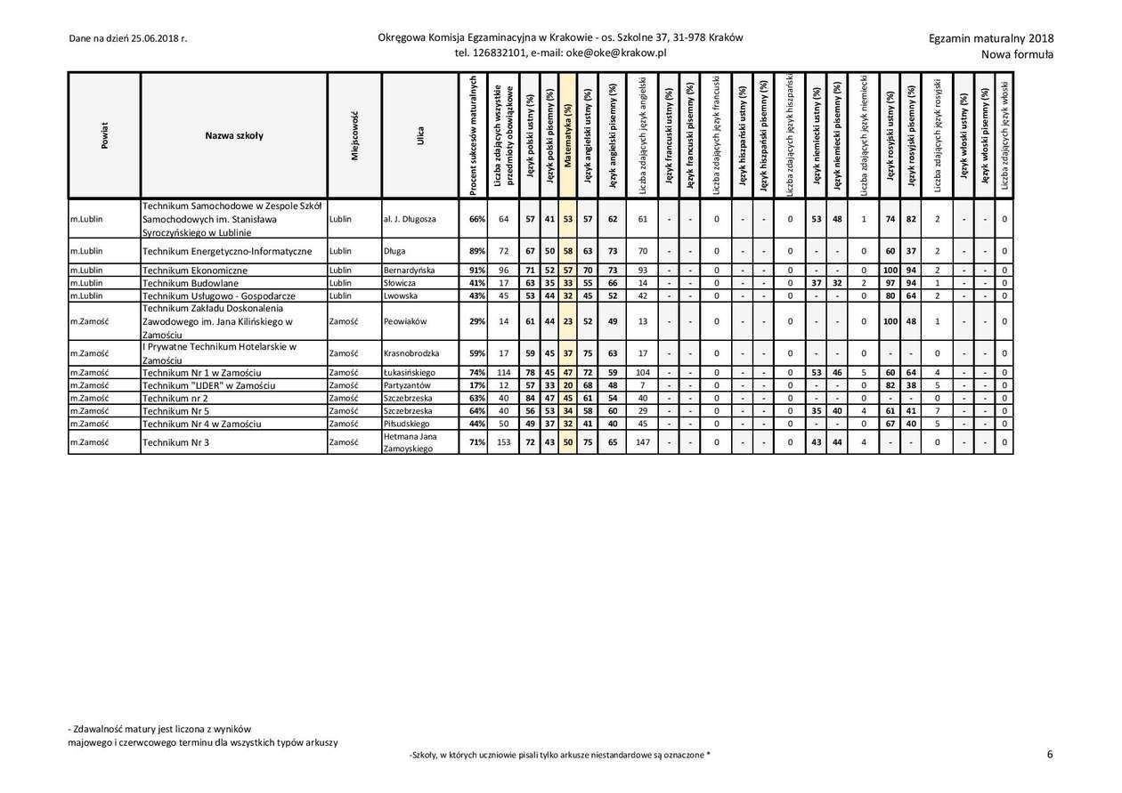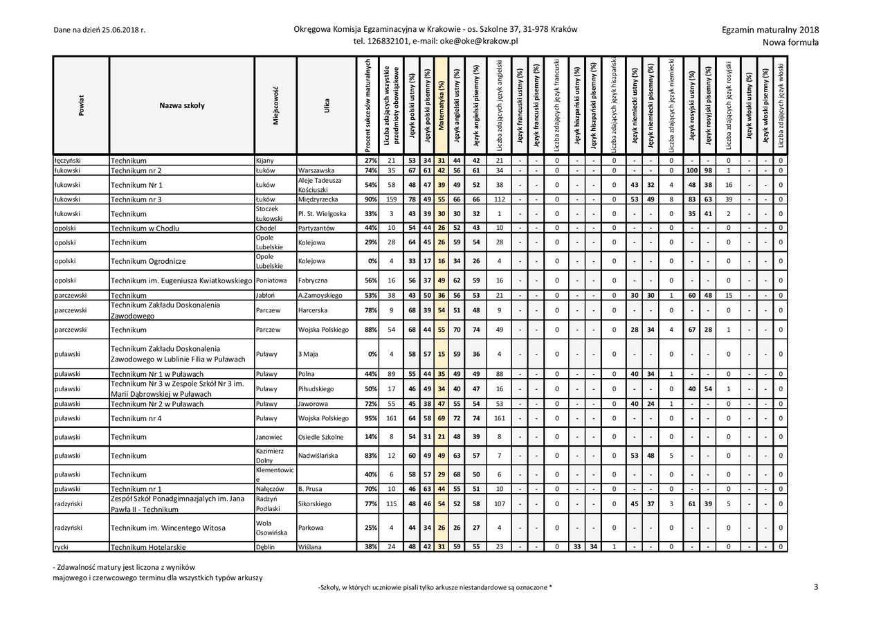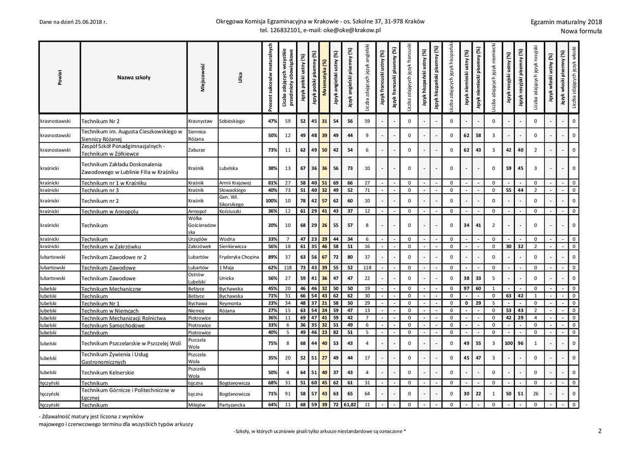 Matura 2018 w woj. lubelskim - technika, przedmioty obowiązkowe