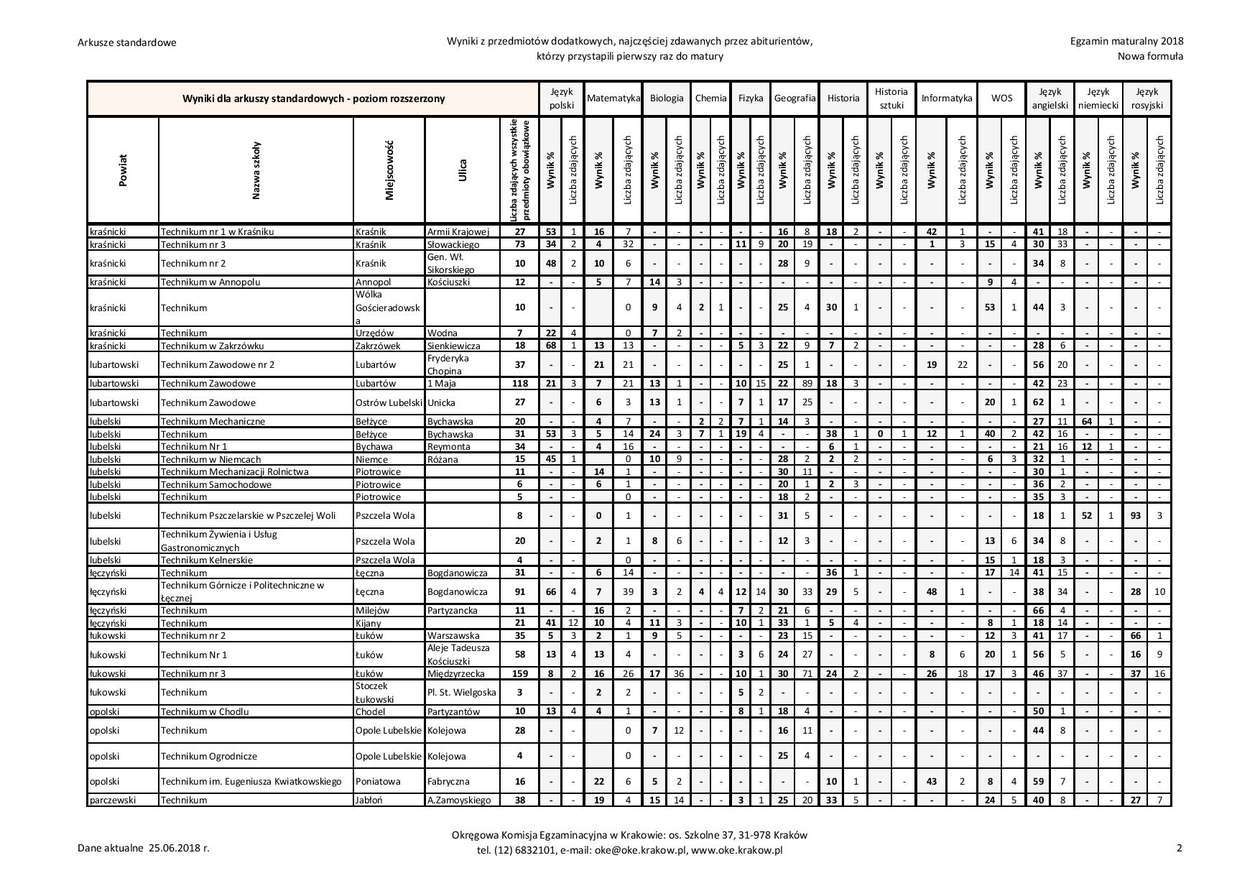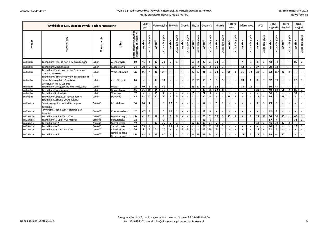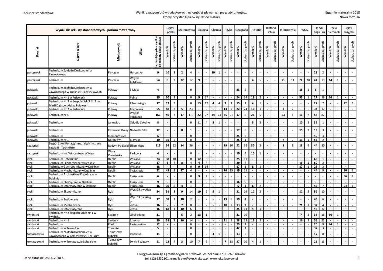 Matura 2018 w woj. lubelskim - technika, przedmioty dodatkowe