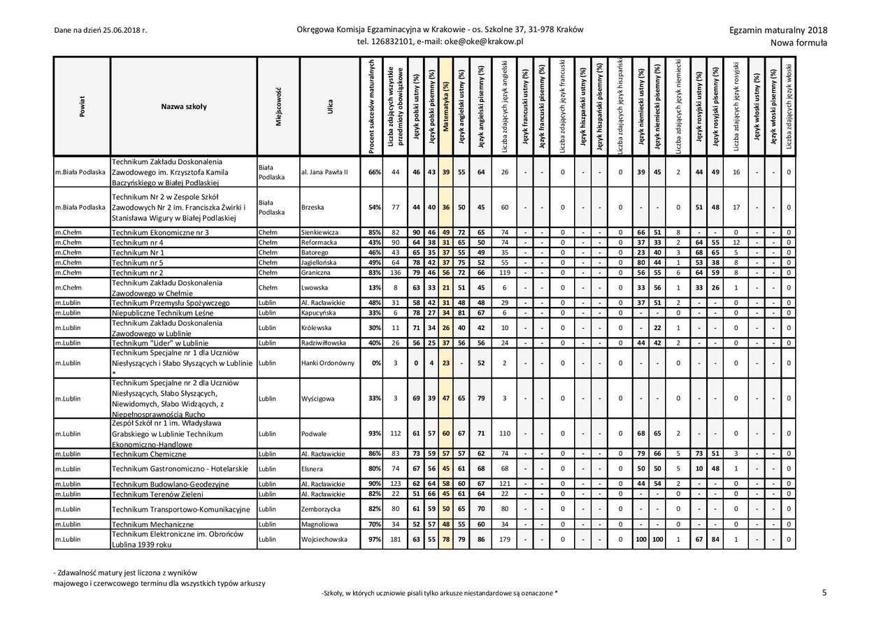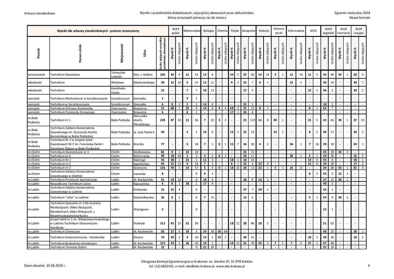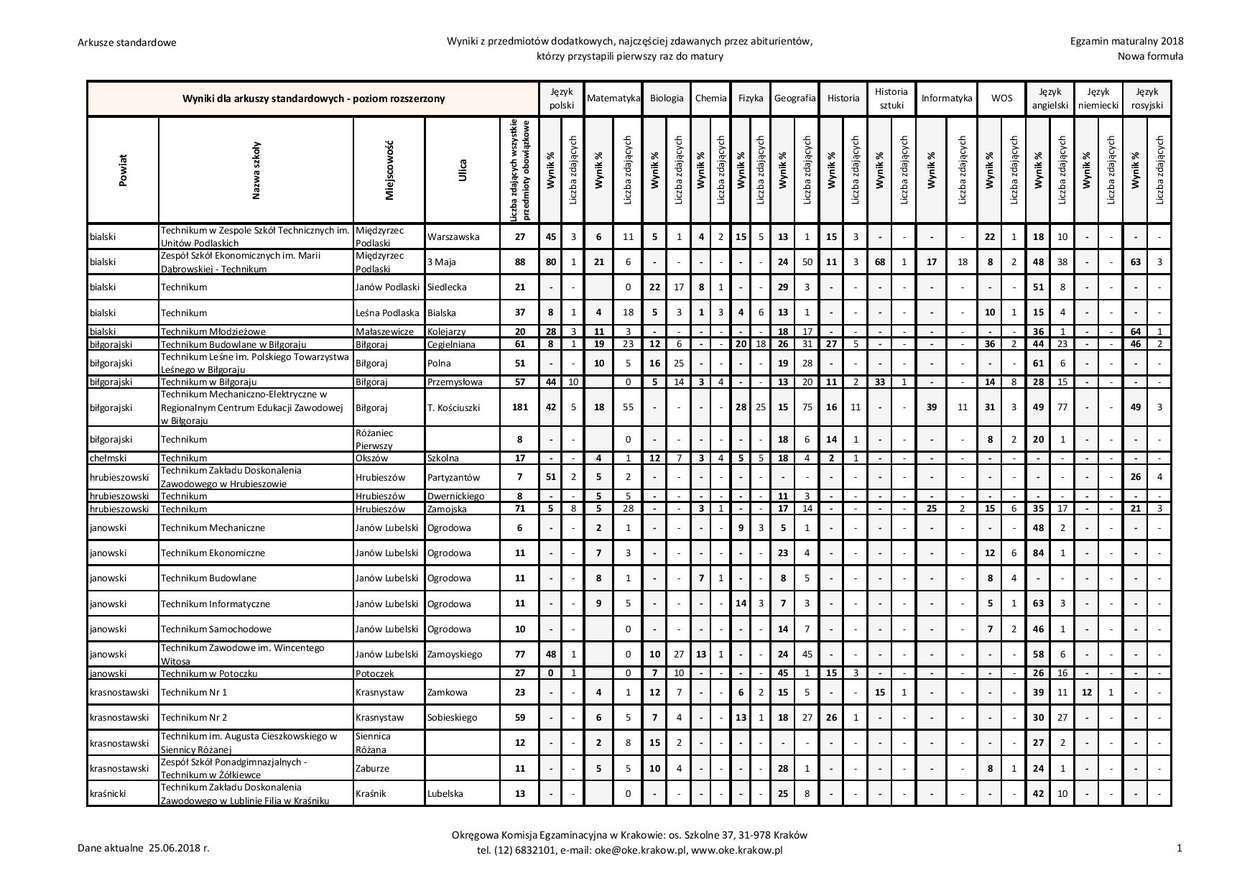 Matura 2018 w woj. lubelskim - technika, przedmioty dodatkowe