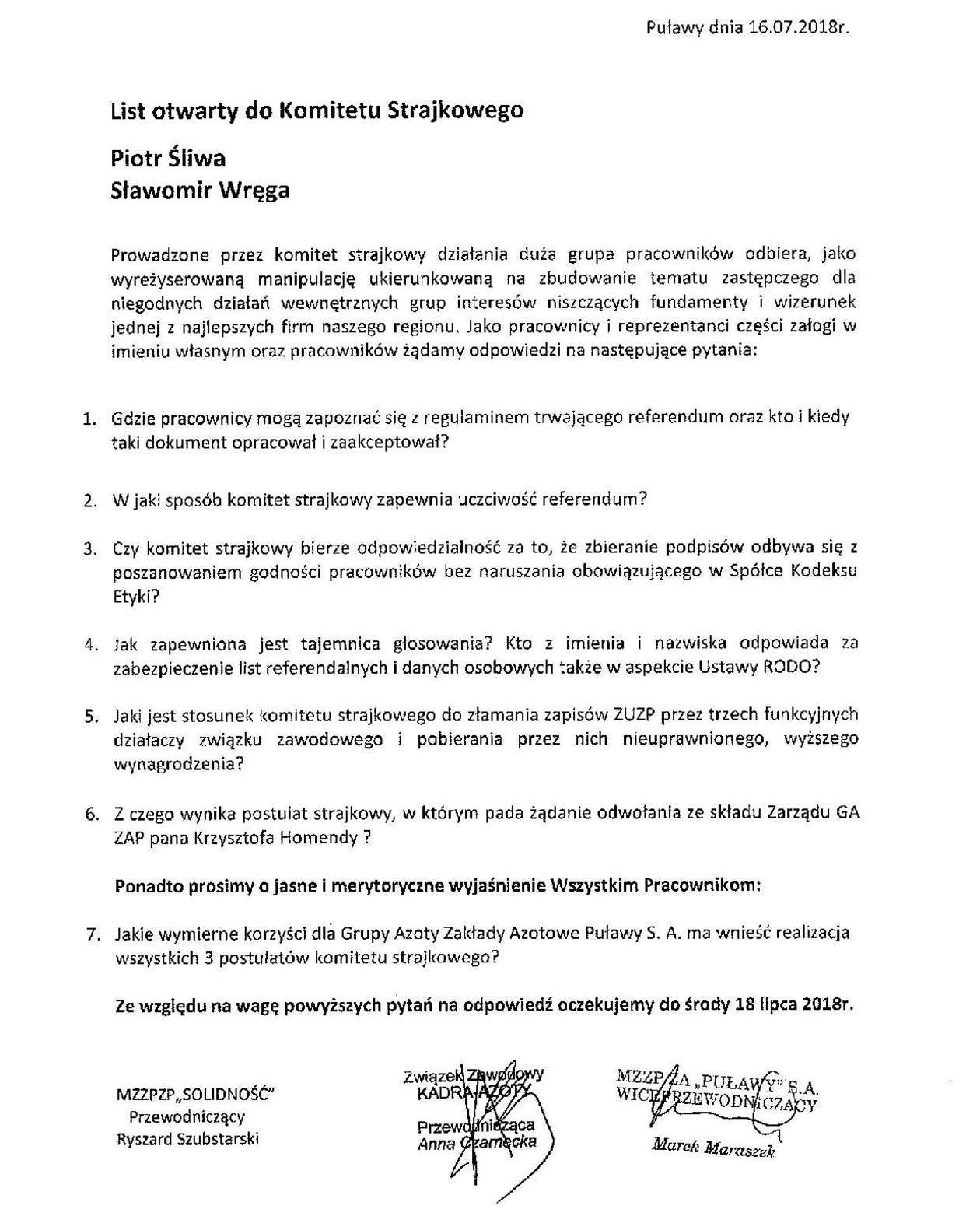 List otwarty do Komitetu Strajkowego