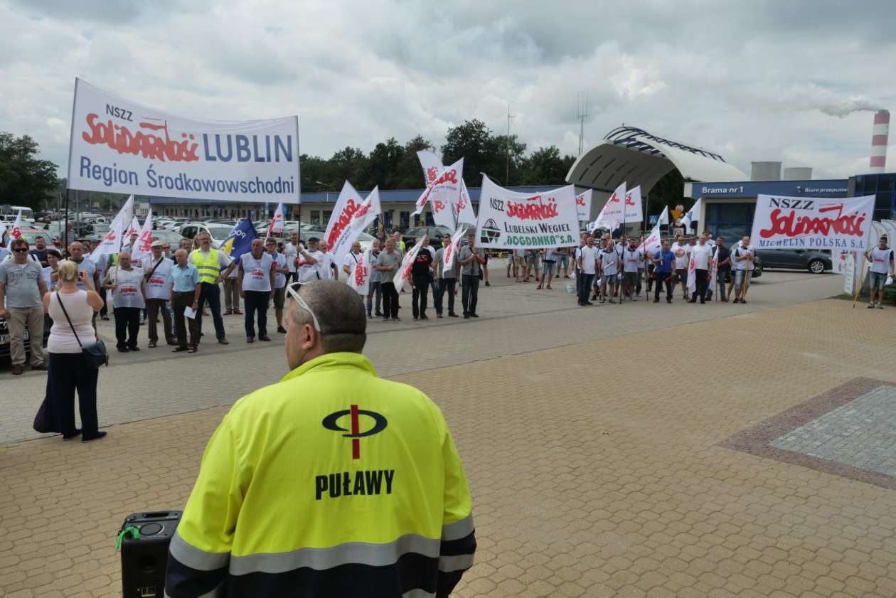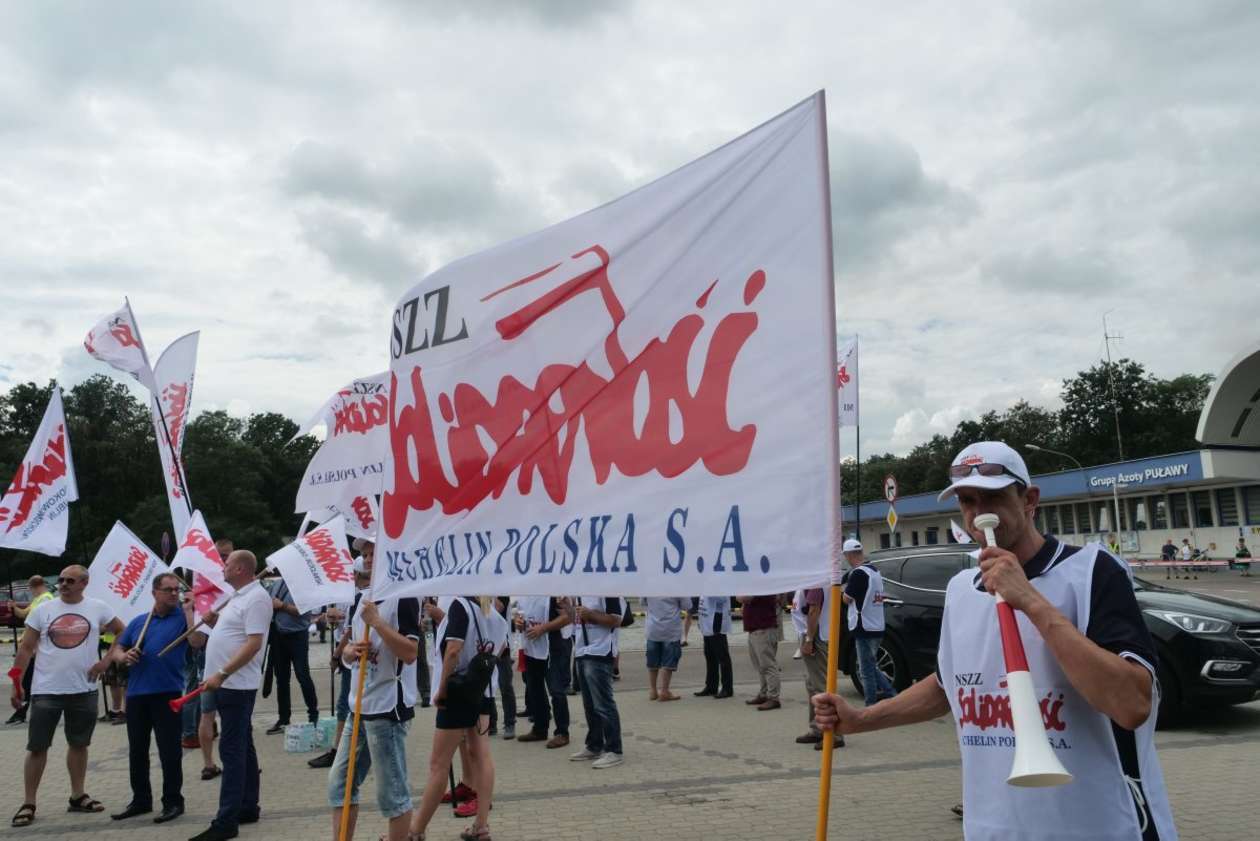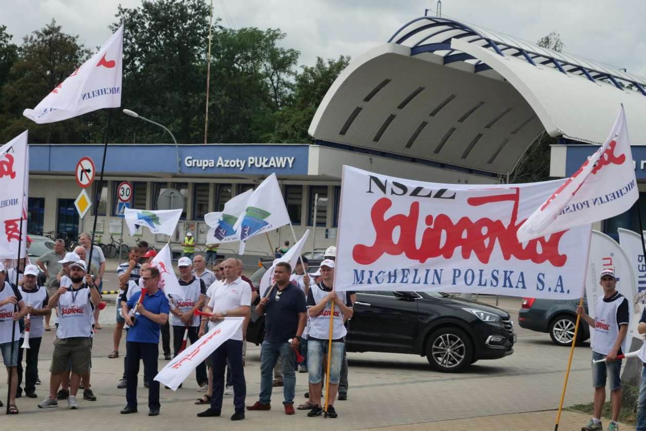 Pikieta w Puławach w obronie zwolnionego pracownika Azotów