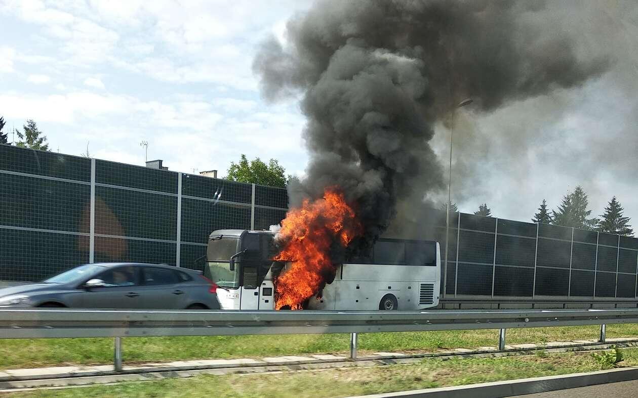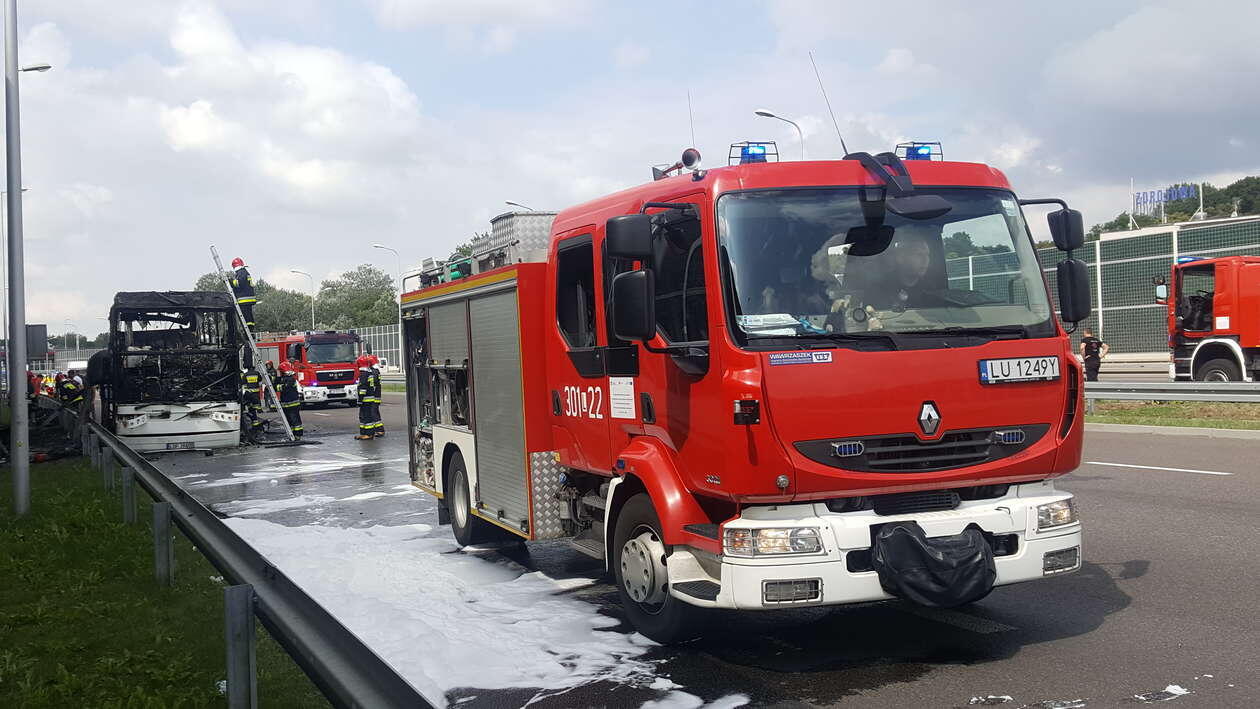 Pożar autokaru przy al. Solidarności w Lublinie