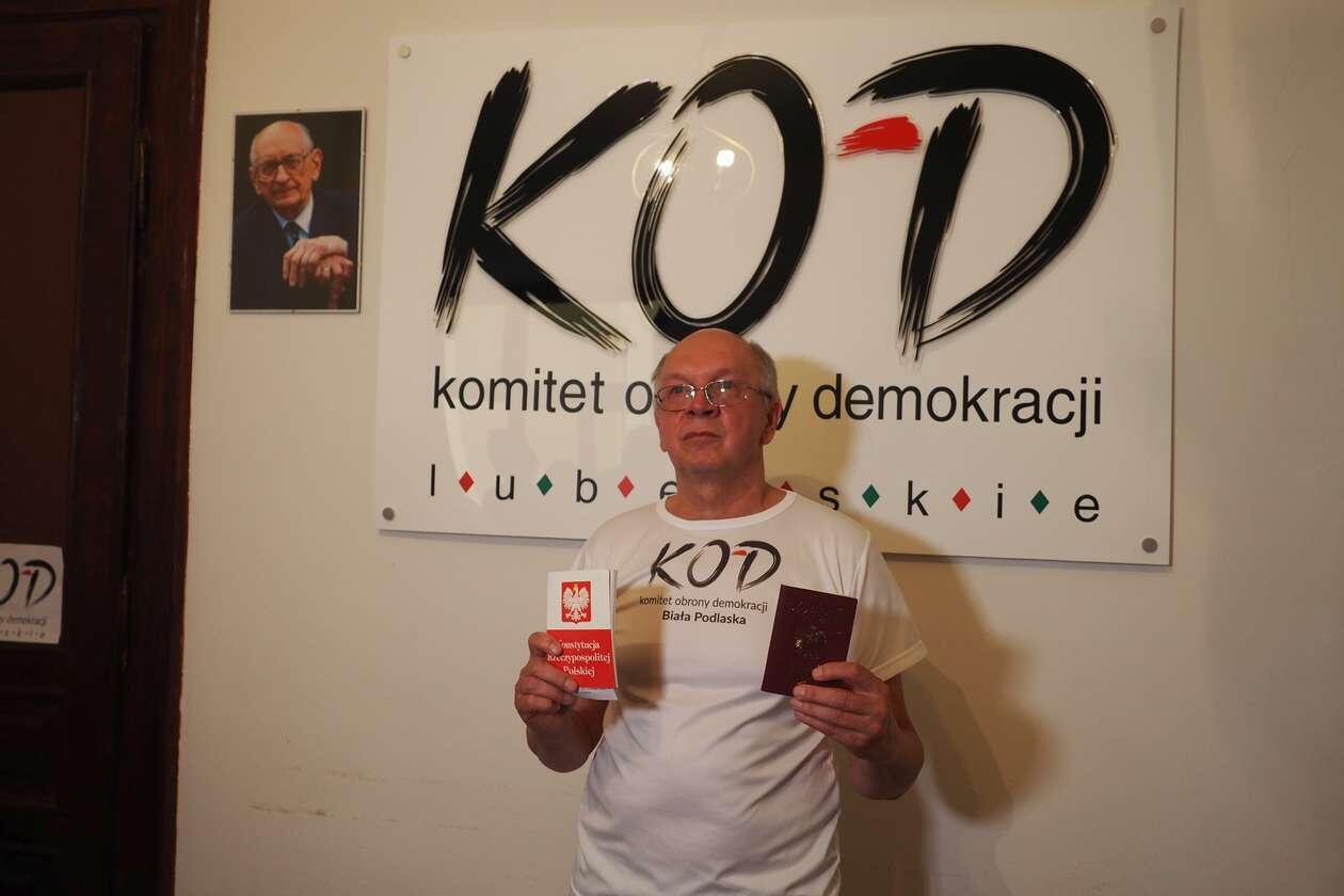– Jestem obywatelem RP i UE, ciągle jeszcze na wolności – mówi Stanisław Dembowski, emerytowany inżynier budownictwa z Białej Podlaskiej. – 2 sierpnia zostałem zatrzymany, zawieziony na komisariat, gdzie postawiono mi zarzut. Nic nie znieważyłem, to absurd. „Konstytucja” to nie obelga, dla mnie to najświętsze słowo. Zatrzymano mi telefon, zabrano aparat fotograficzny, mam się zgłosić na pobranie odcisków palców. Czuję się jak przestępca.
