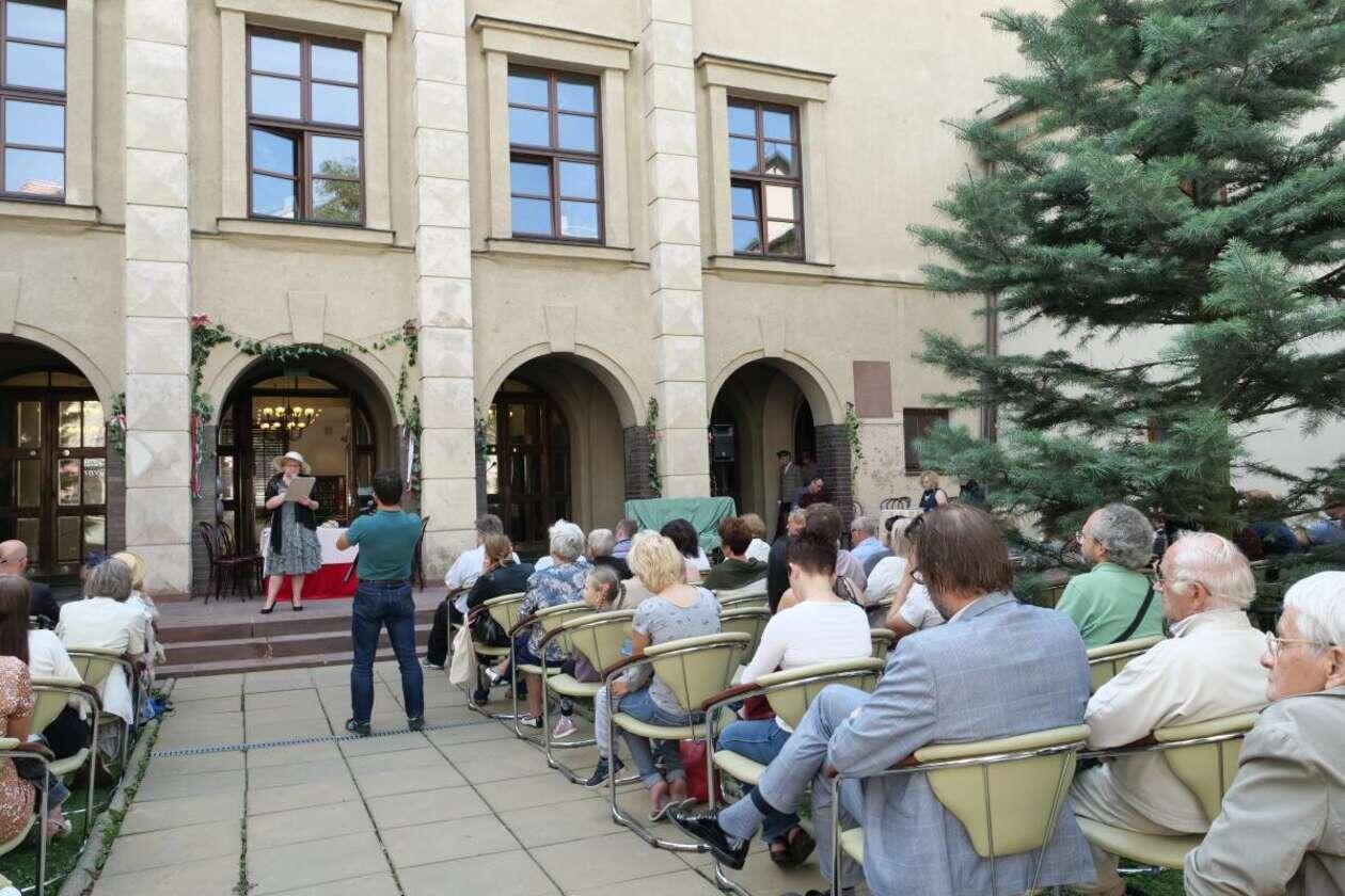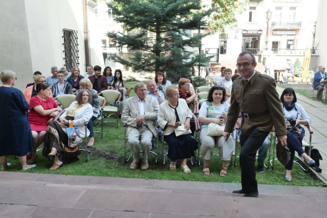 Narodowe Czytanie Przedwiośnia Stefana Żeromskiego przed budynkiem WBP