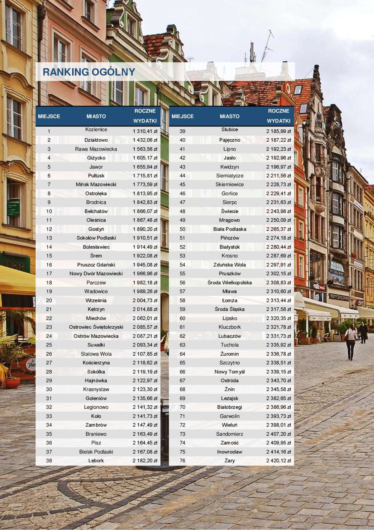 Wydatki mieszkańców na usługi komunalne. Ranking