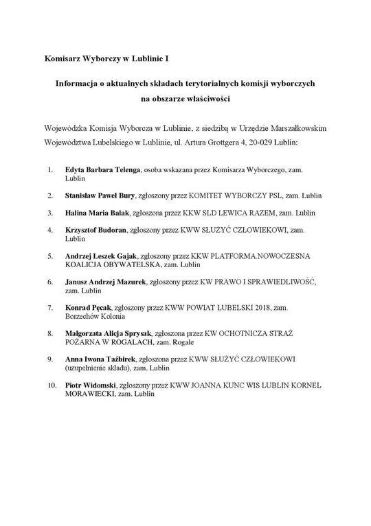 Składy terytorialnych komisji wyborczych w woj. lubelskim