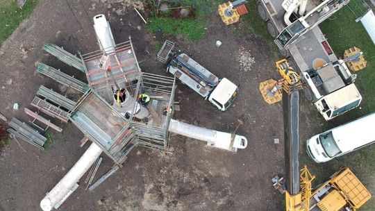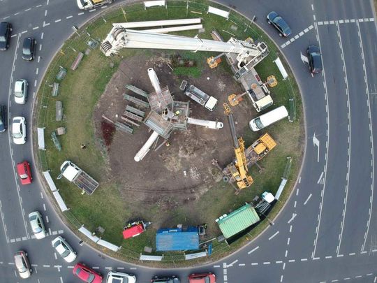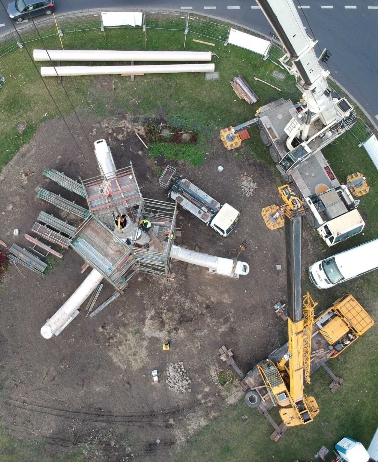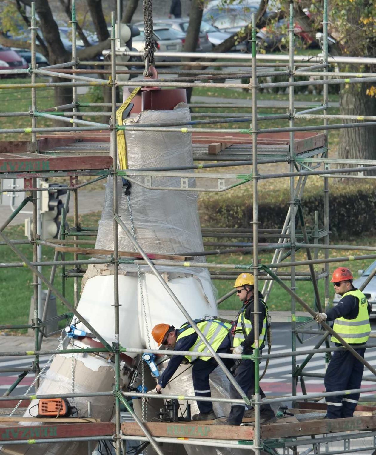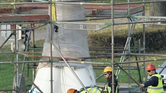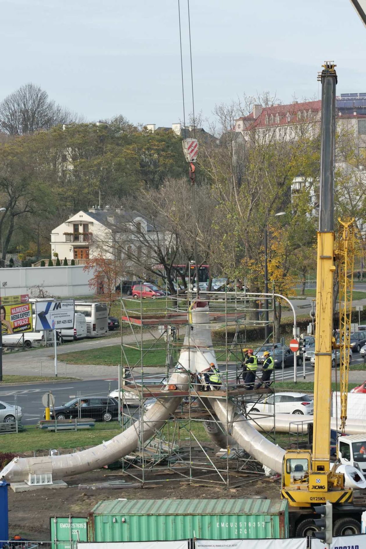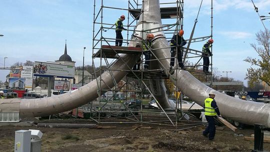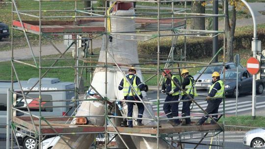 Trwa montaż Masztu Niepodległości na rondzie Dmowskiego