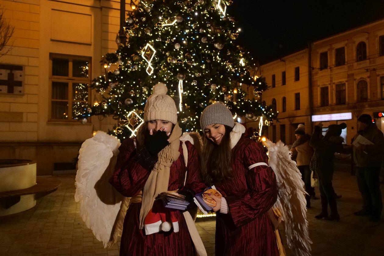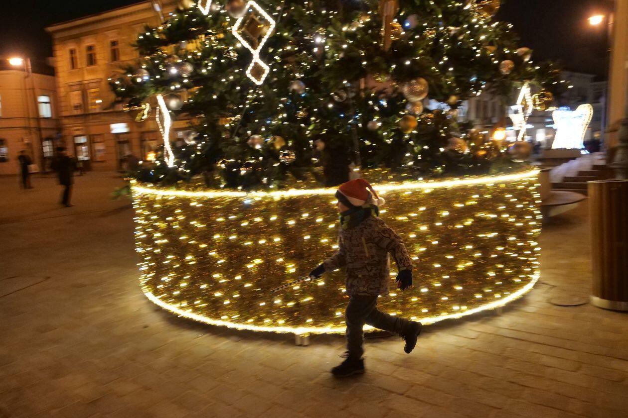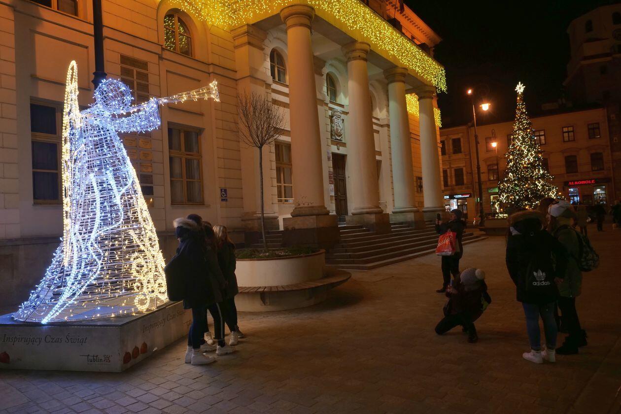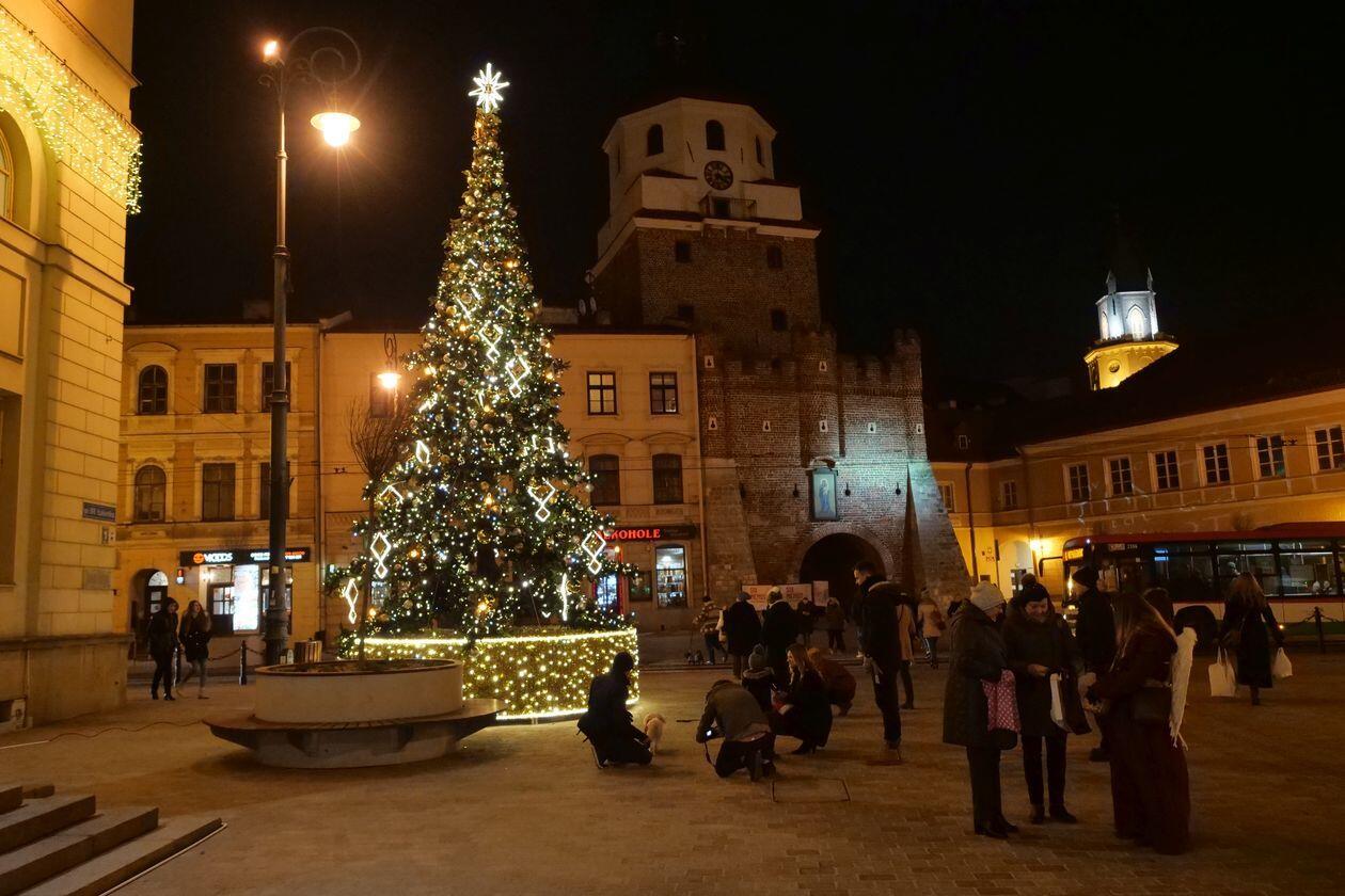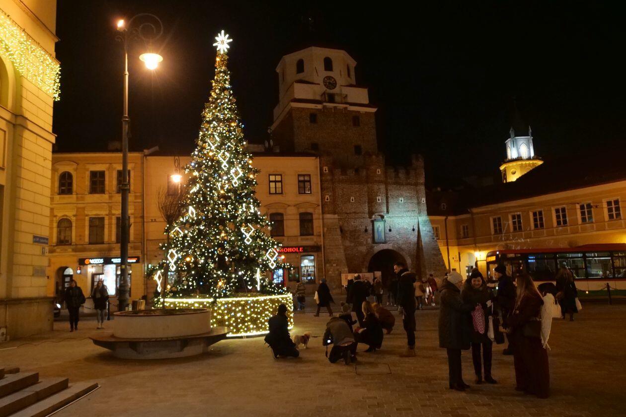 Choinka i iluminacje świąteczne na deptaku w Lublinie