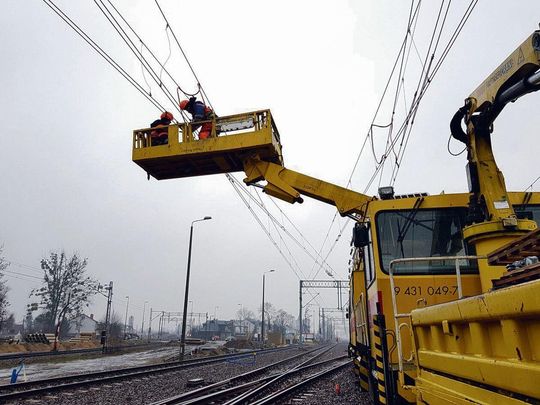 Za Dęblinem odnawiana linia wygląda inaczej, bo ma innego wykonawcę. Tory już leżą, a kilka dni temu wieszano tu trakcję