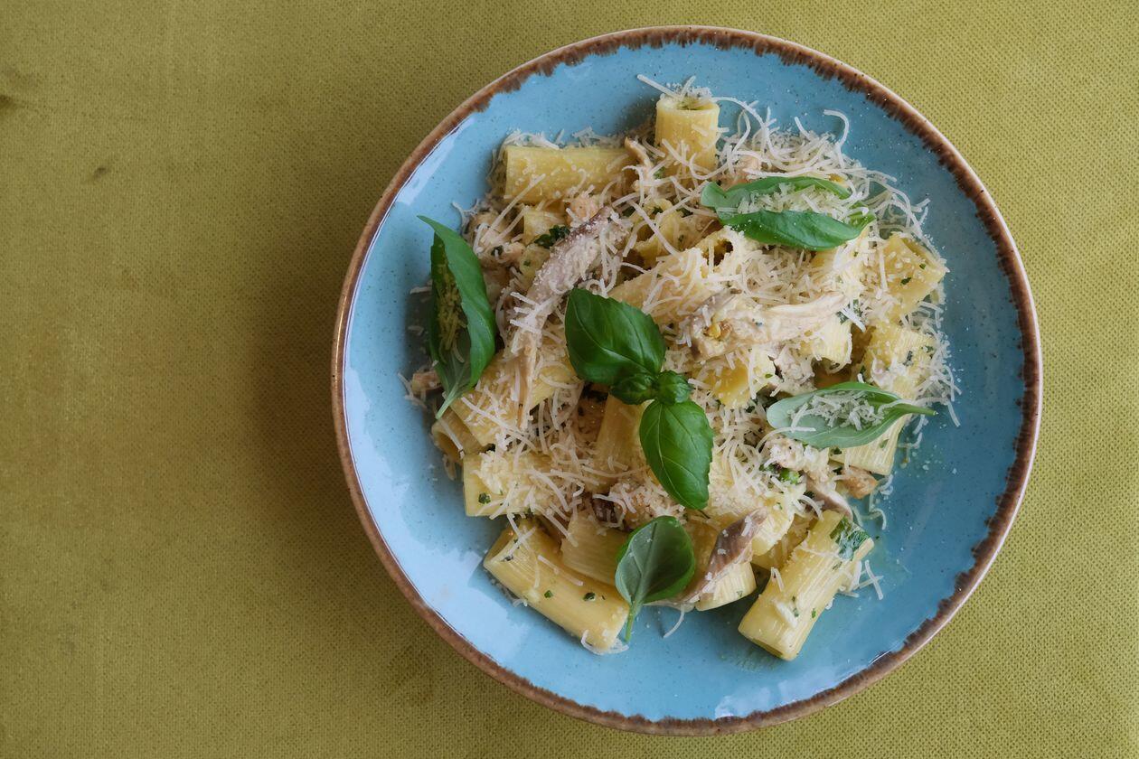 Rigatoni z kurczakiem i boczniakami w sosie curry