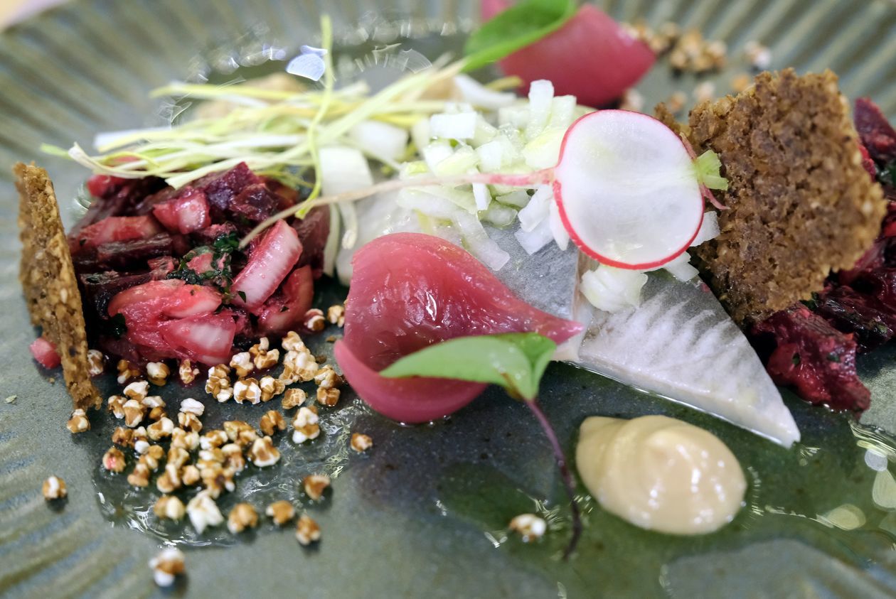 Śledzie w towarzystwie sałatki buraczanej po lubelsku