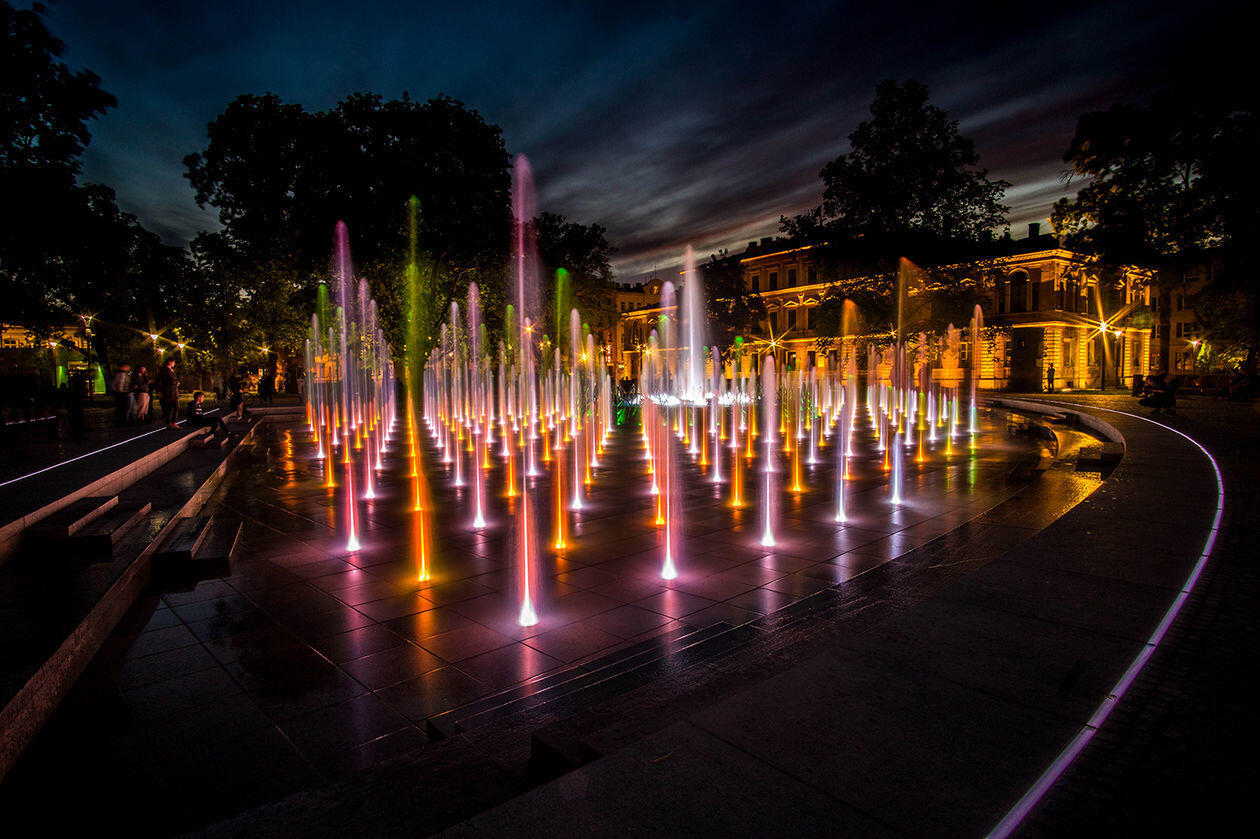 II NAGRODA. Wodna symfonia światła i koloru - fontanna na Placu Litewskim w Lublinie.