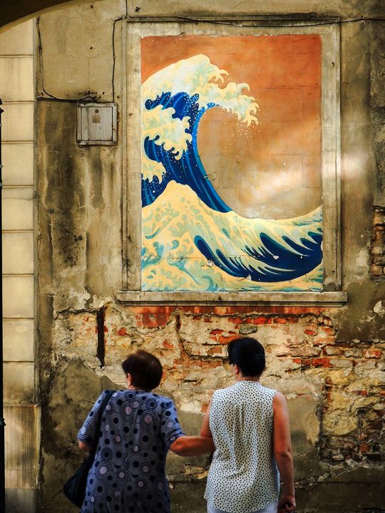 WYRÓŻNIENIE. Mural z Wielką falą z Kanagawa na staromiejskiej kamienicy w Lublinie.