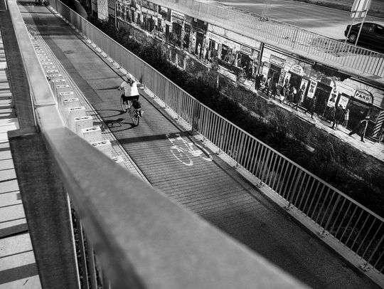 WYRÓŻNIENIE. Rowerem w przeszłość - ścieżka z muralem przy Tarasach Zamkowych w Lublinie.
