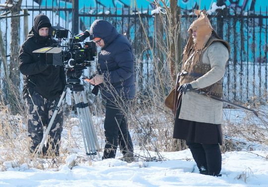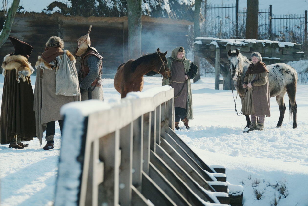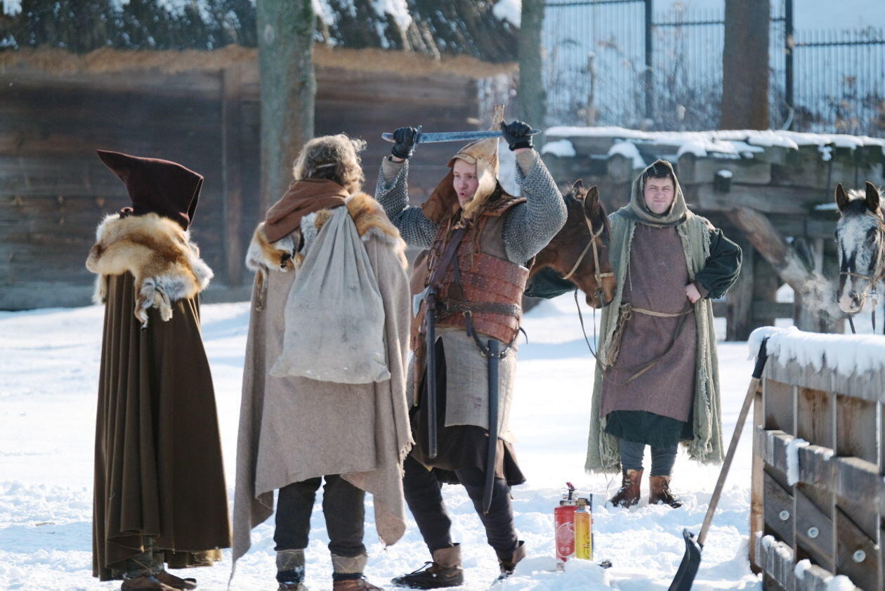 Ekipa filmowa serialu pt Korona królów w skansenie