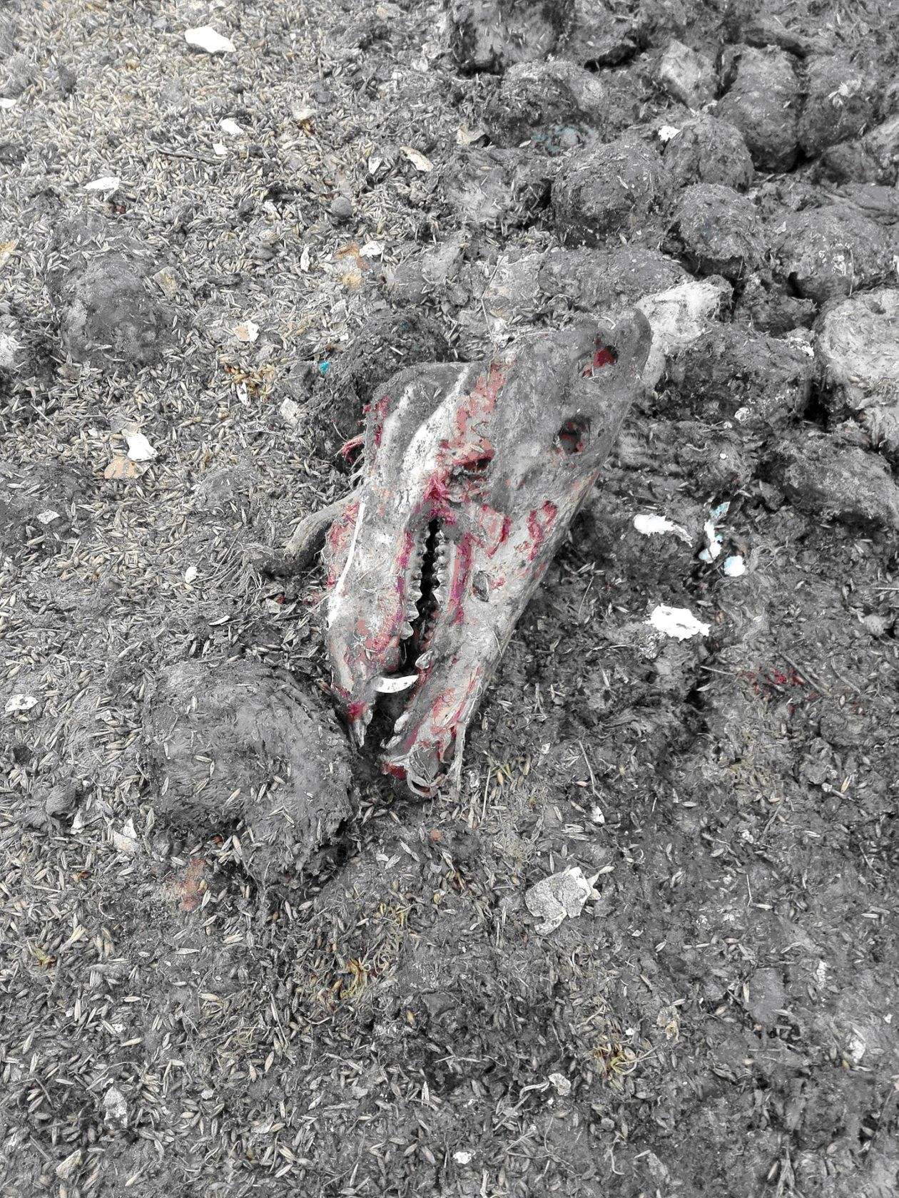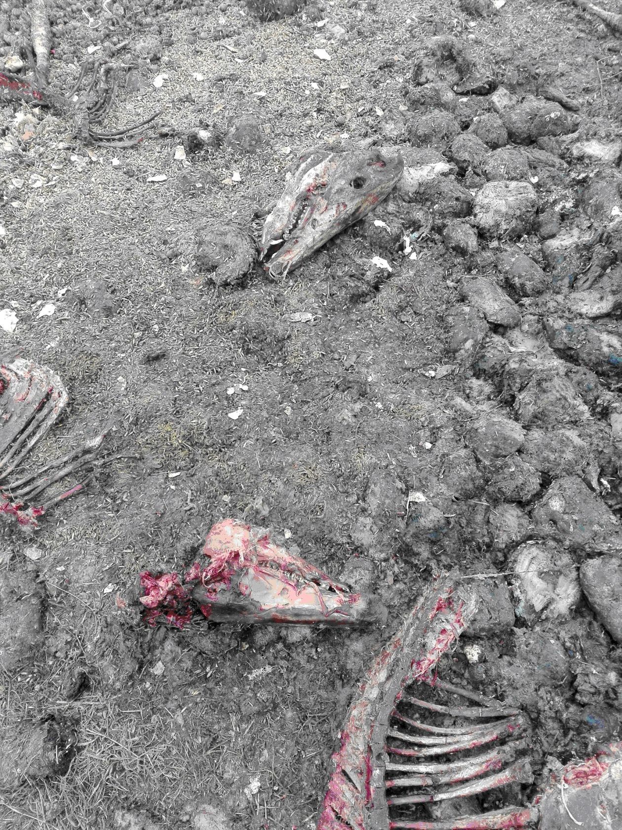 Kości zwierząt niedaleko myśliwskiej ambony