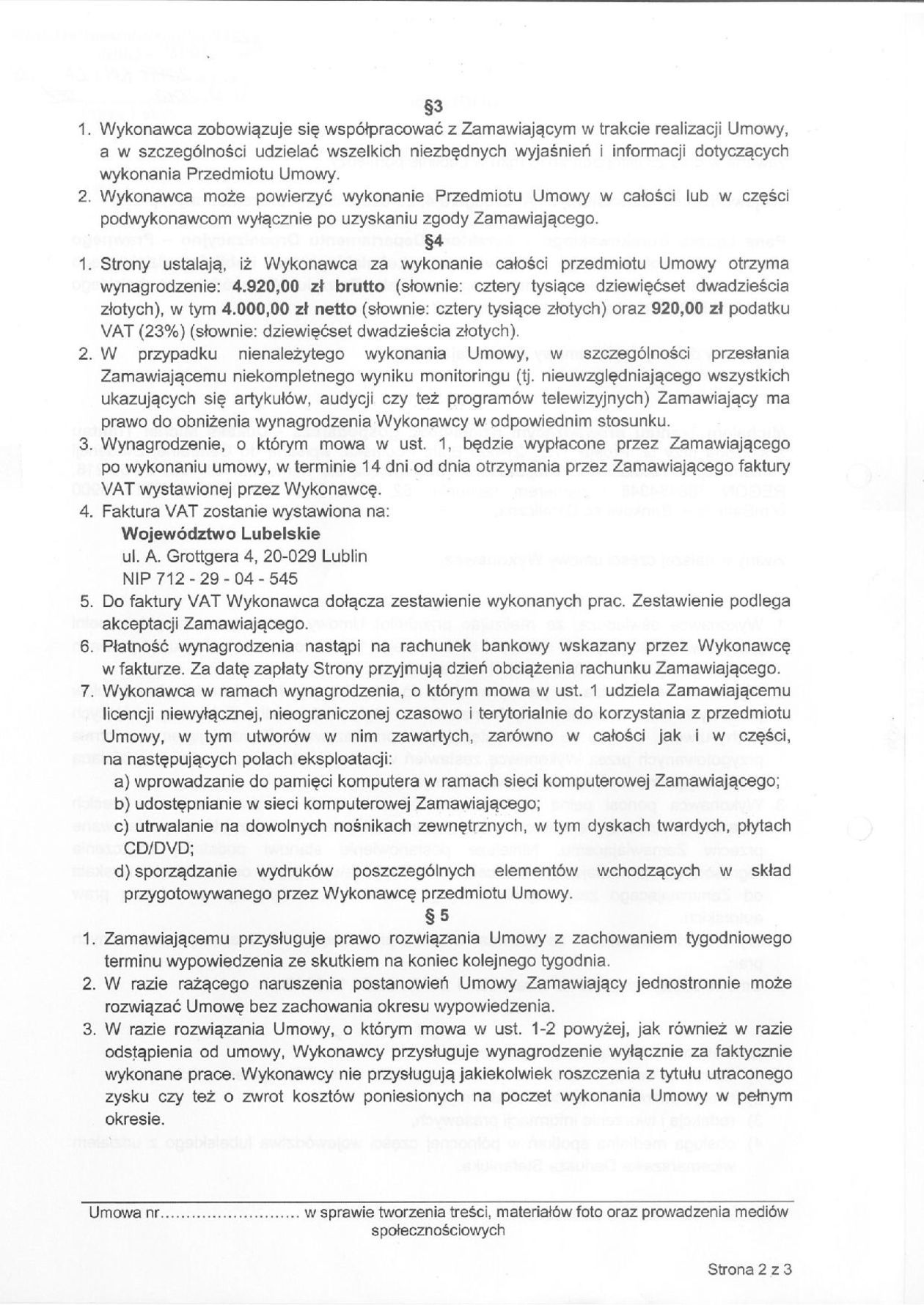 Umowa i faktura Michała Trantaua