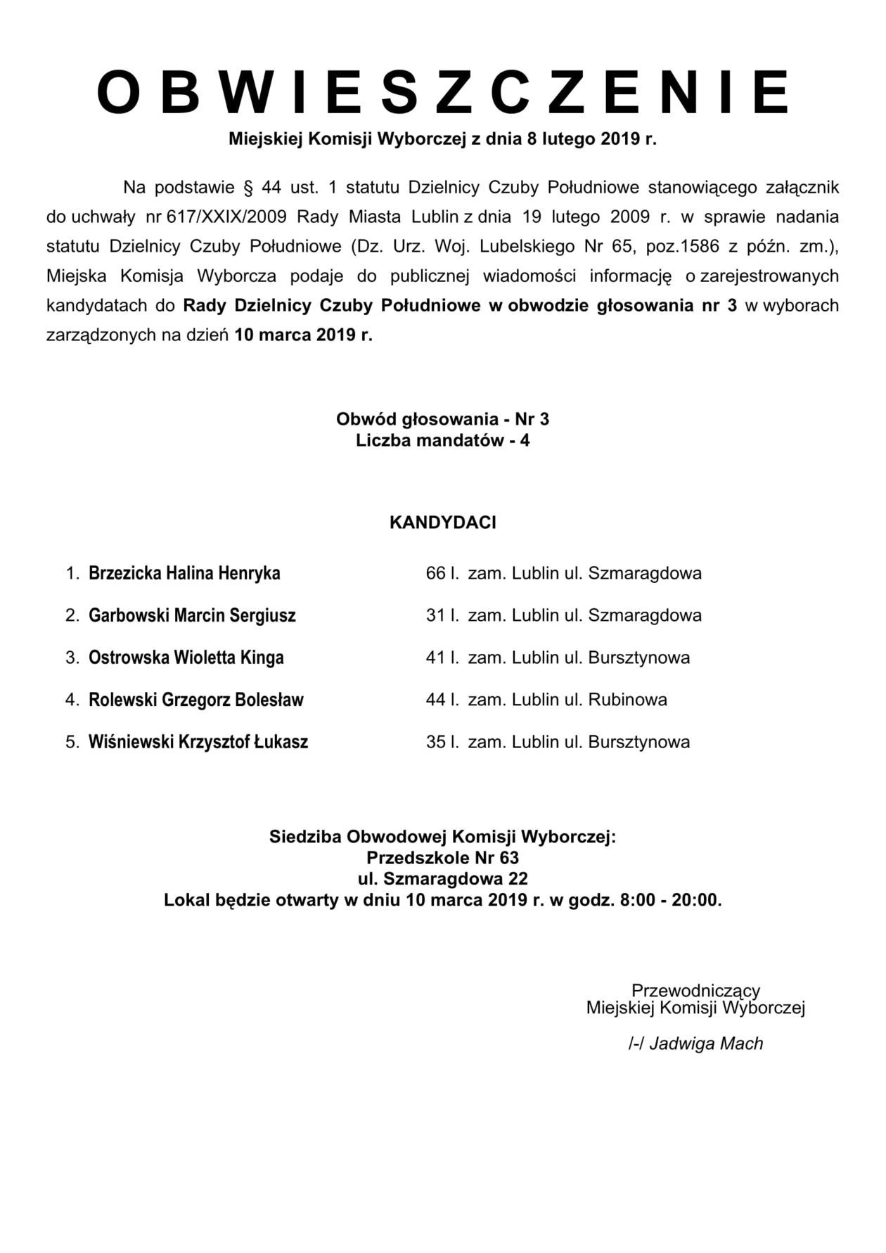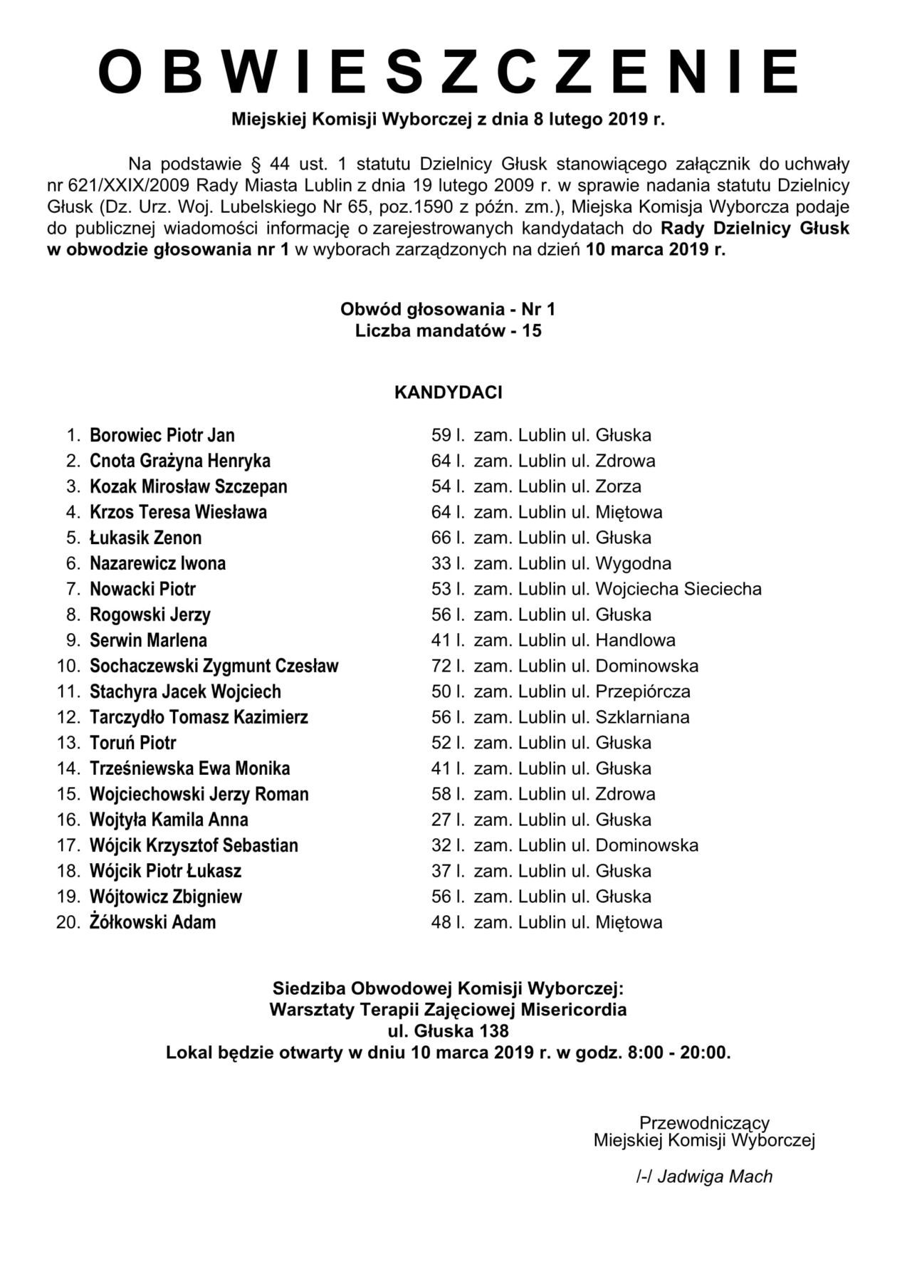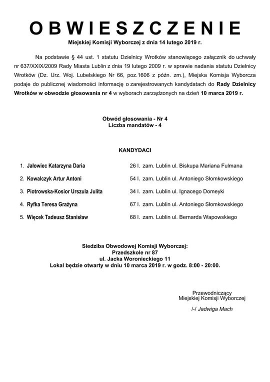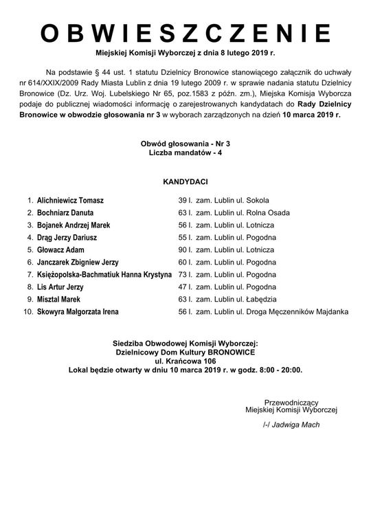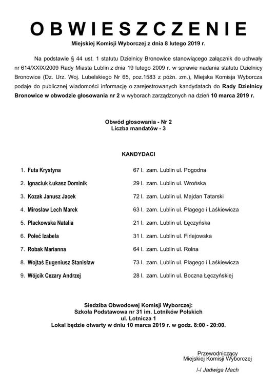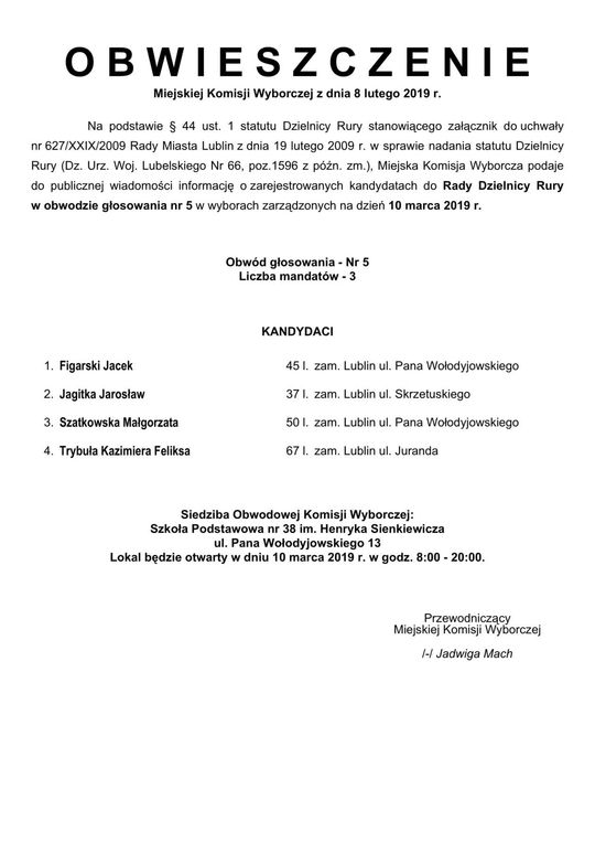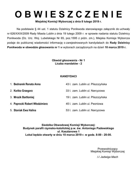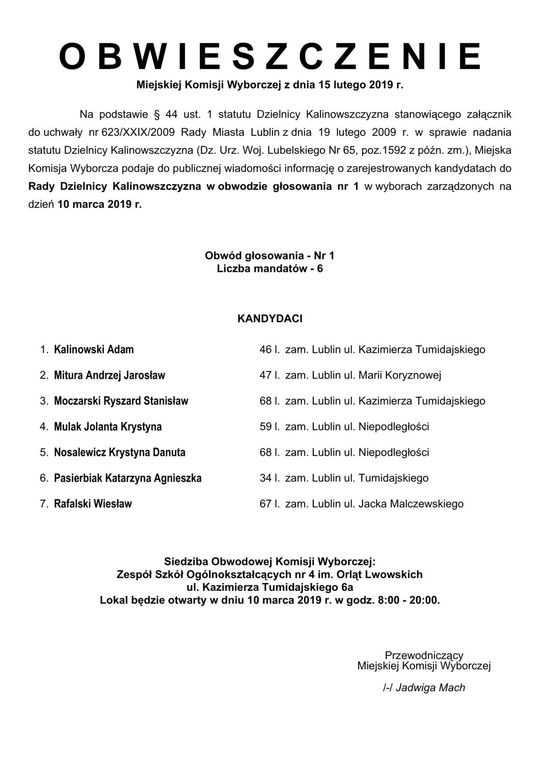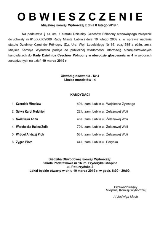 Wybory do Rad Dzielnic 2019 w Lublinie. Lista kandydatów