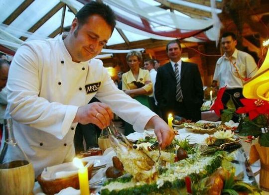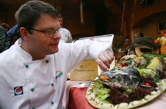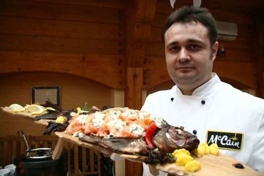 Przygotowan? rybe prezentuje pan Robert Remijasz, szef kuchni „Biesiada”