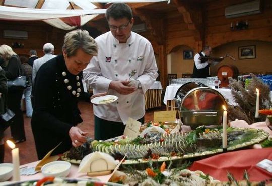 reaci (od lewej): Robert Remijasz, szef kuchni „Biesiada”, Halina Daczka z Gospodarstwa Rybackiego