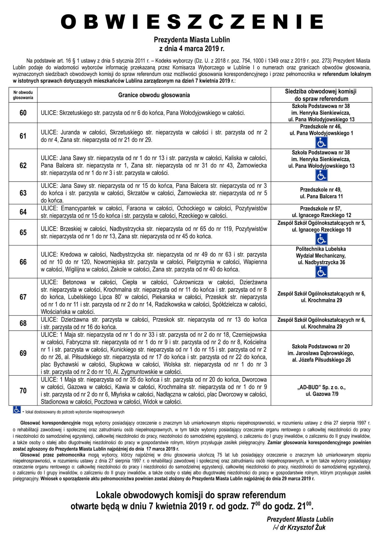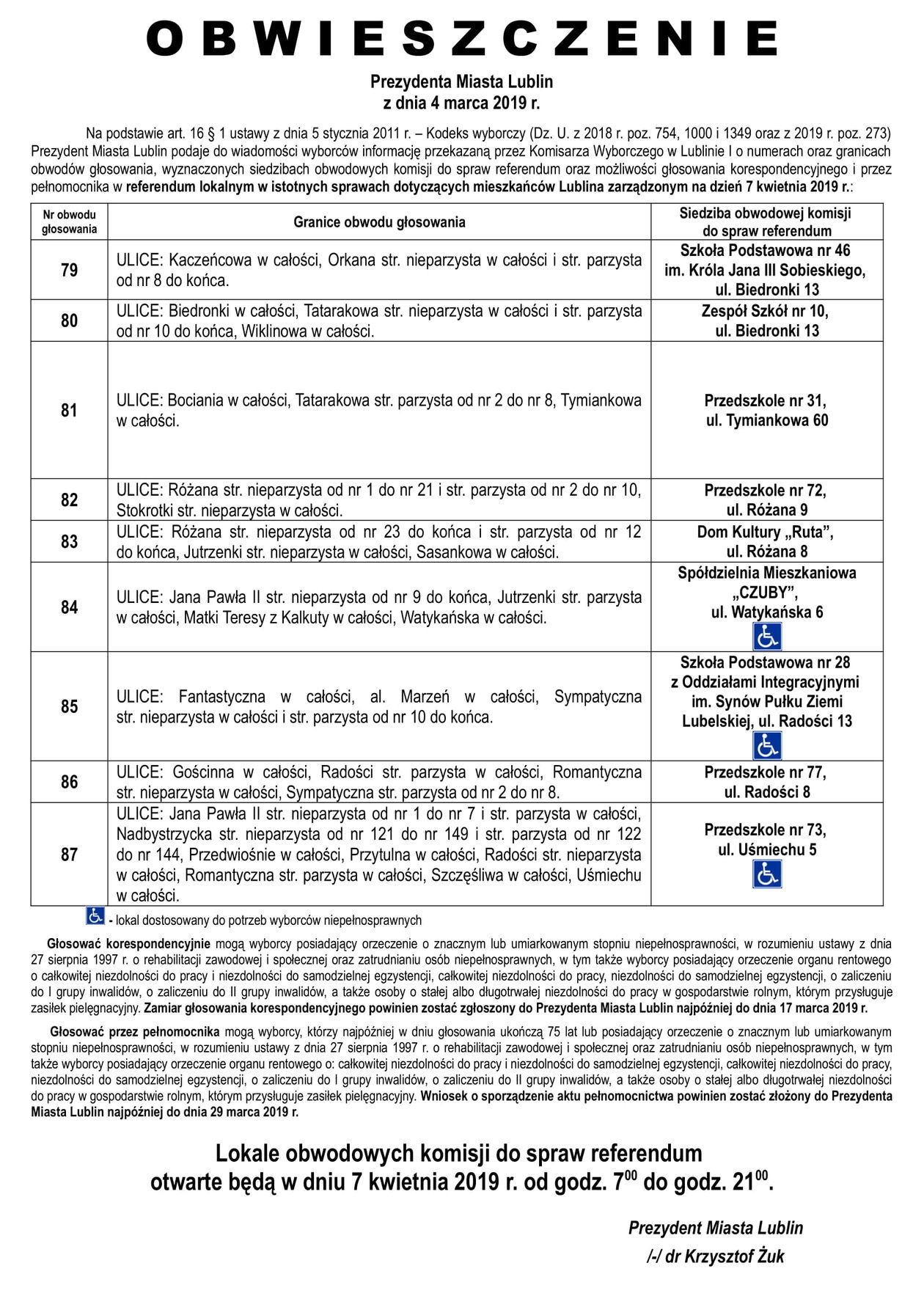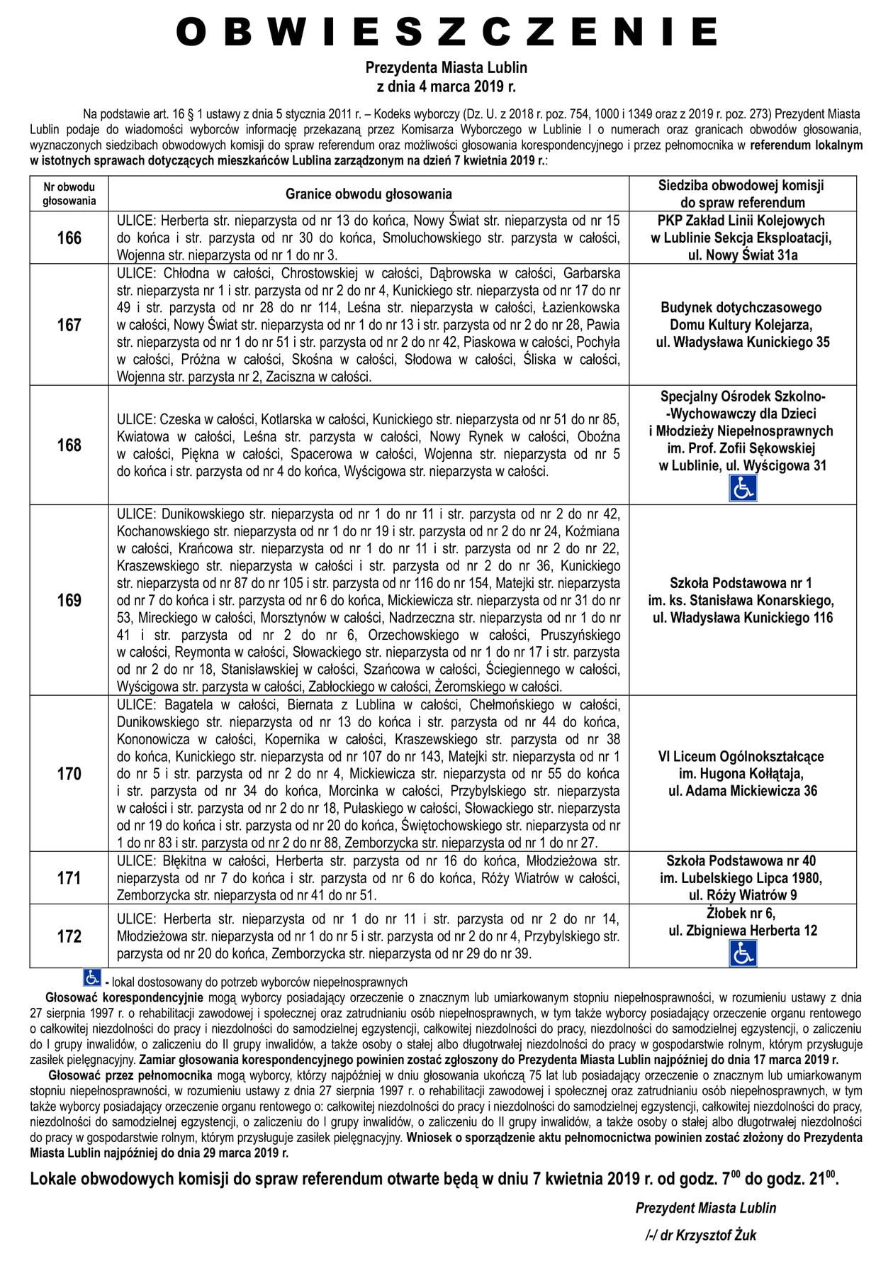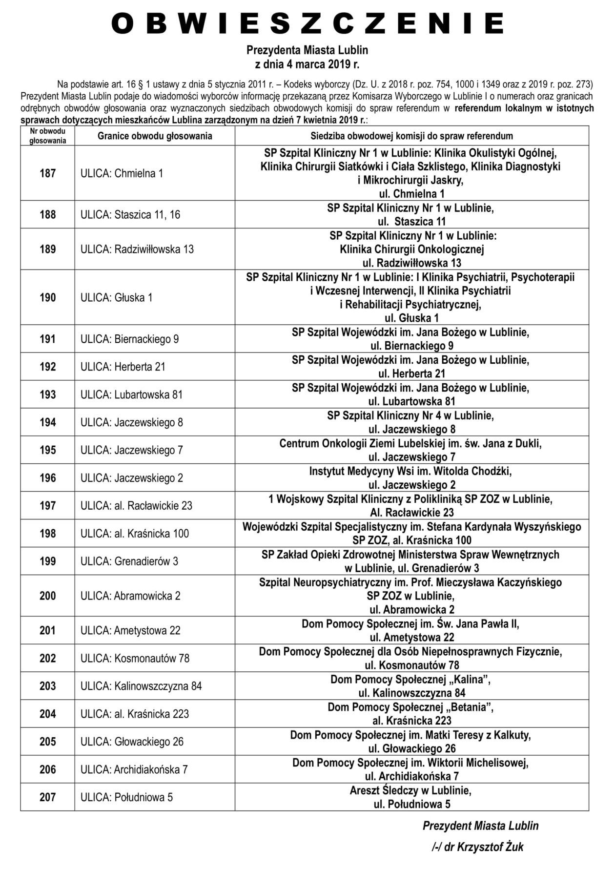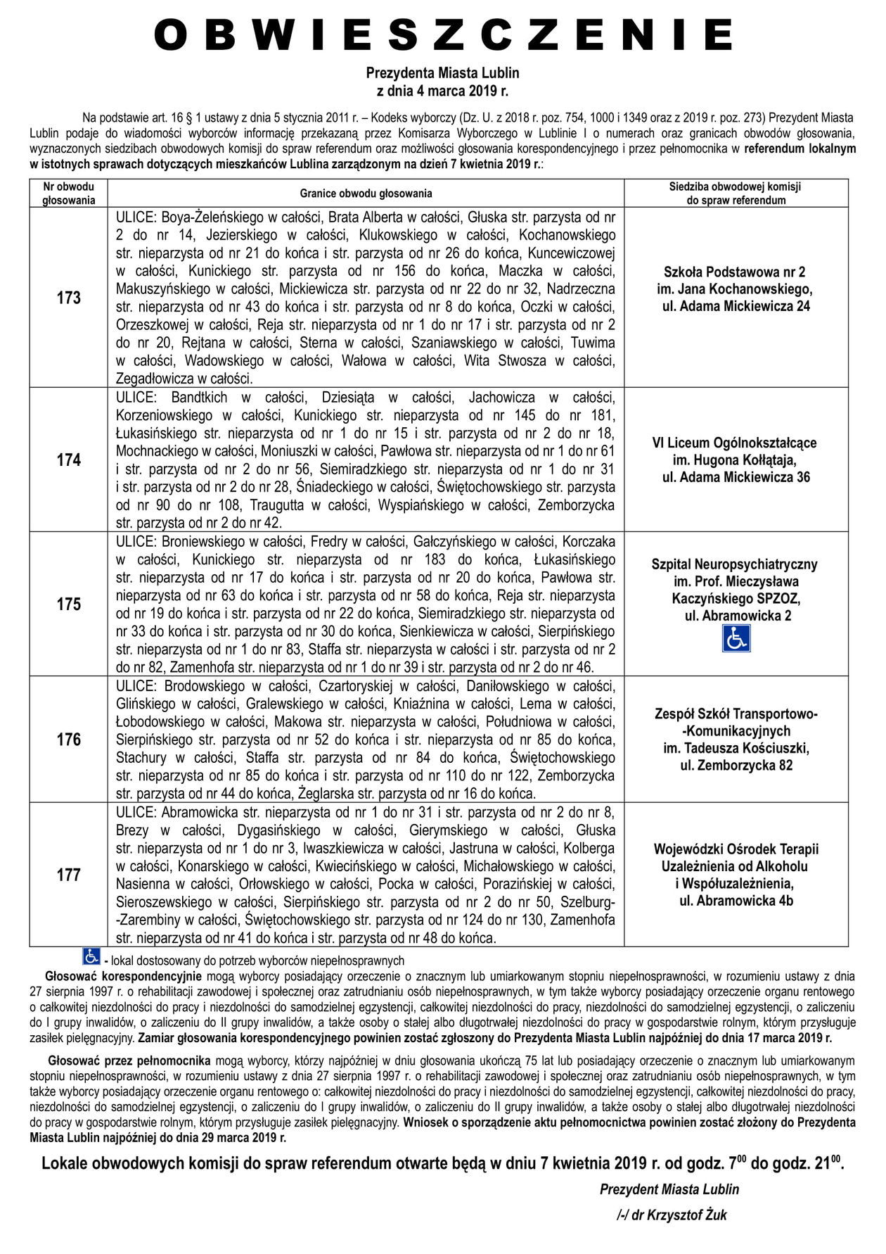 Referendum ws. górek czechowskich. Lista lokali do głosowani...