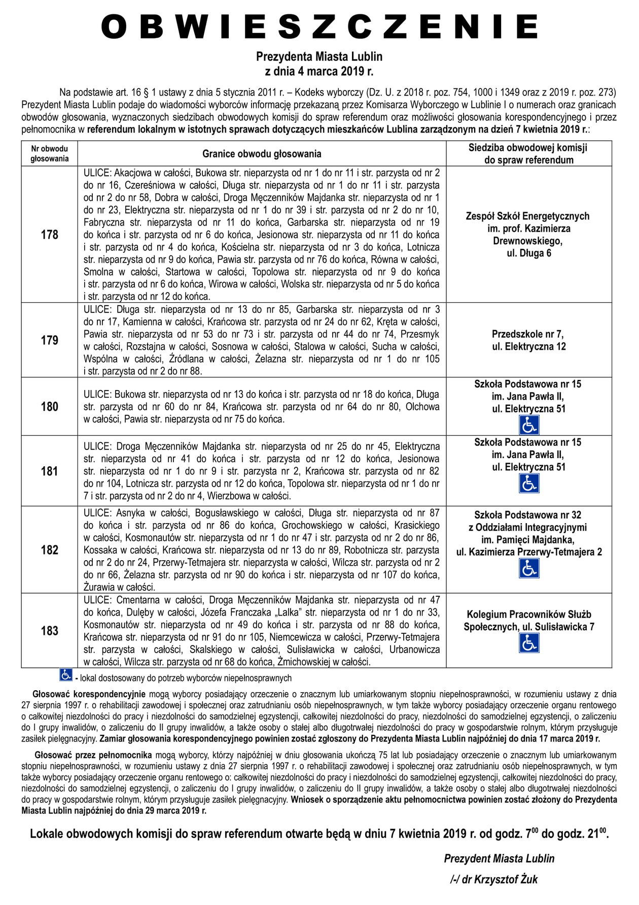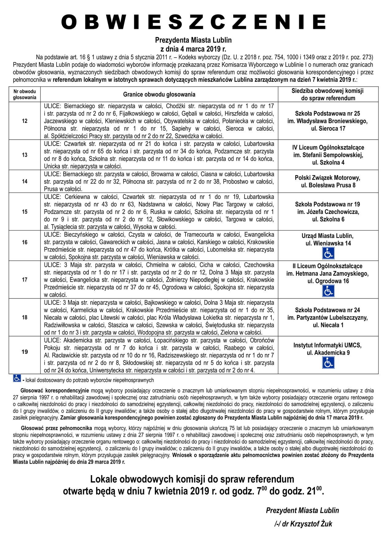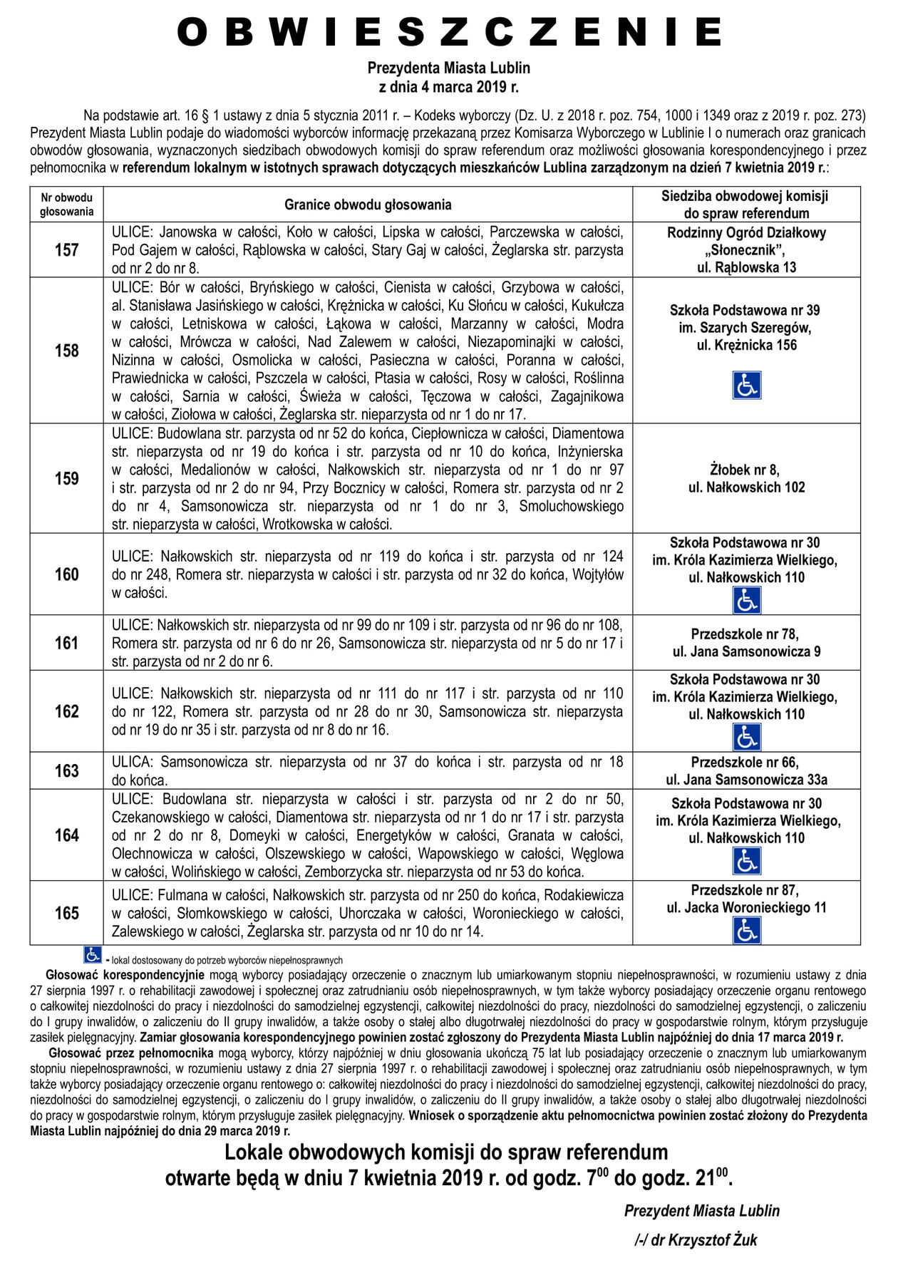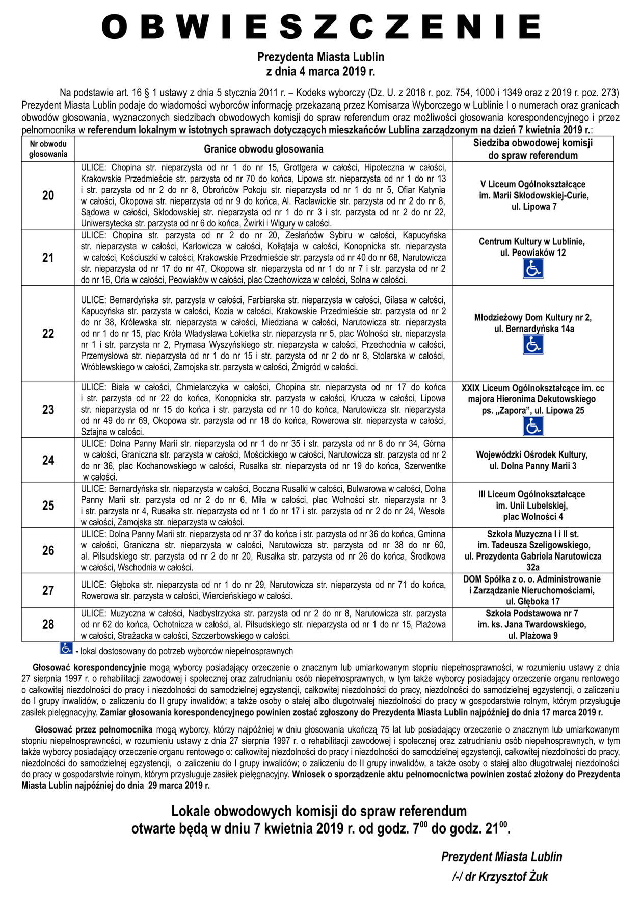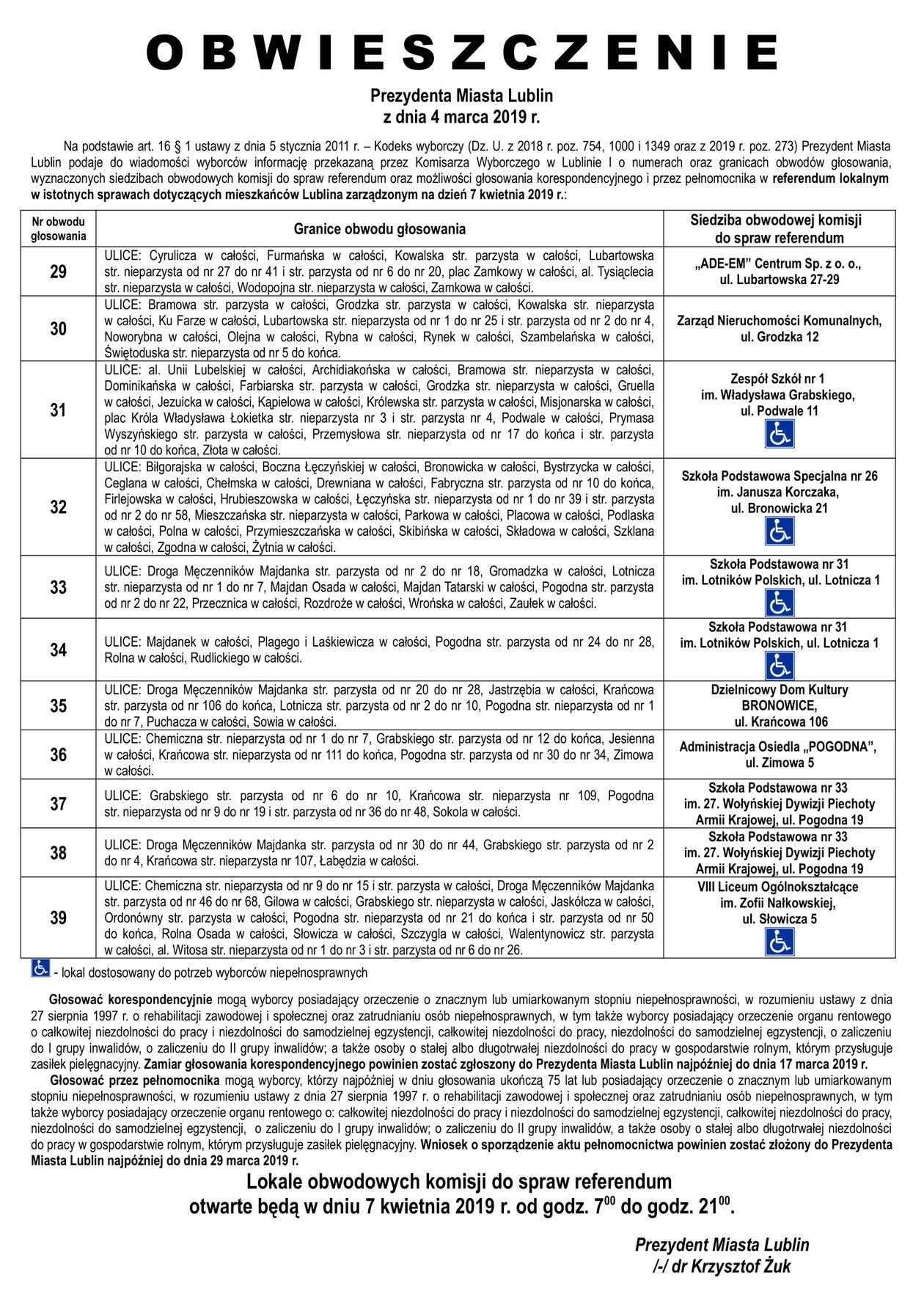Referendum ws. górek czechowskich. Lista lokali do głosowani...