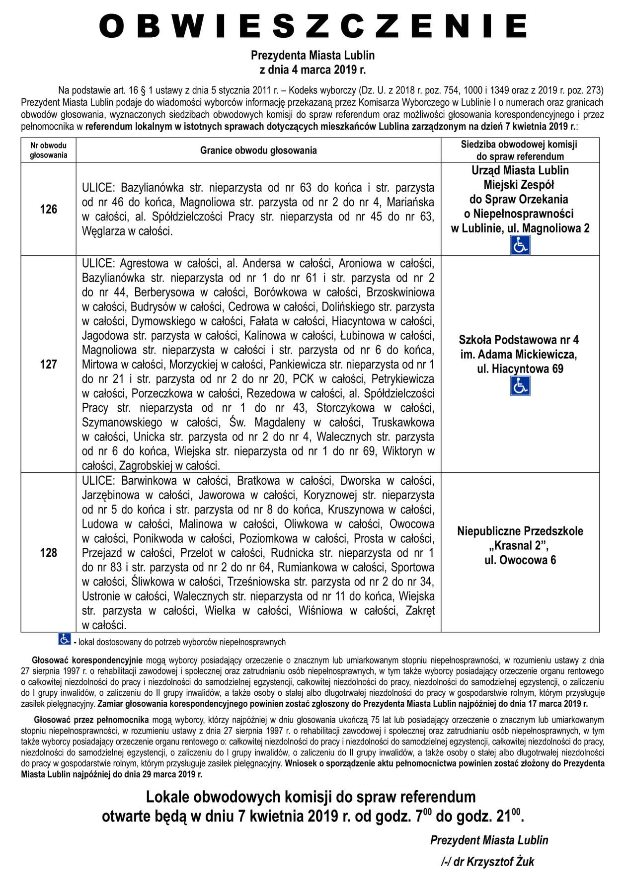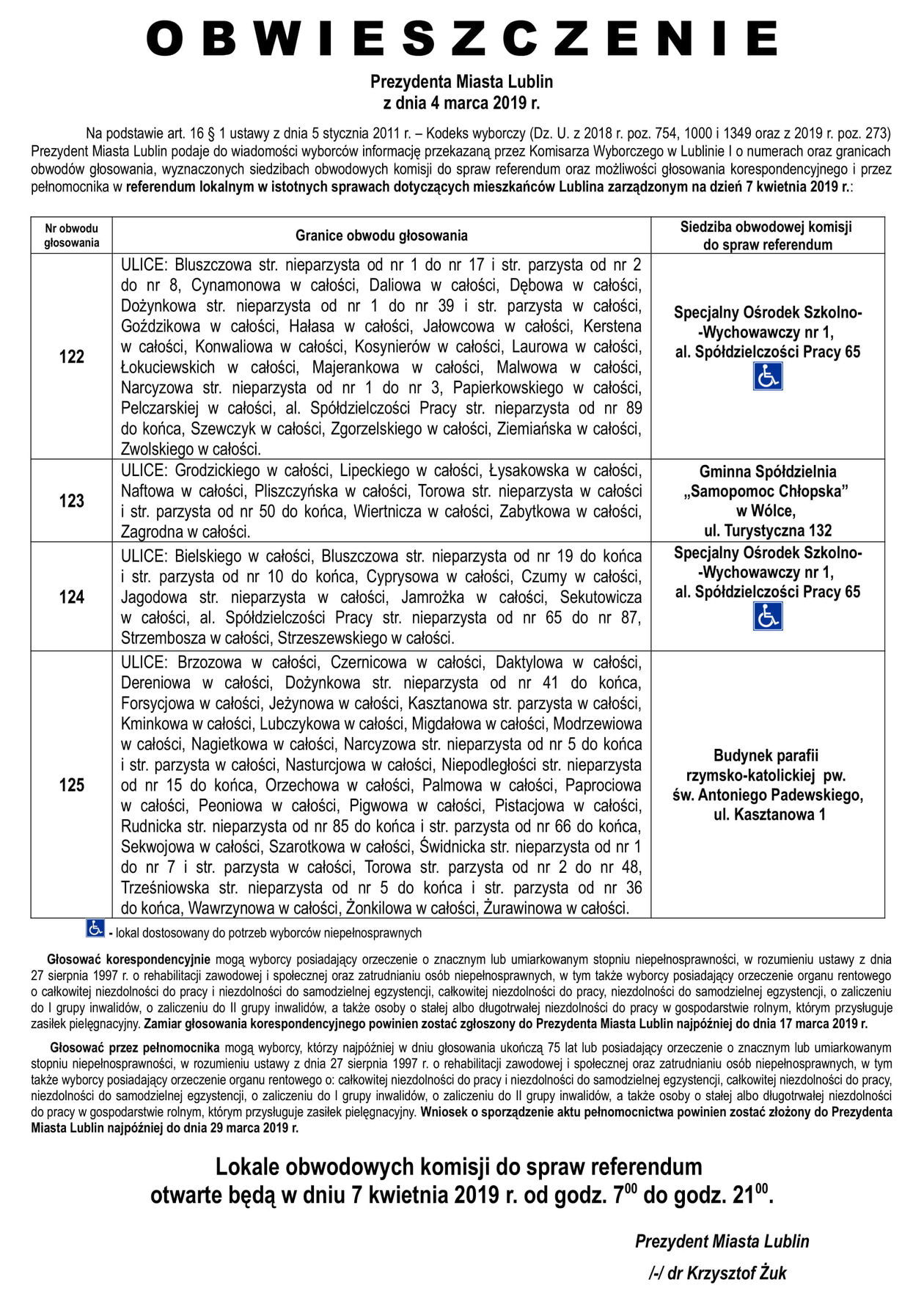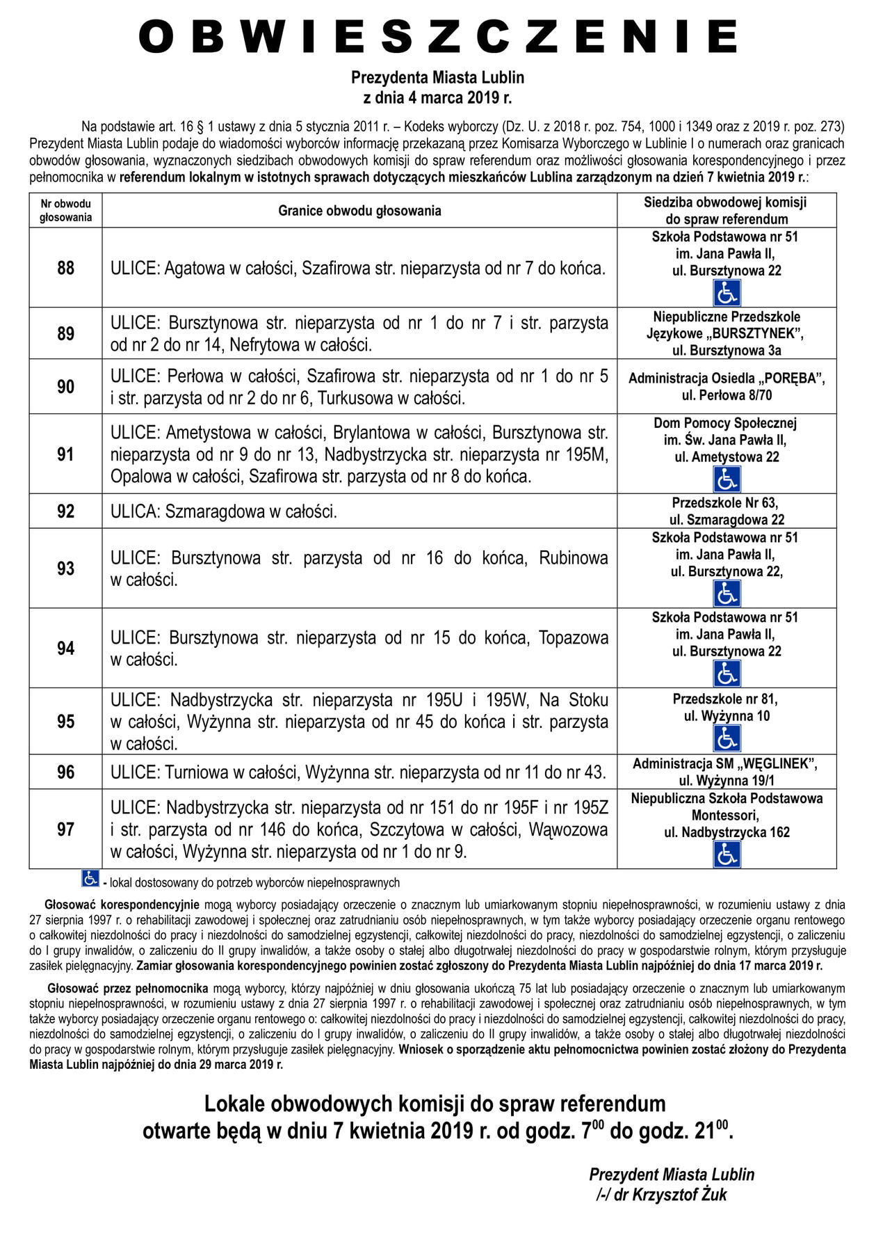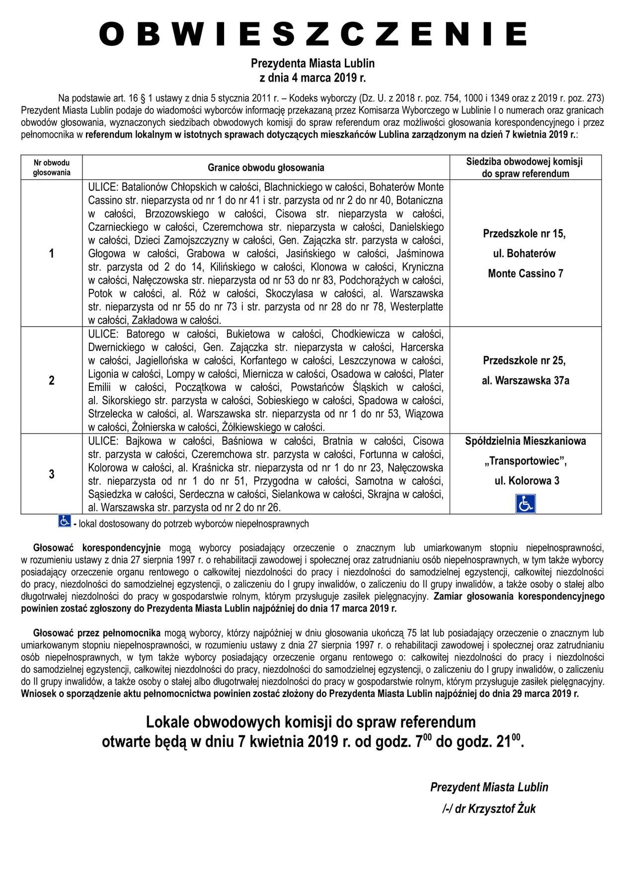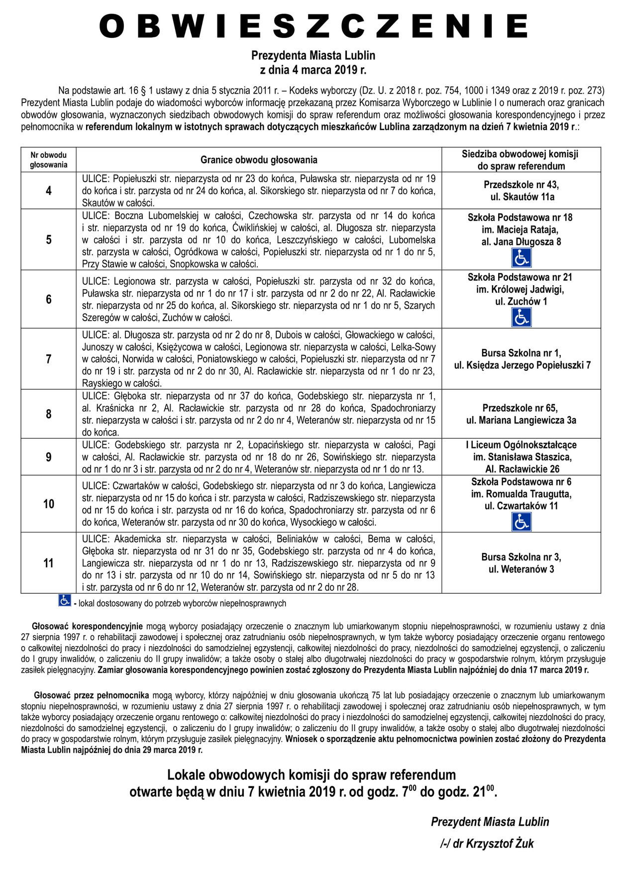 Referendum ws. górek czechowskich. Lista lokali do głosowani...